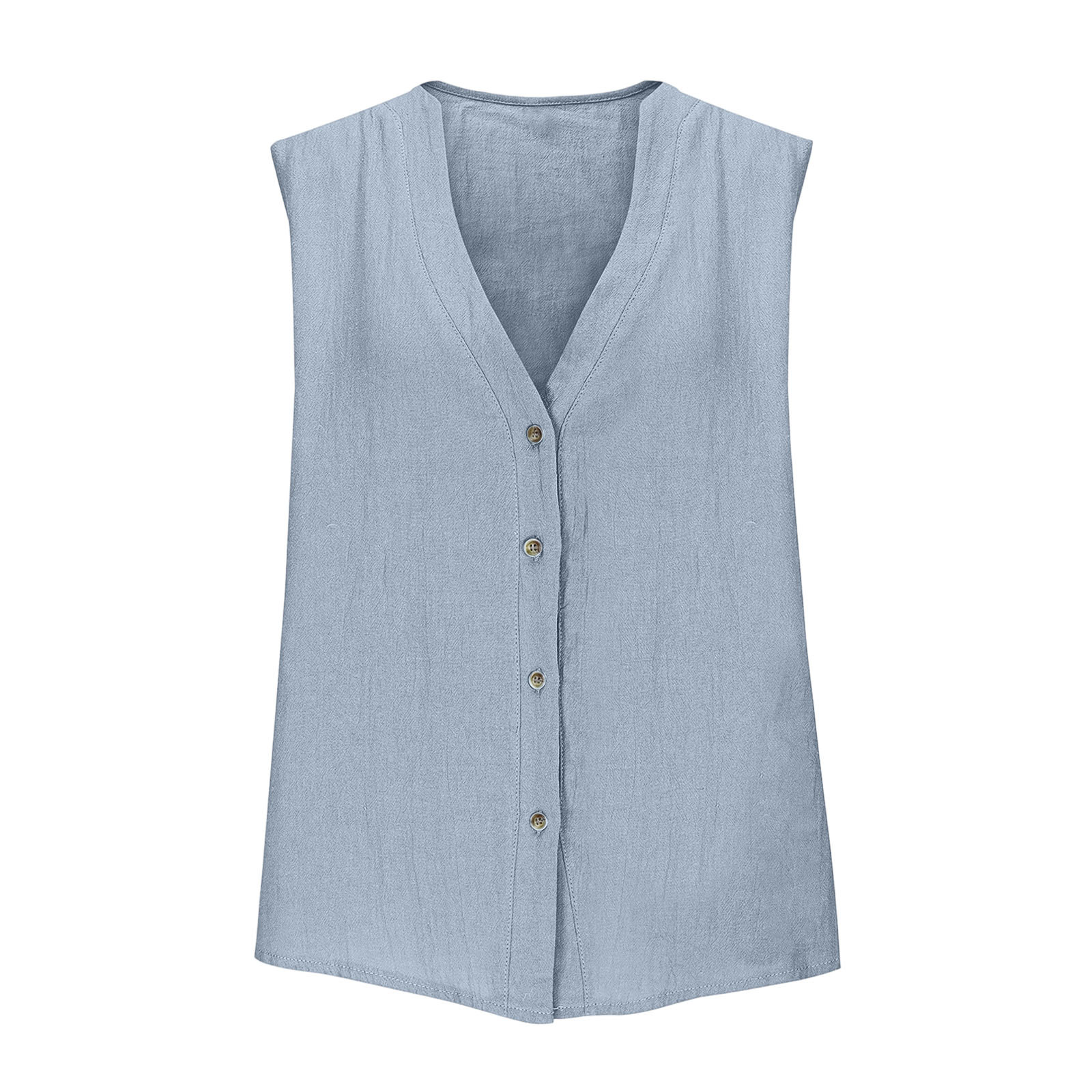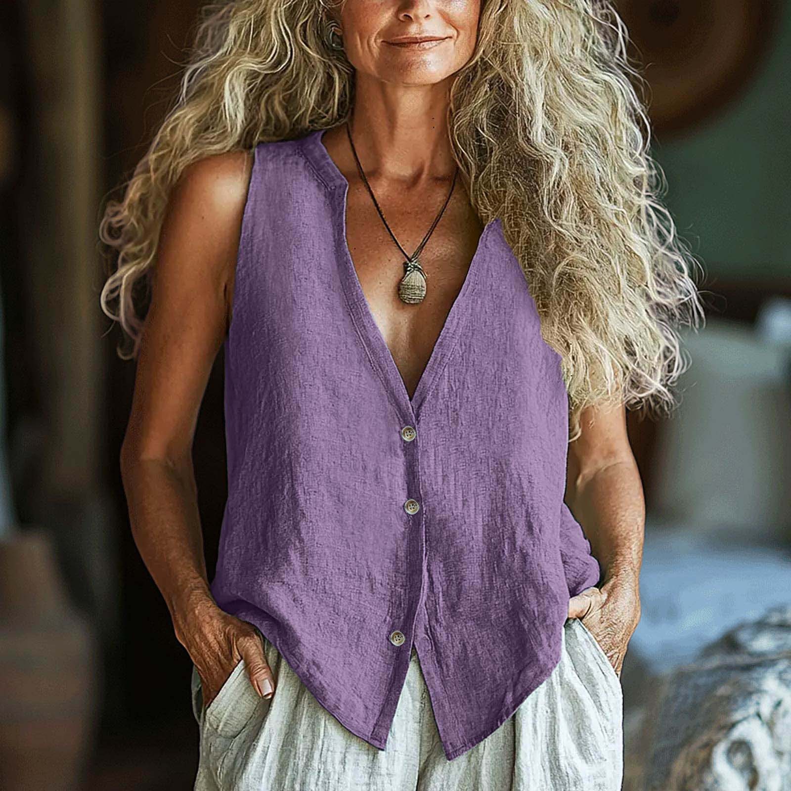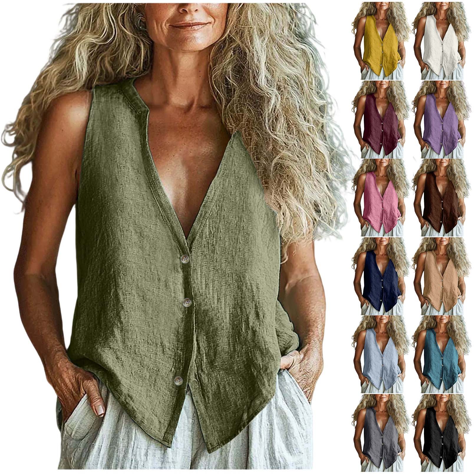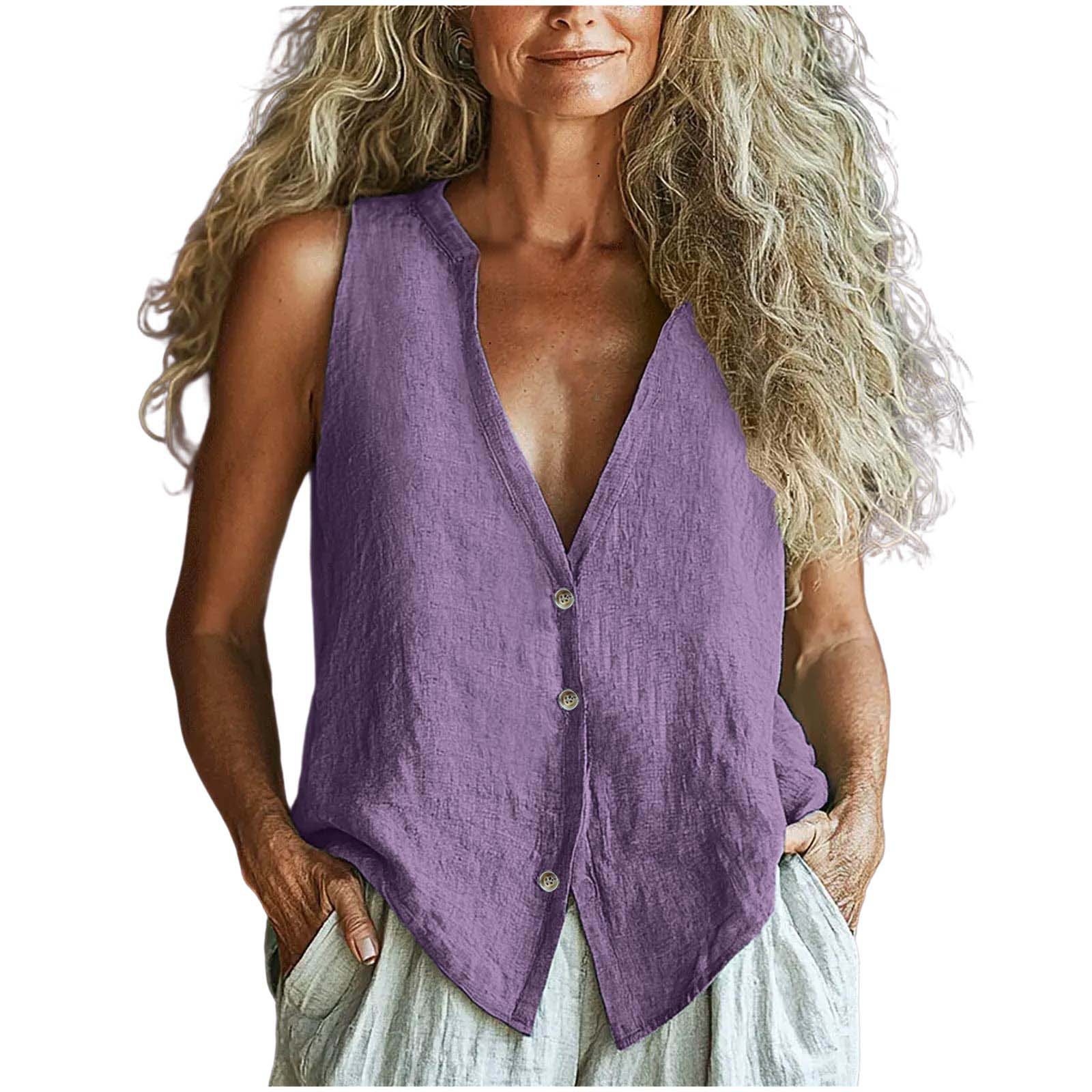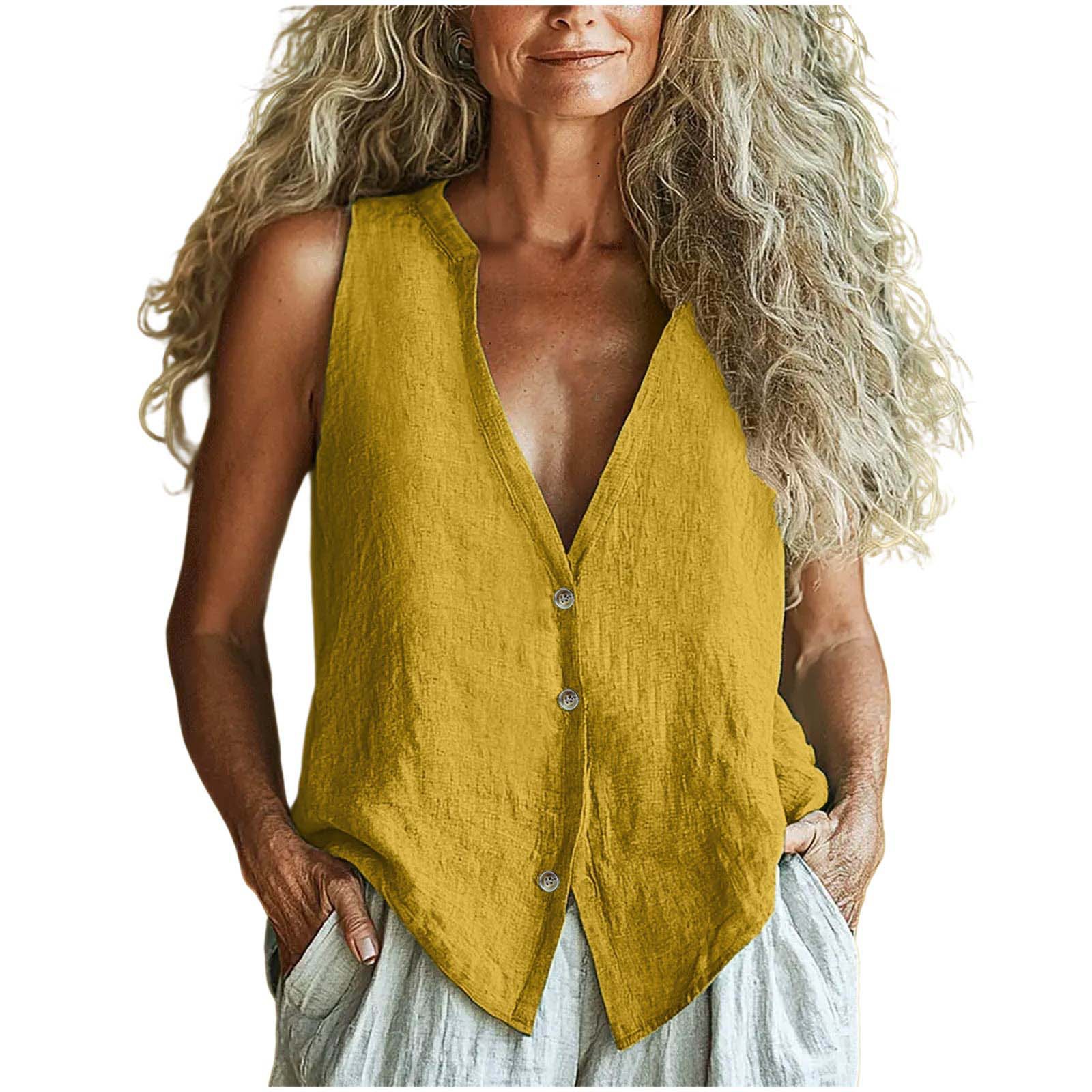 2025 유럽과 미국의 국경 간 새로운 여성 의류 캐주얼 루즈 패션 민소매 코튼 린넨 솔리드 컬러 v 넥 조끼 셔츠스토어 가기
