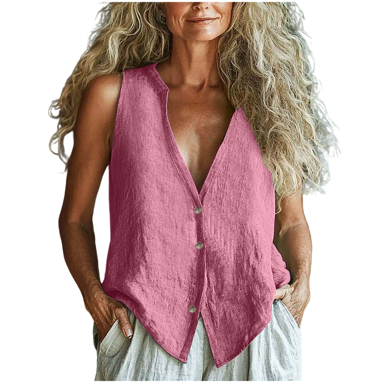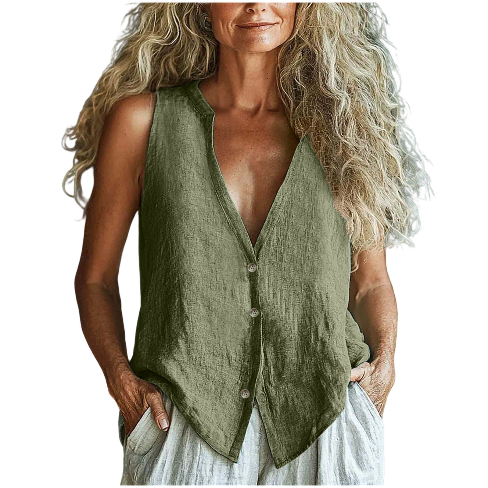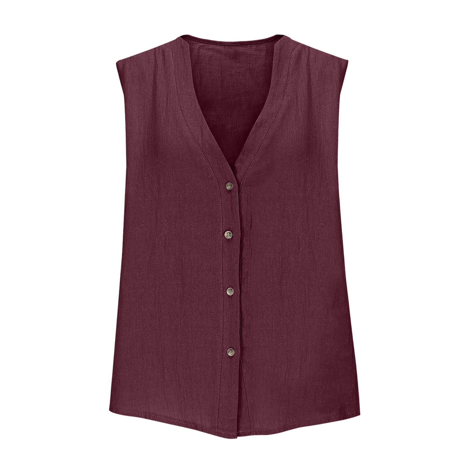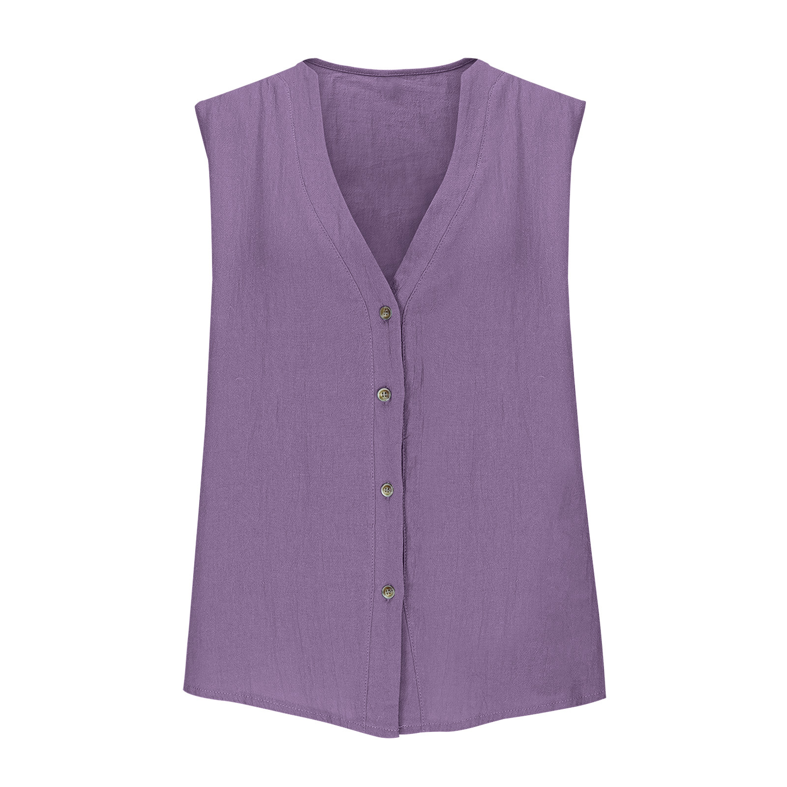 2025 유럽과 미국의 국경 간 새로운 여성 의류 캐주얼 루즈 패션 민소매 코튼 린넨 솔리드 컬러 v 넥 조끼 셔츠