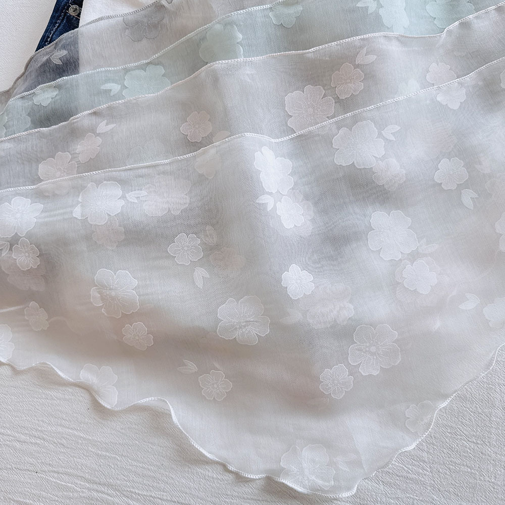 Organza 실크 스카프 리본 여성 자카드 달콤하고 신선한 봄과 여름 삼각형 스카프 여성 통기성 장식 연예인 스카프 신제품