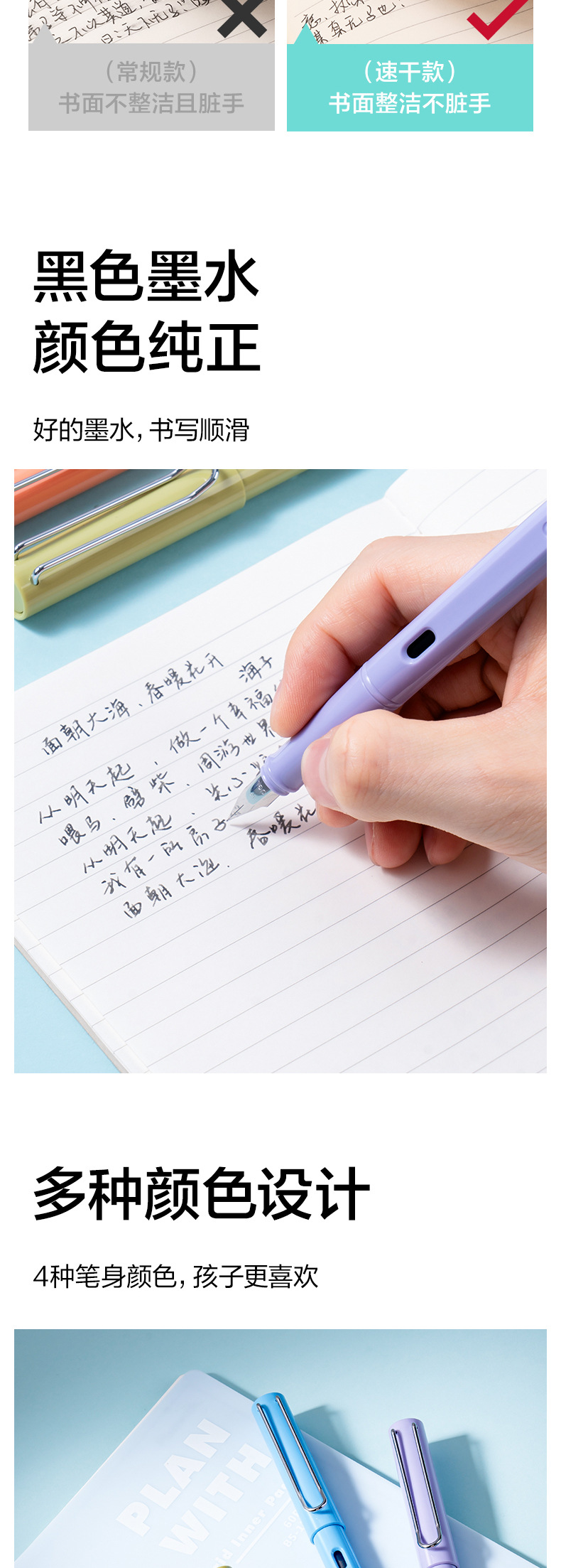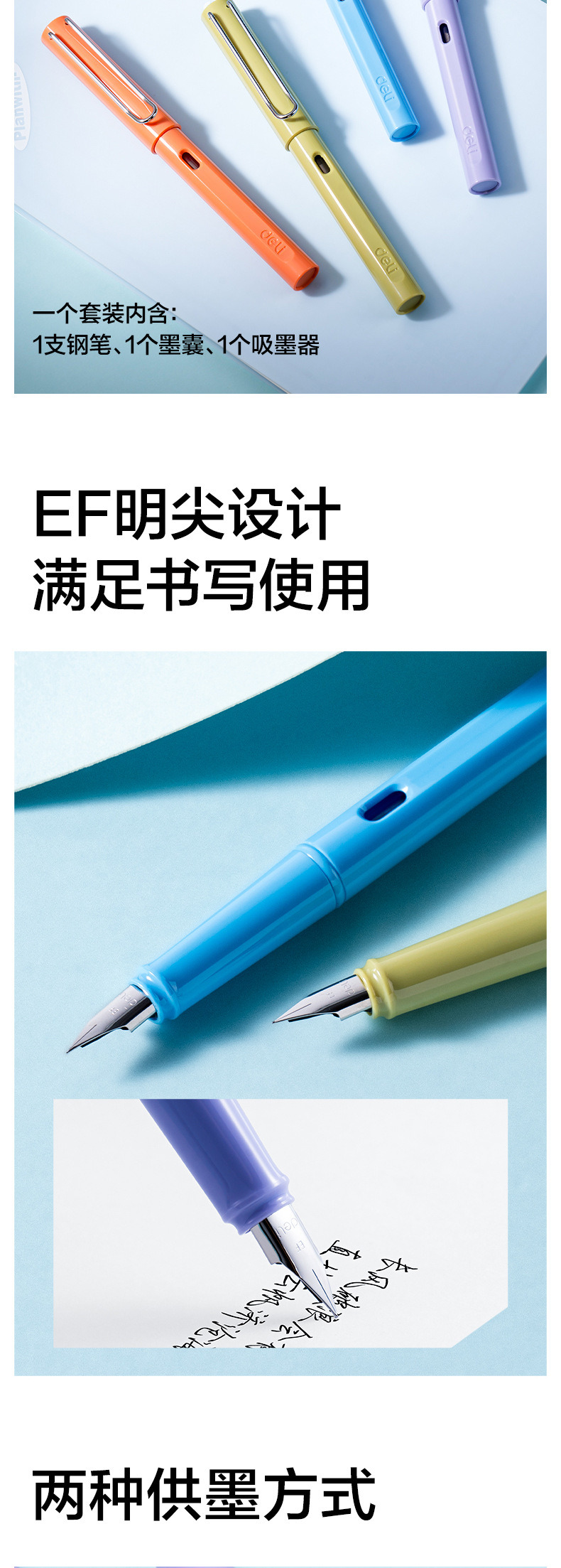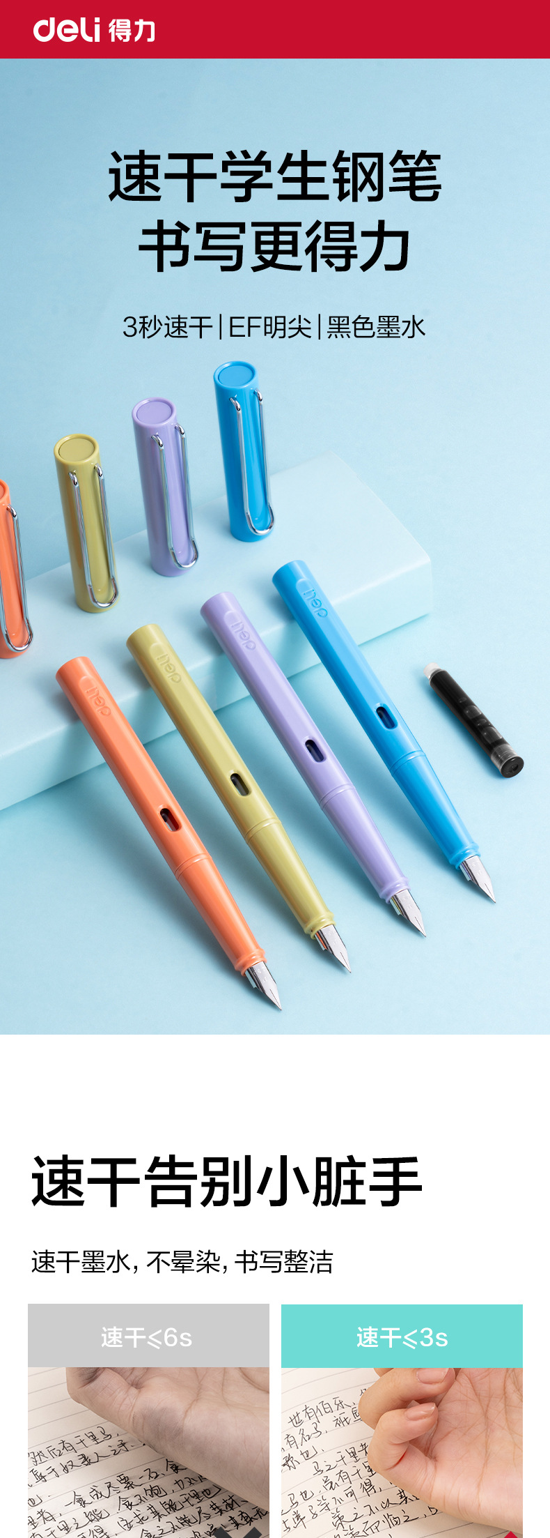 초등학생을 위한 델리 S5-X 만년필, 쓰기 연습을 위한 지울 수 있고 교체 가능한 잉크백, EF 밝은 팁 자세 교정 만년필 잉크 흡수 장치스토어 가기