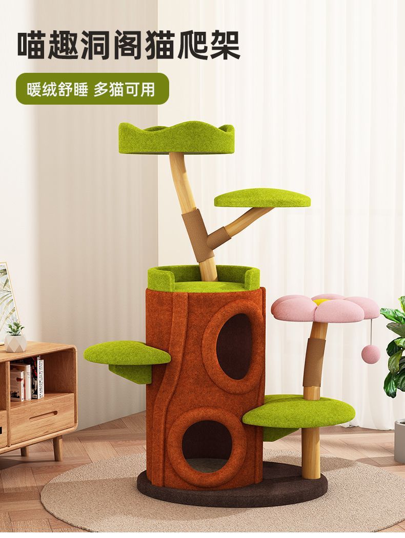 트리하우스 고양이 클라이밍 프레임, 고양이 나무 구멍 둥지, 고양이 둥지, 고양이 트리 일체형 원목, 공간을 차지하지 않음, 겨울 따뜻한 고양이 둥지, 고양이 장난감스토어 가기