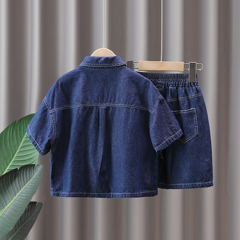 소년 여름 데님 정장 2025 새로운 아동복 잘 생긴 반팔 유행 얇은 아기 소년 여름 옷스토어 가기
