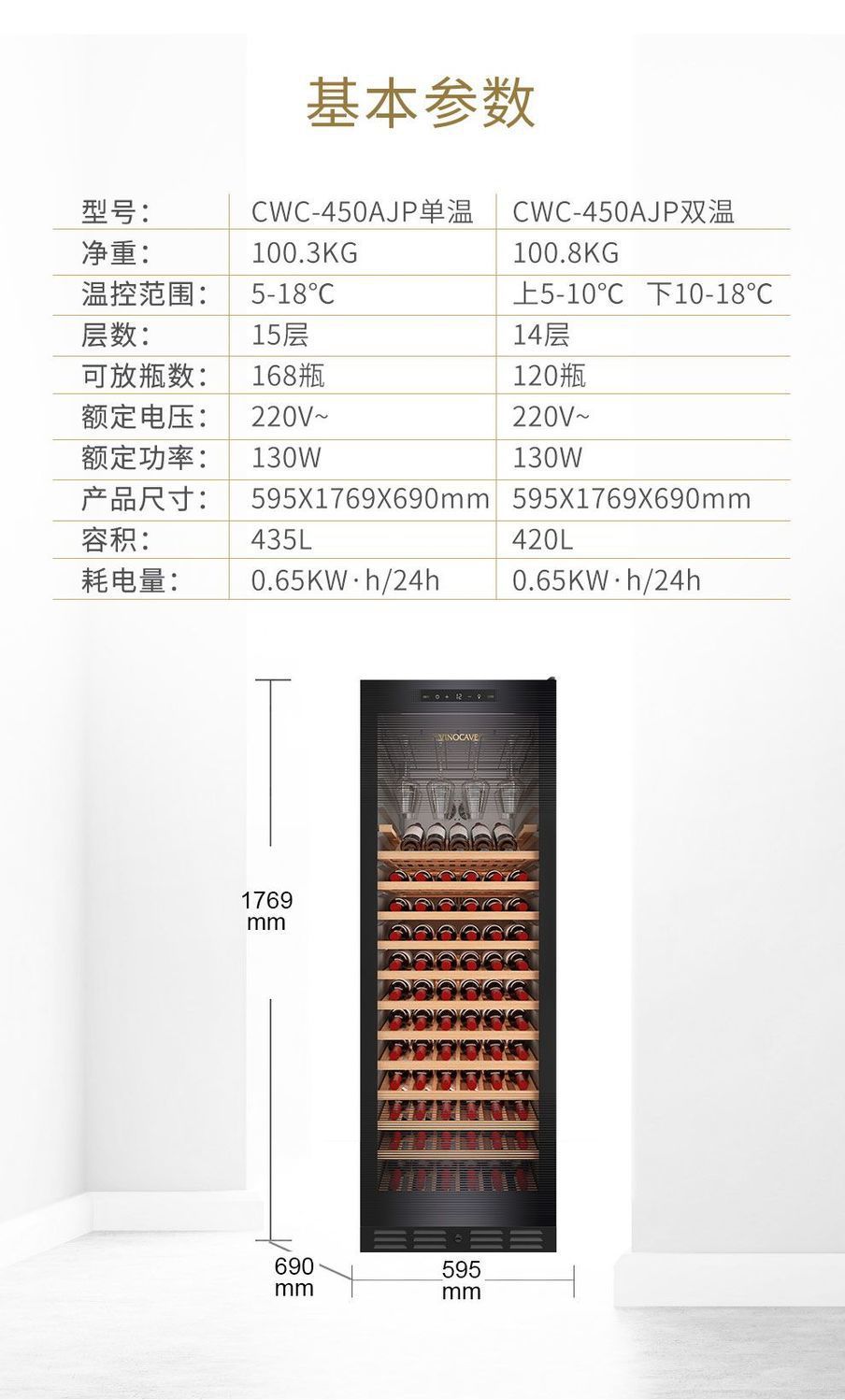 Vinocave 가정용 상업용 항온 레드 와인 캐비닛 공냉식 냉장 대용량 CWC-450A