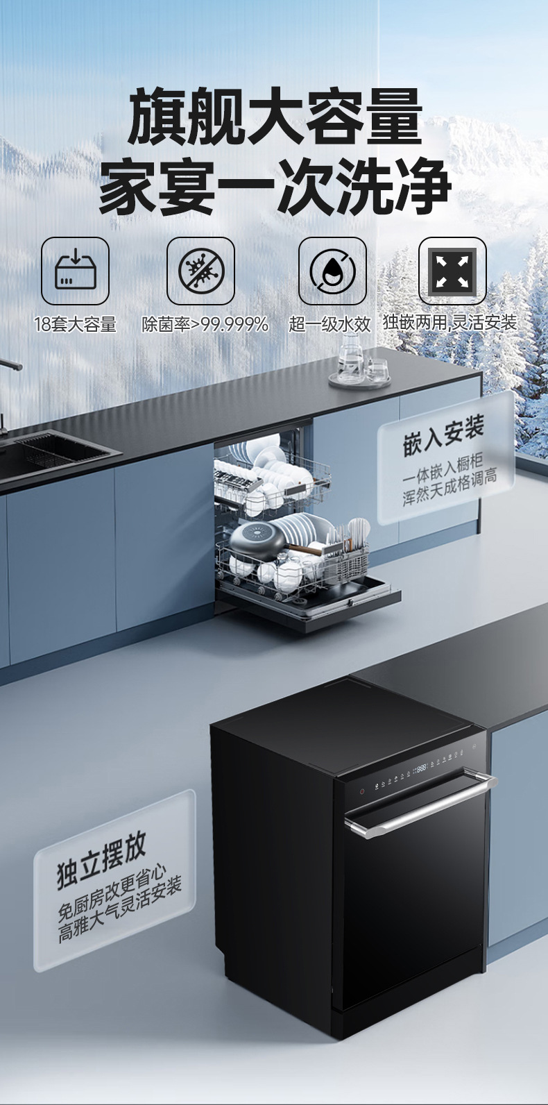 18 세트의 대용량 가정용 식기 세척기, 자동 식기 세척, 냄비 세척, 독립적 인 임베디드 식기 세척기, 가정스토어 가기