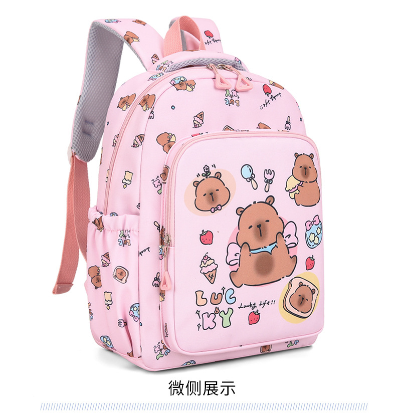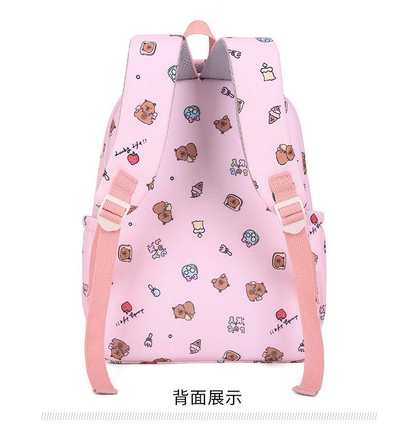 Kapibala Schoolbag 초등학교 학생 1-3-6 학년 Capybara 배낭 여성 대용량 4 피스 컴퓨터 배낭스토어 가기