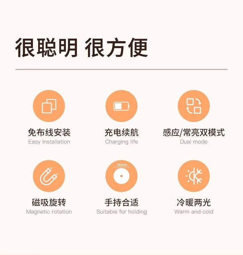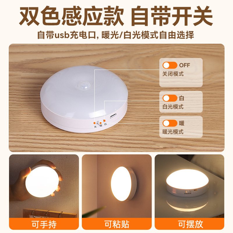 센서 라이트 스마트 인체 LED 전구 침실 옷장 복도 충전식 배터리 무선 조명 제어 에너지 절약 야간 조명