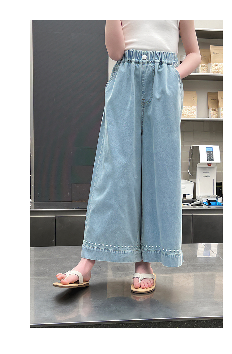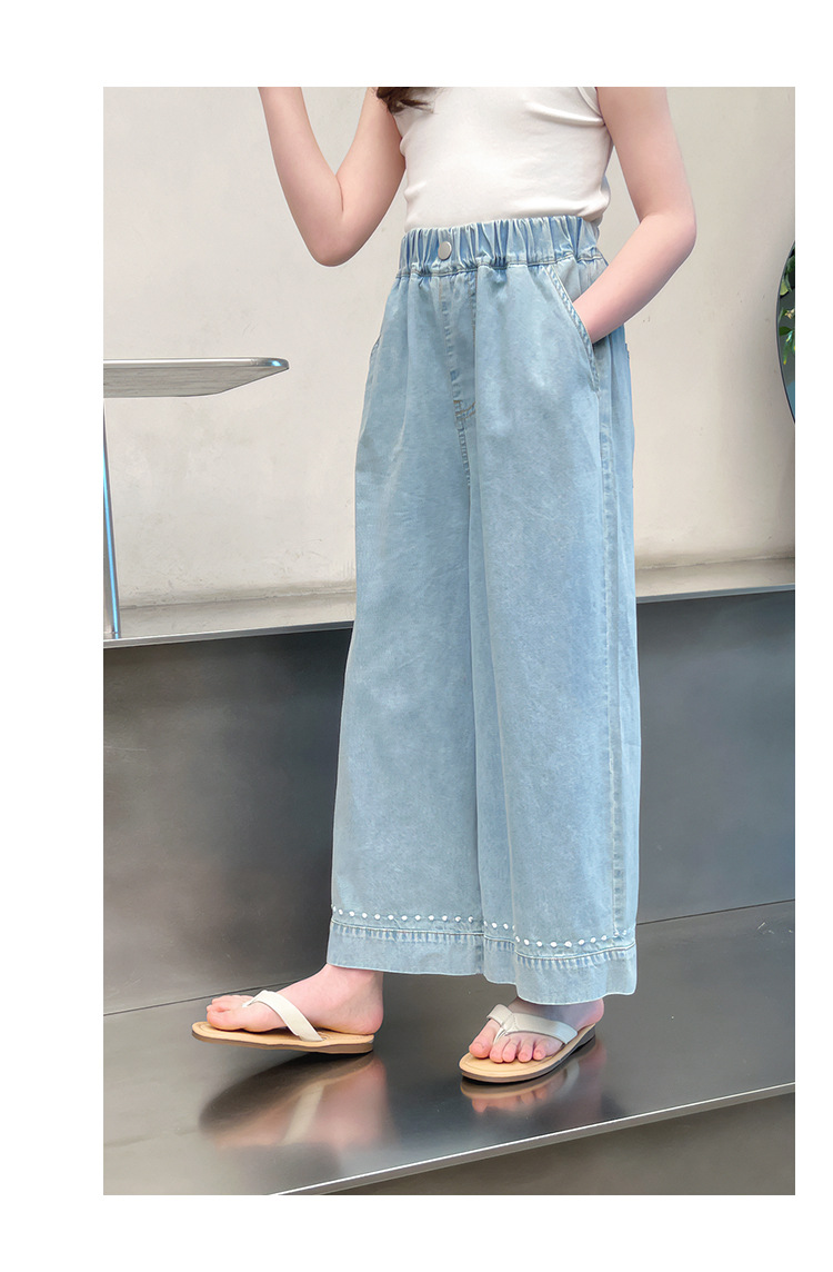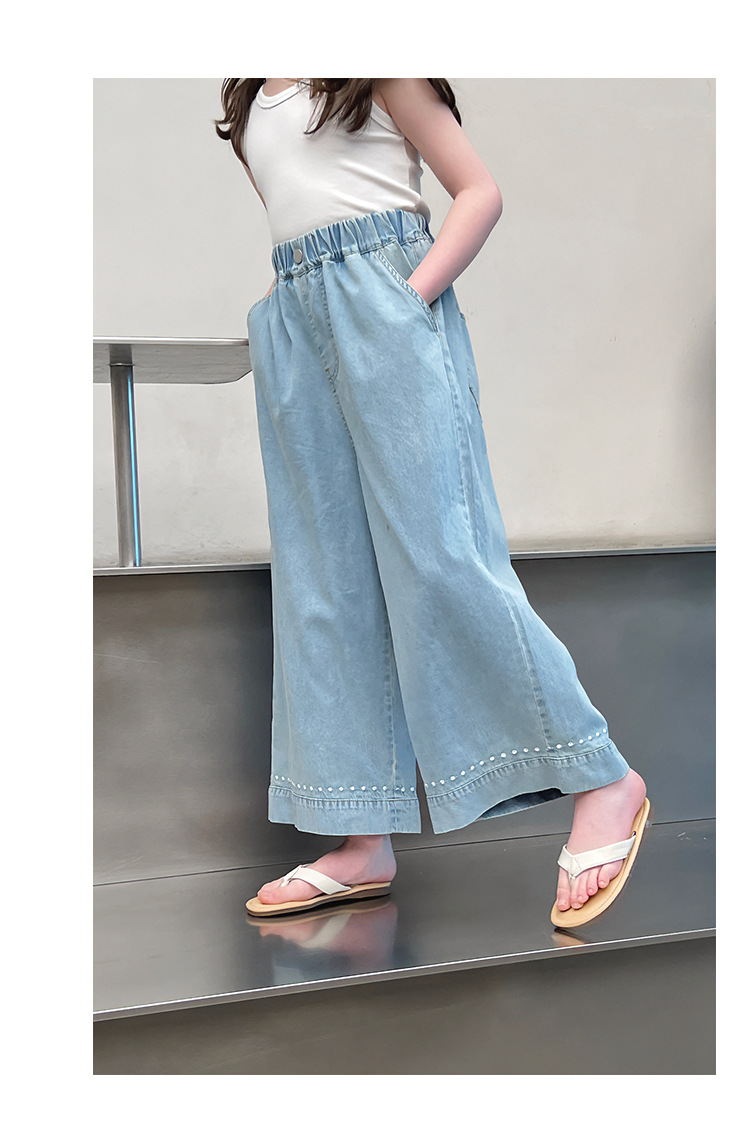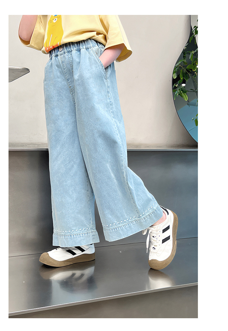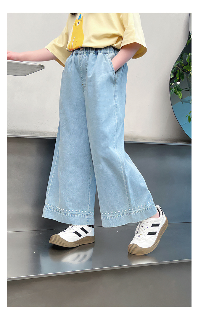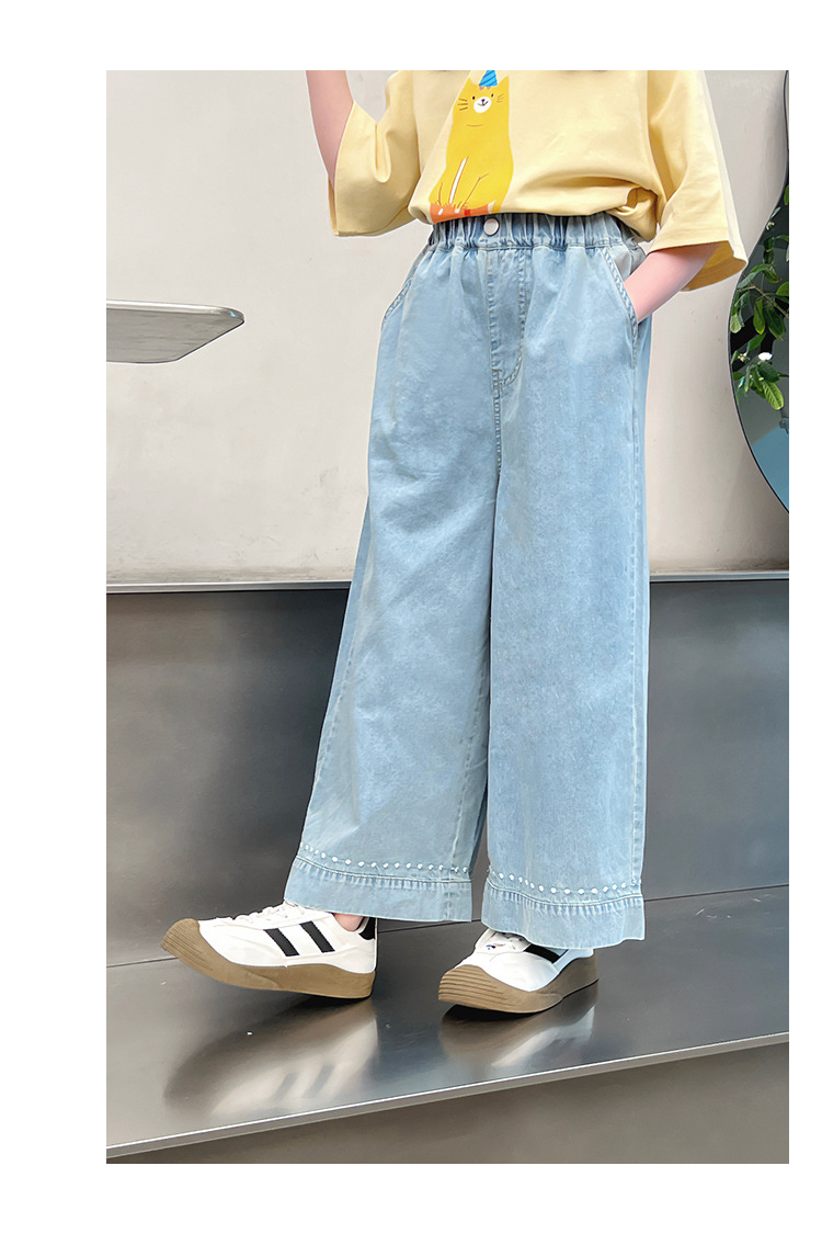 어린이 서양식 얇은 넓은 다리 바지 어린이 스트레이트 레트로 데님 바지 큰 어린이 소녀 2025 여름 새로운 스타일스토어 가기