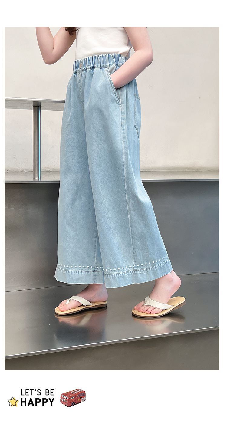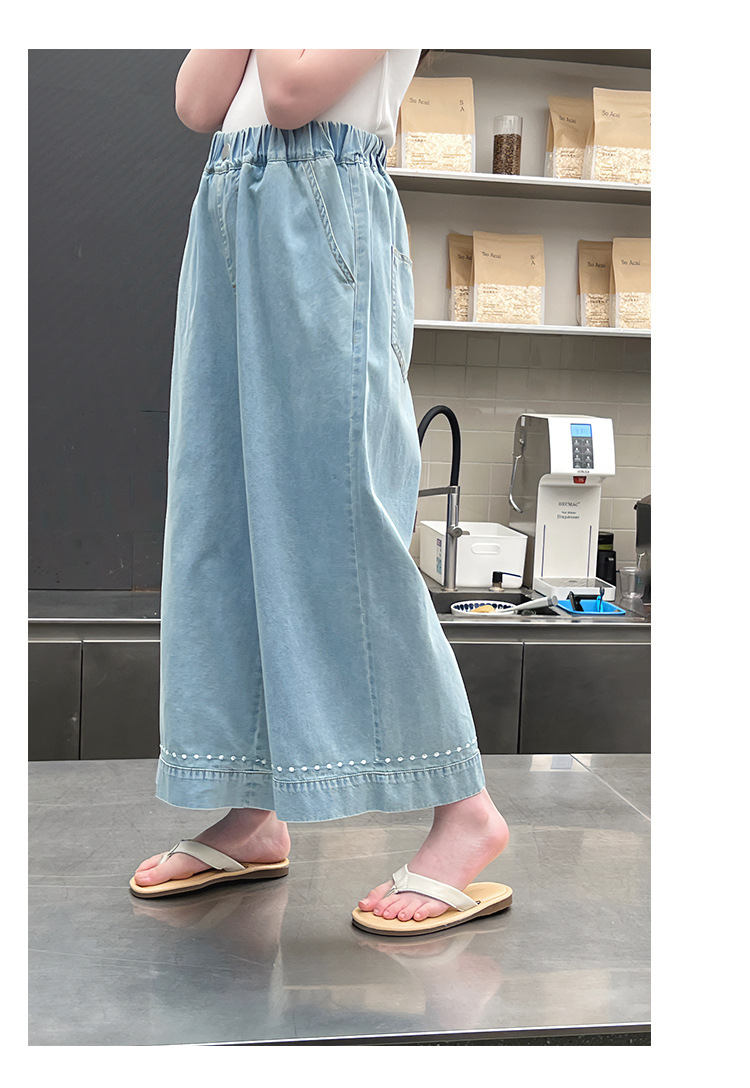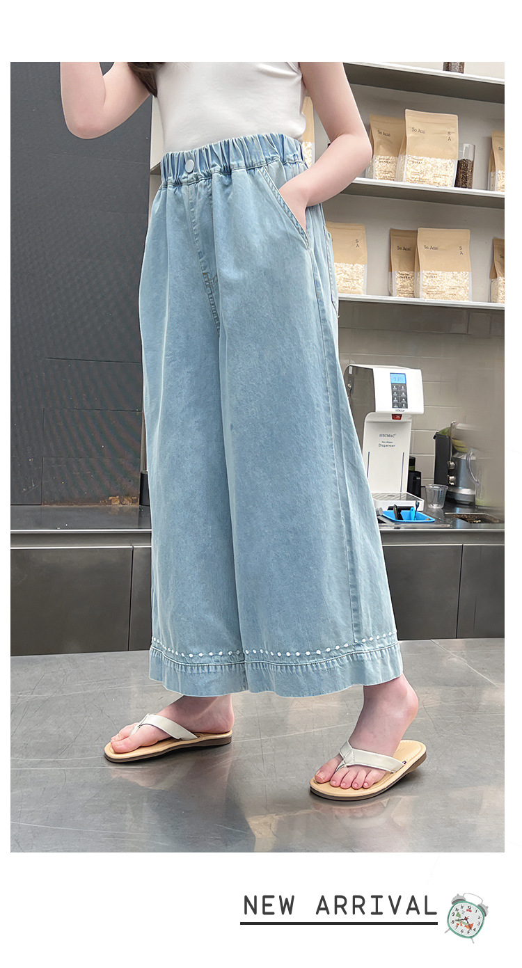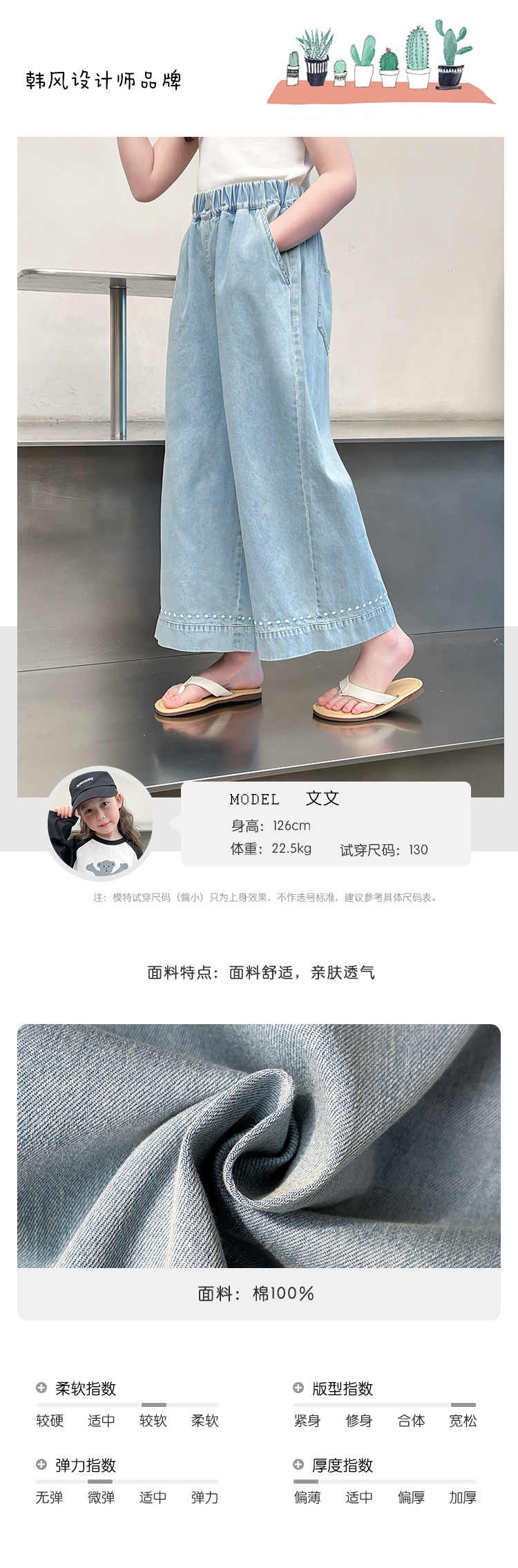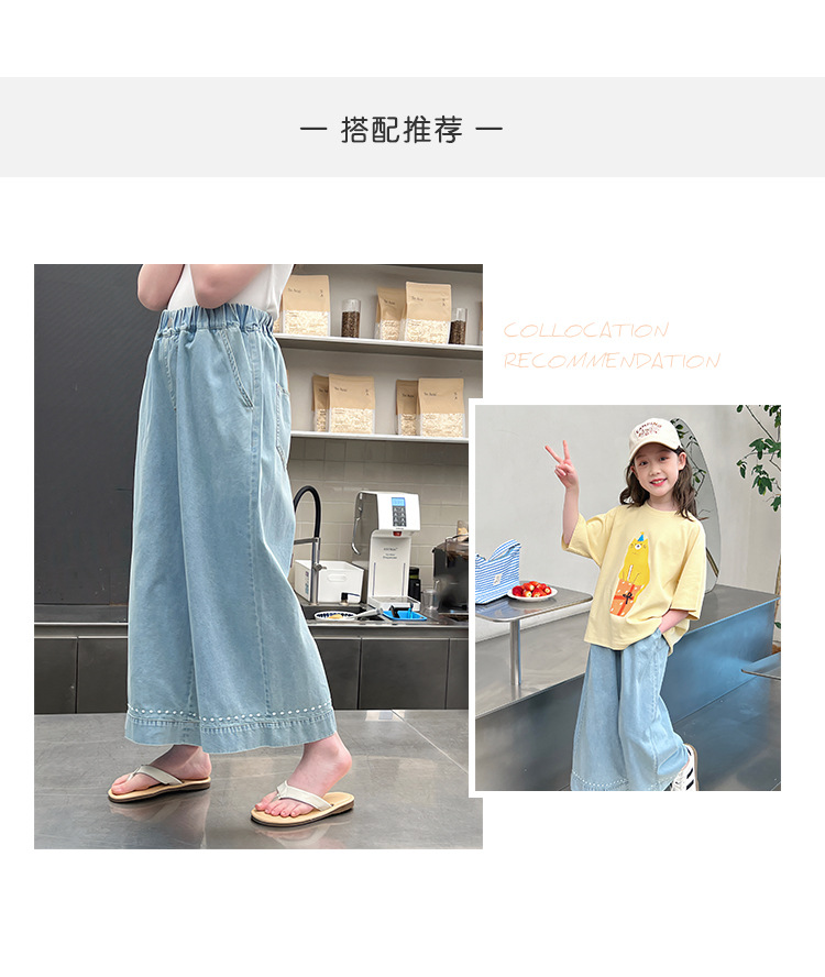 어린이 서양식 얇은 넓은 다리 바지 어린이 스트레이트 레트로 데님 바지 큰 어린이 소녀 2025 여름 새로운 스타일스토어 가기