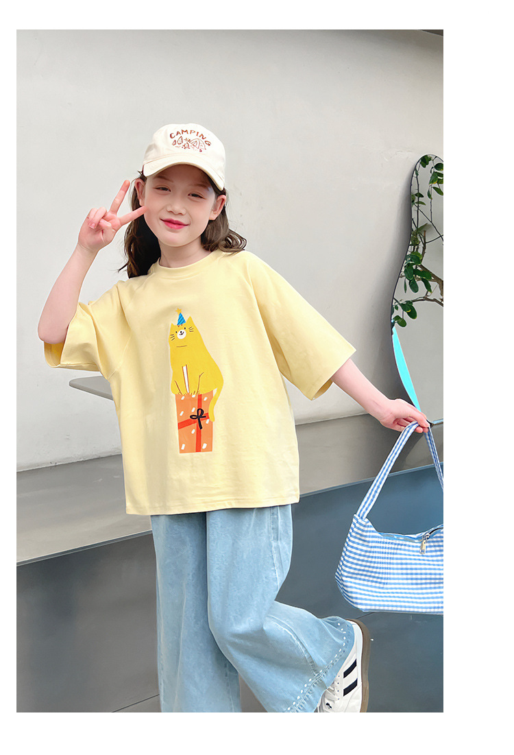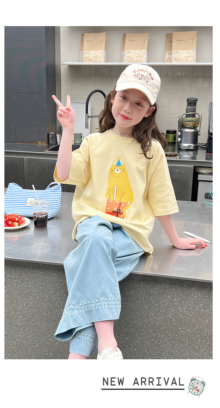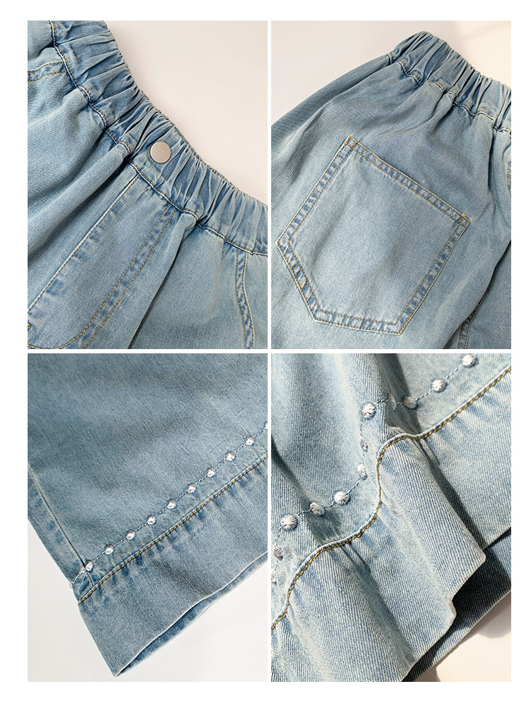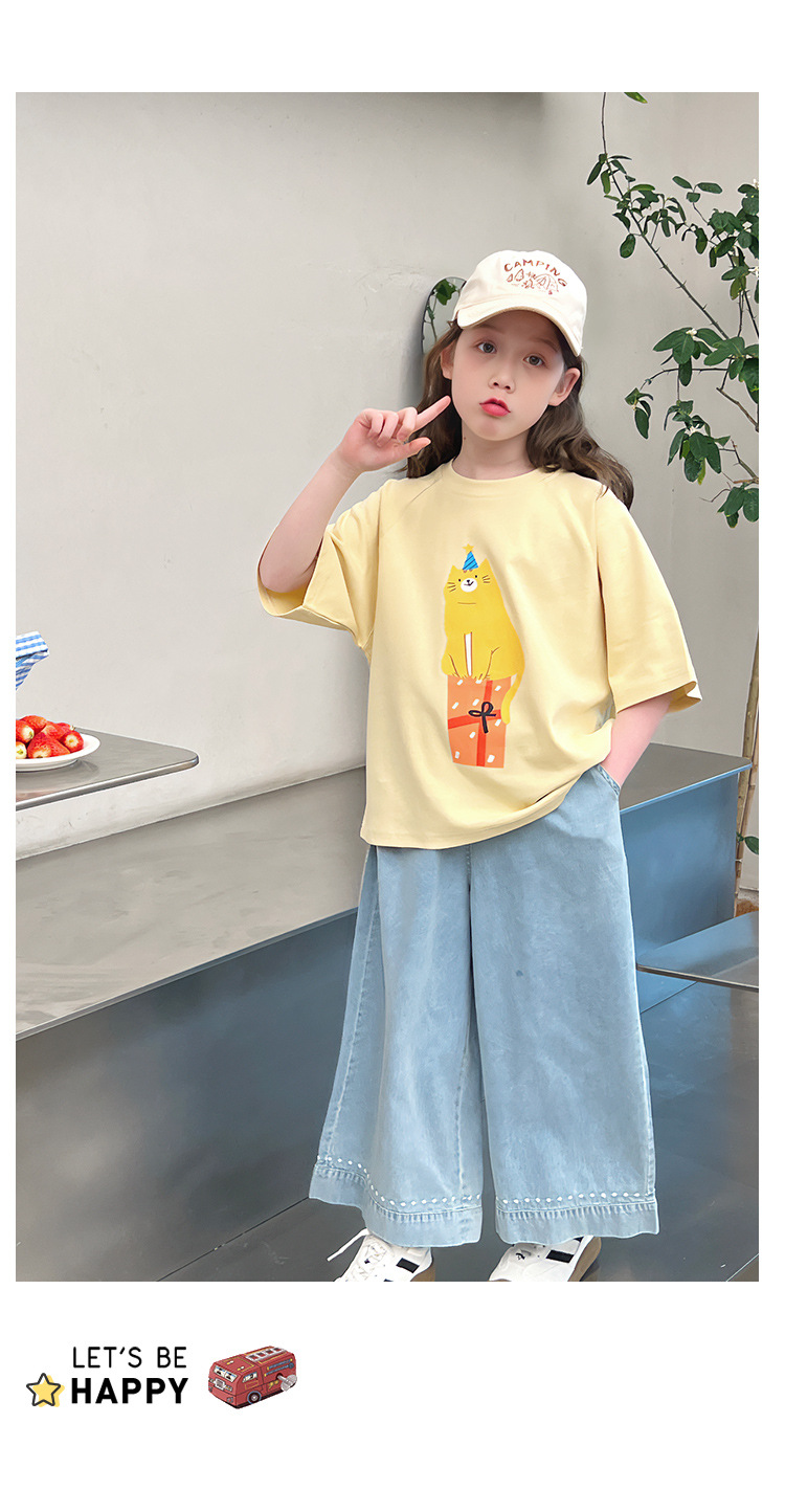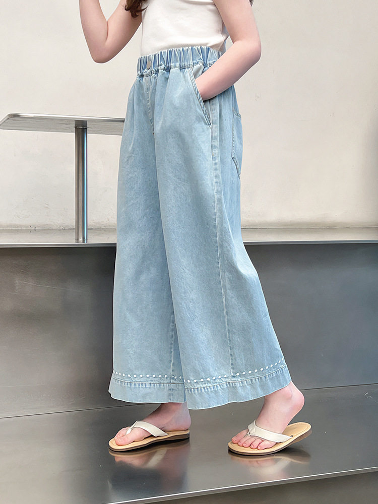 어린이 서양식 얇은 넓은 다리 바지 어린이 스트레이트 레트로 데님 바지 큰 어린이 소녀 2025 여름 새로운 스타일스토어 가기