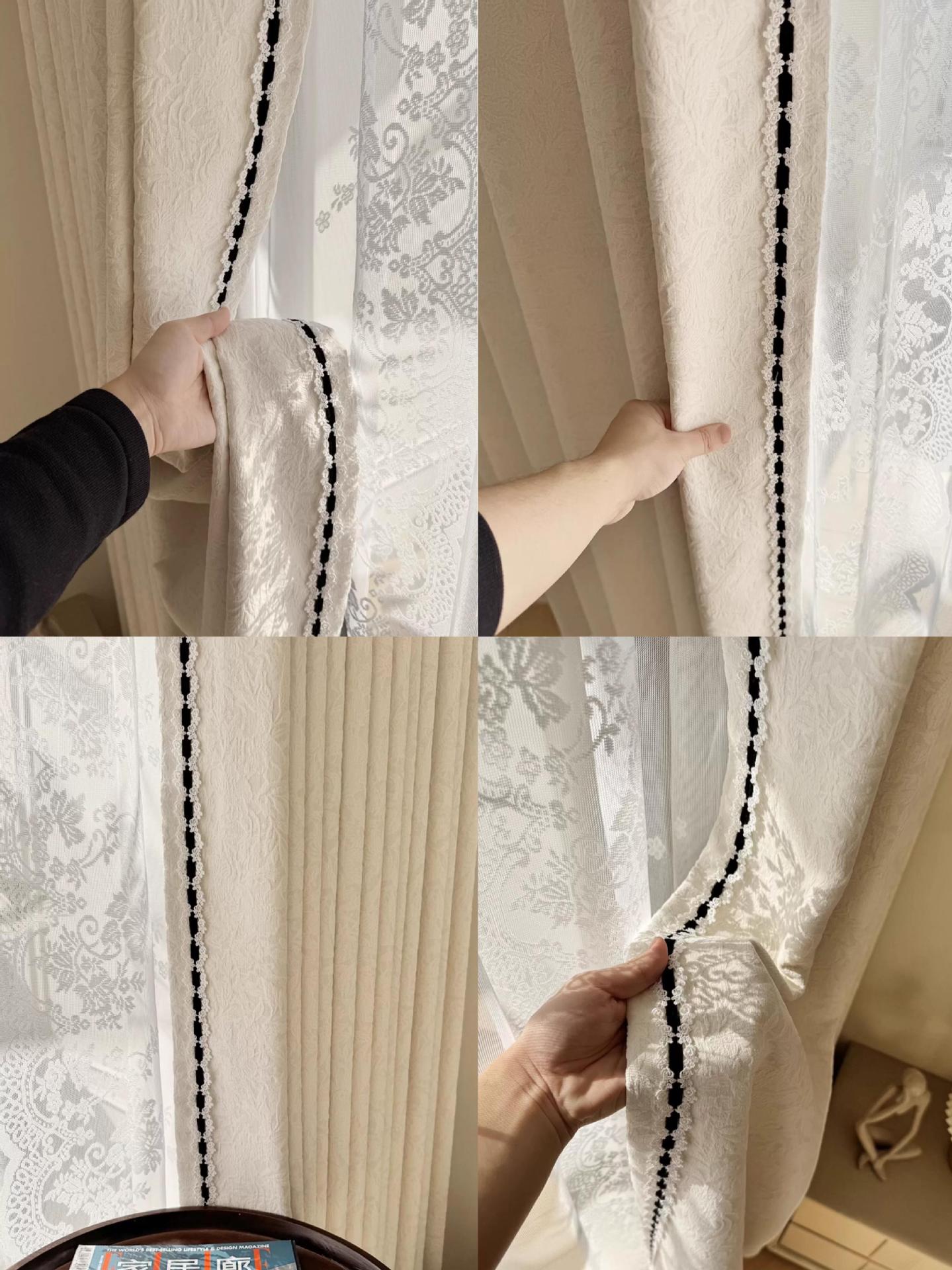 장미 꽃 프랑스 커튼 Chenille 양각 거실 침실 발코니 현대 높은 수준의 새로운 정전 커튼스토어 가기