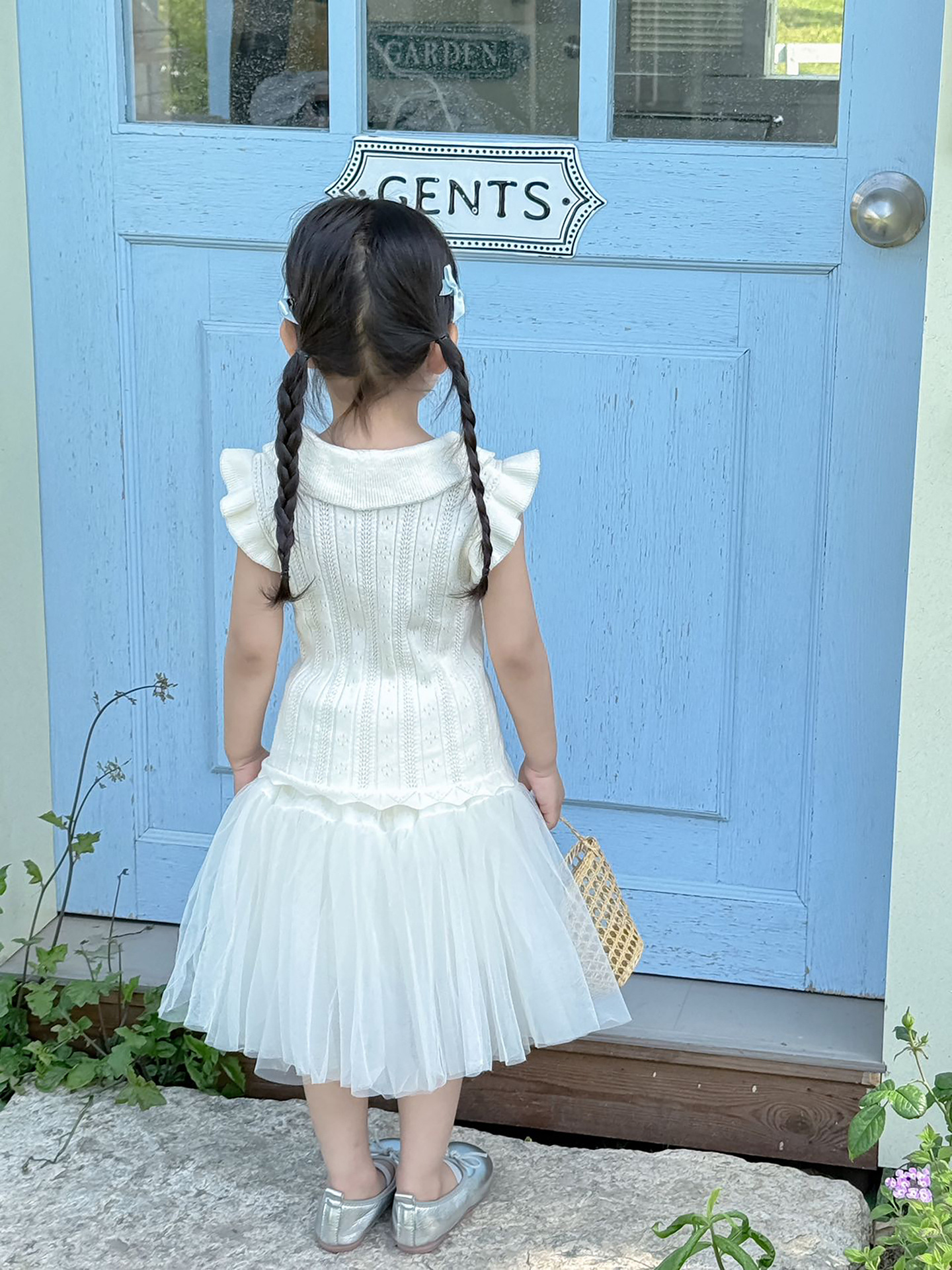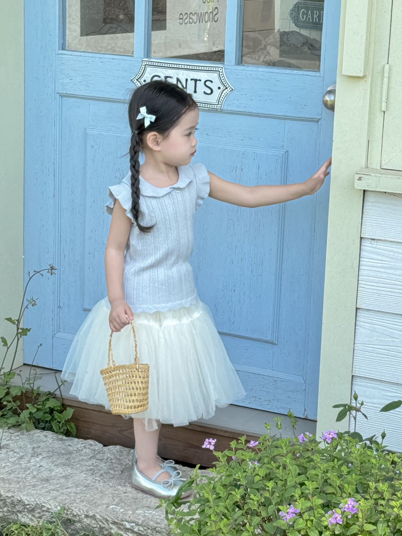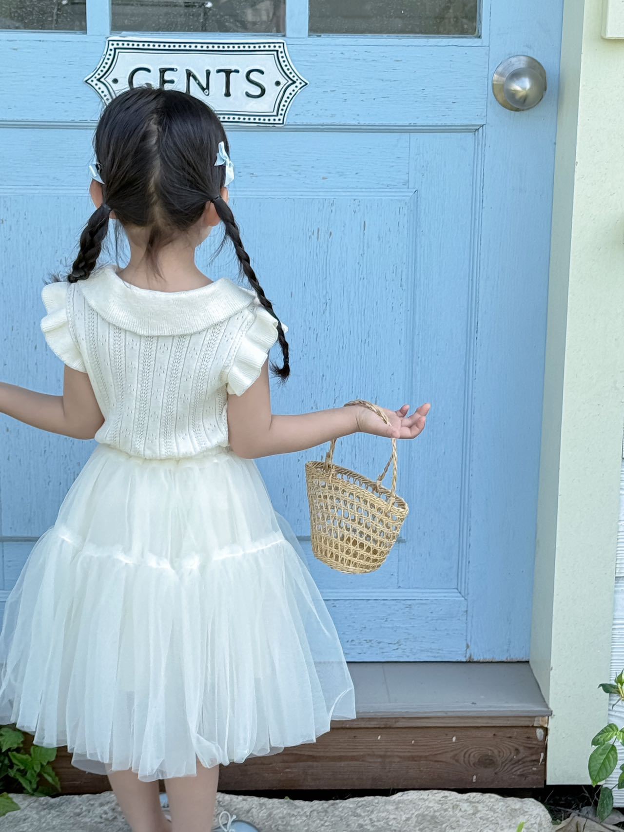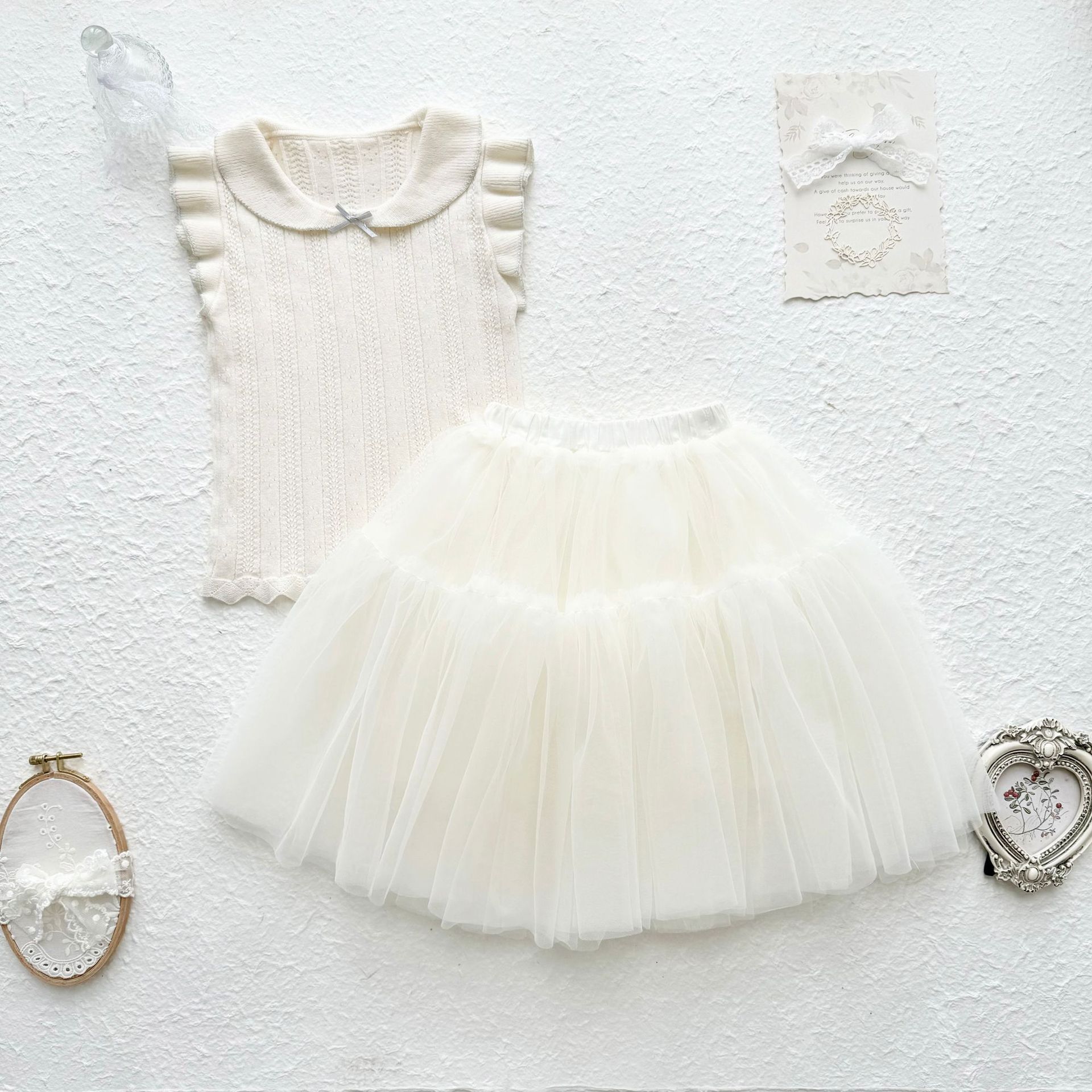 귀여운 러플 니트 스웨터 소녀의 서양식 하이 엔드 센스 거즈 스커트 세트 곁들인 한국식 여성용 보물 반쪽 길이 거즈 스커트