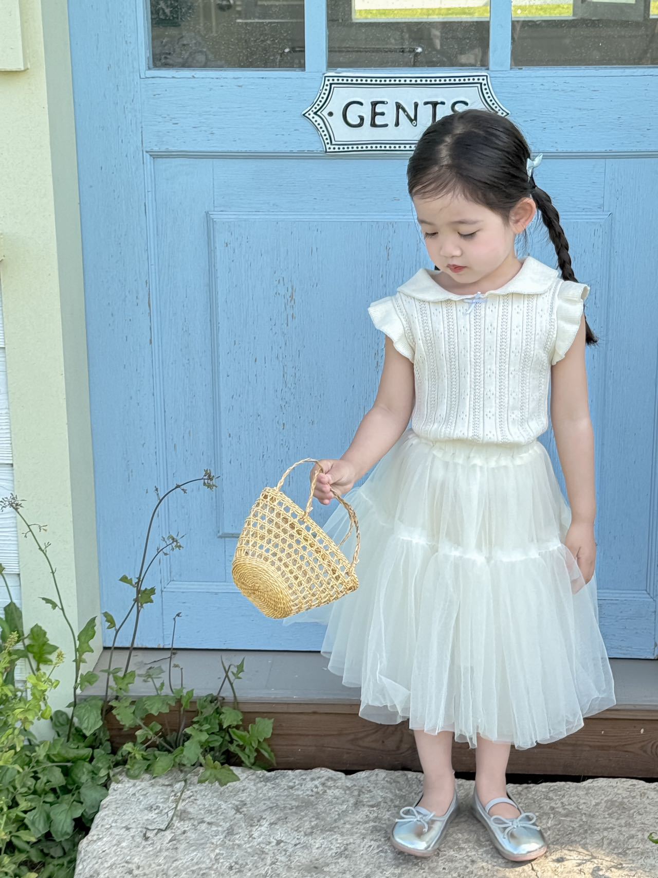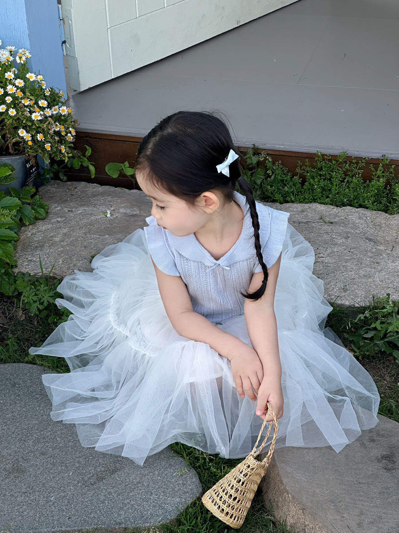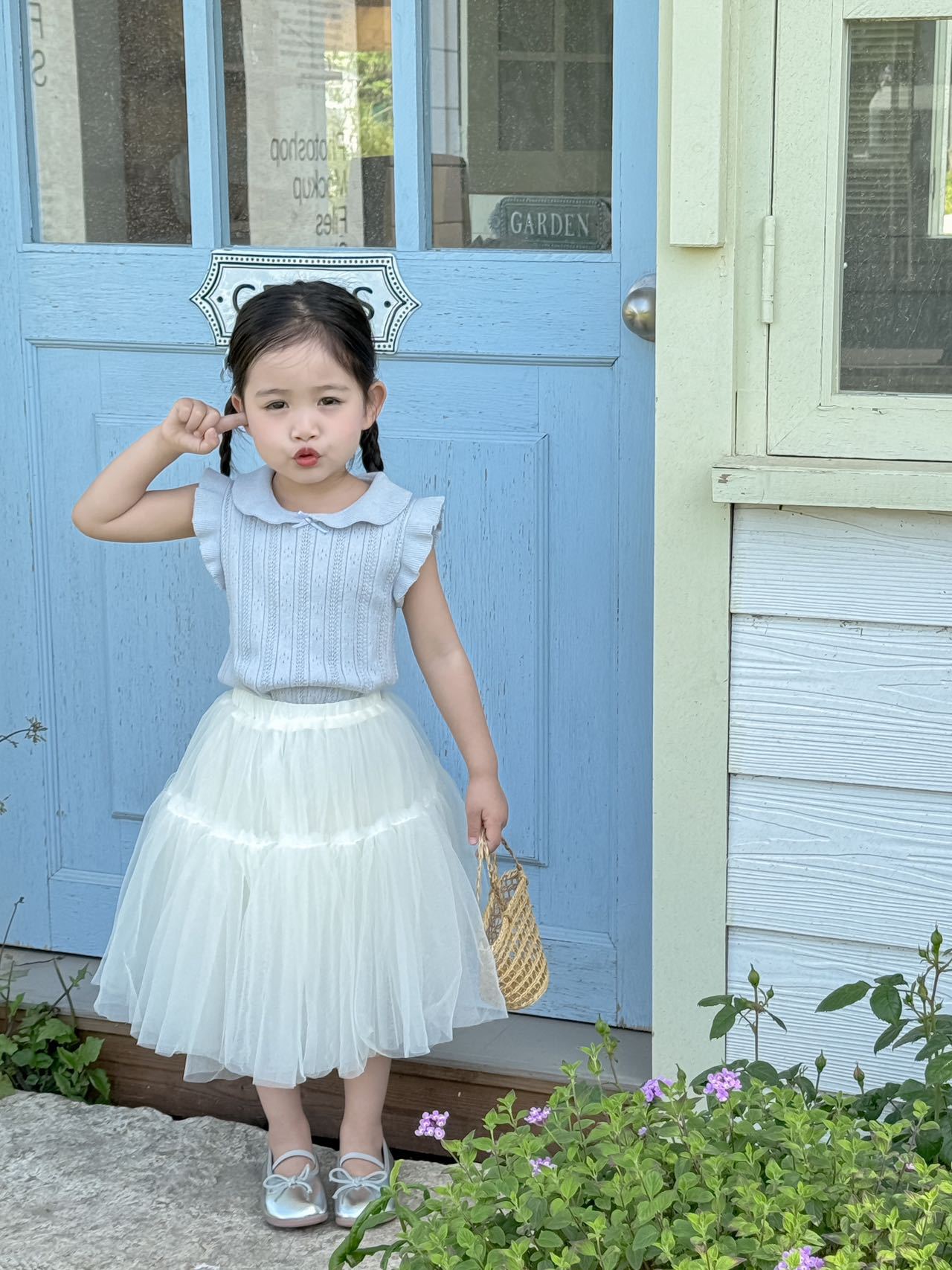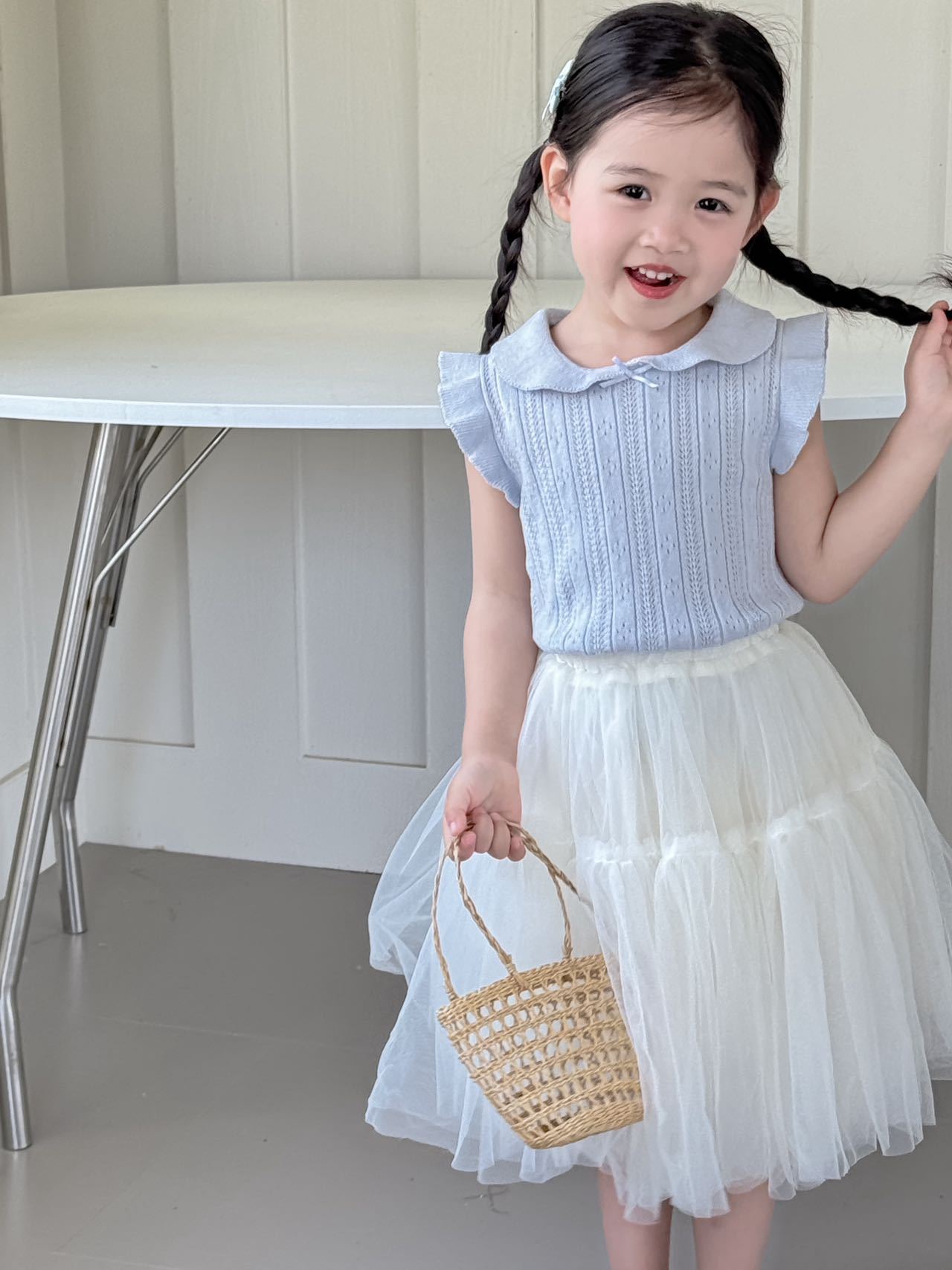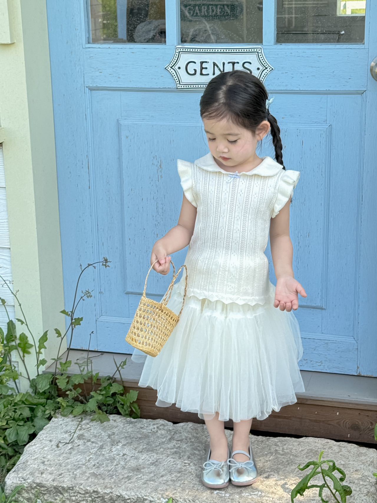 귀여운 러플 니트 스웨터 소녀의 서양식 하이 엔드 센스 거즈 스커트 세트 곁들인 한국식 여성용 보물 반쪽 길이 거즈 스커트
