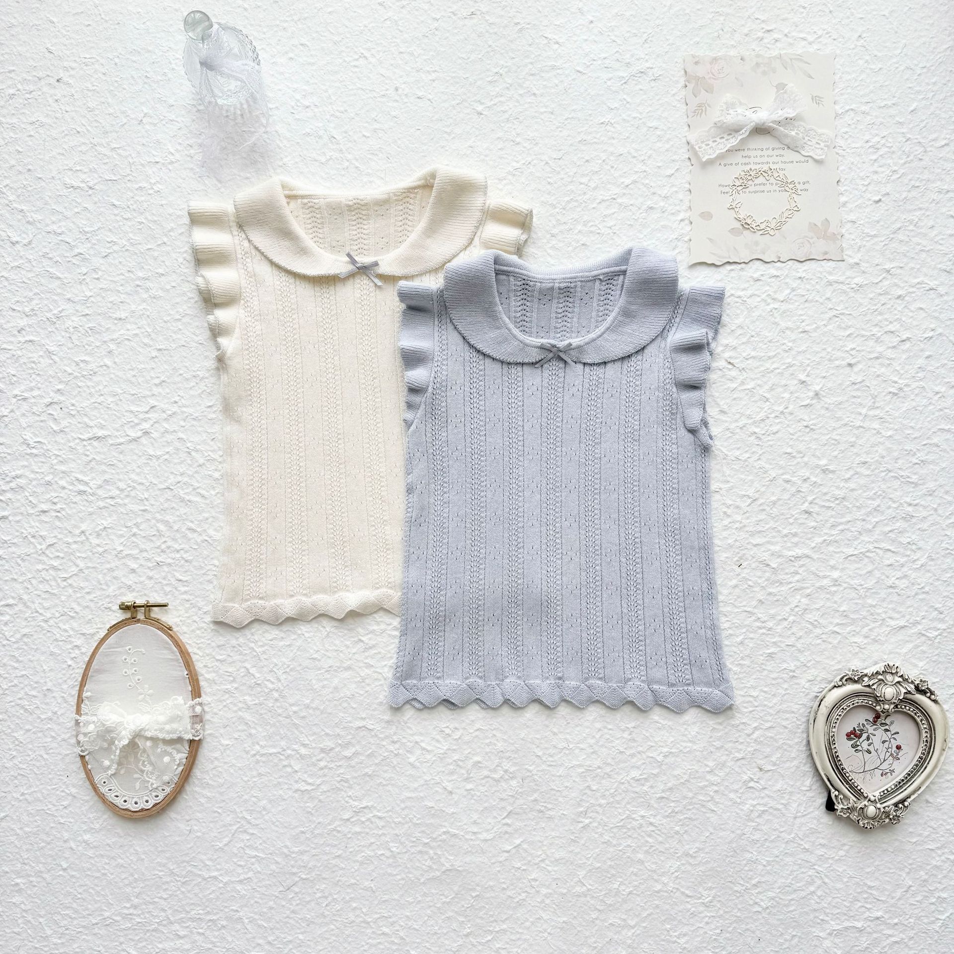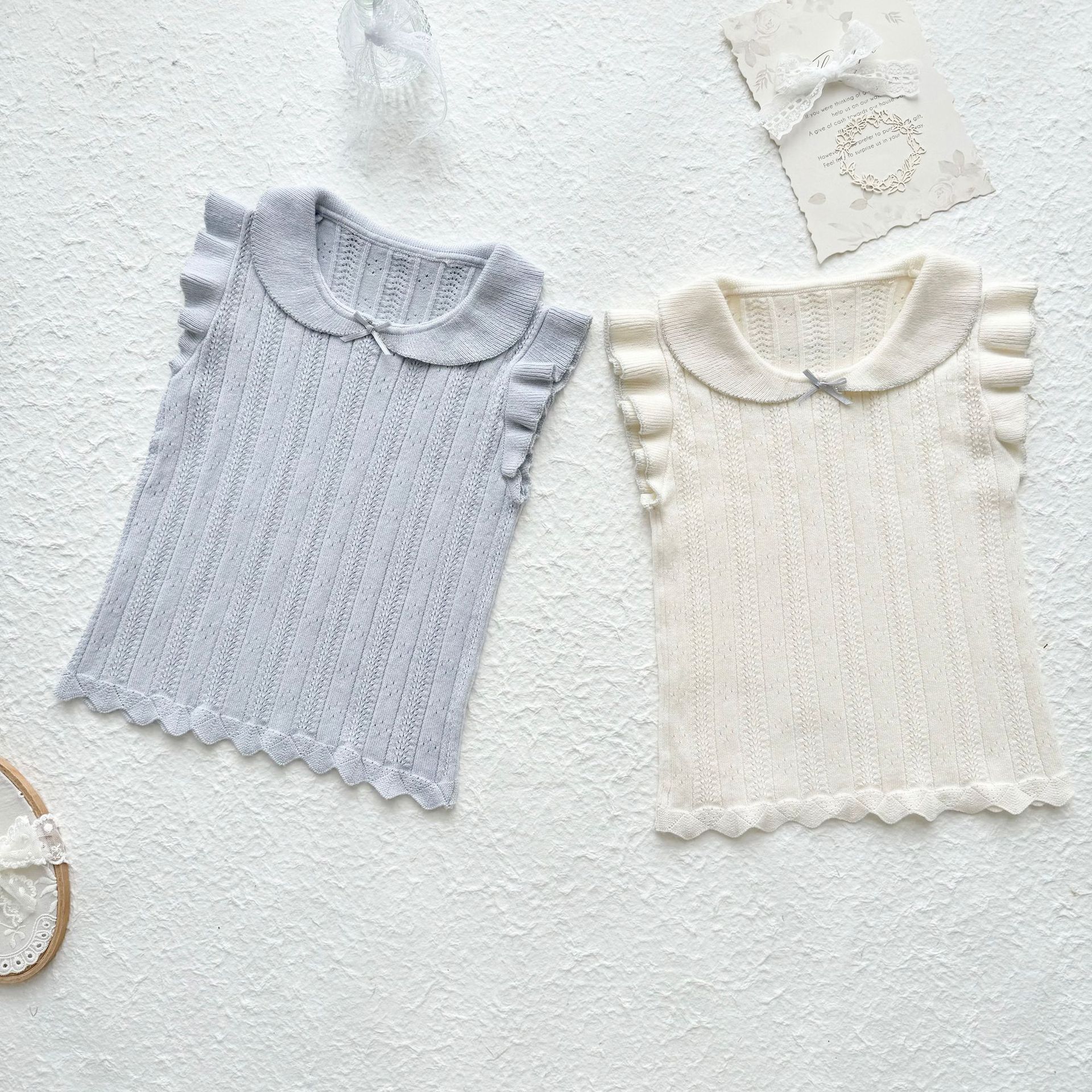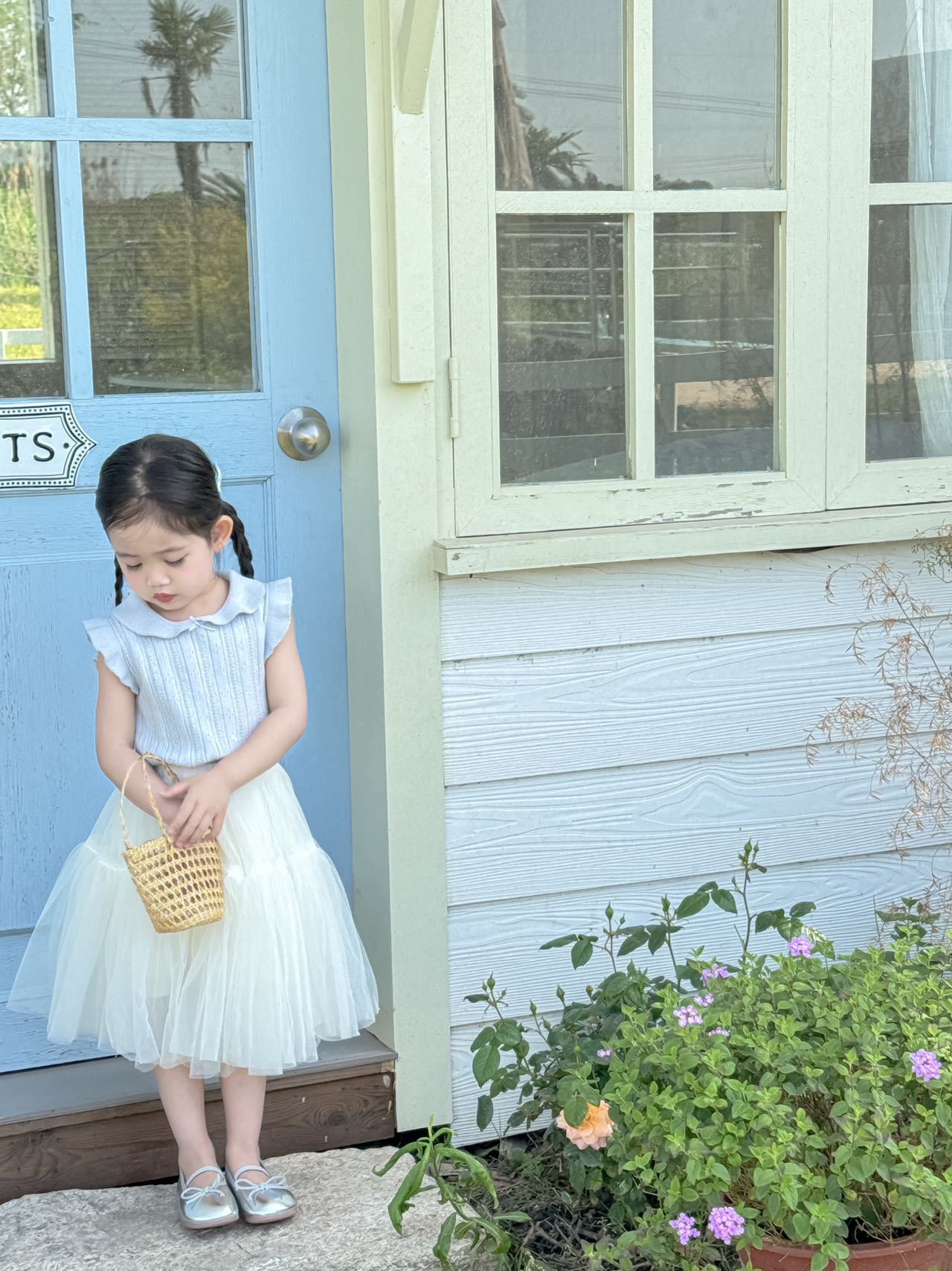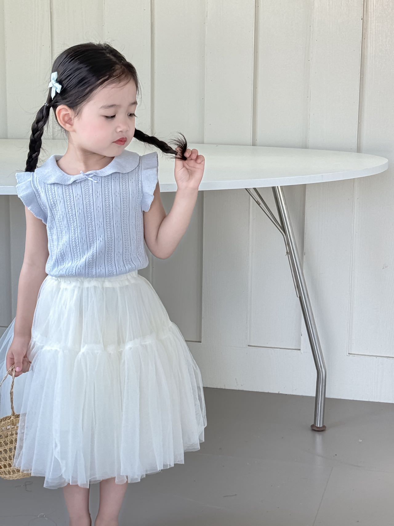 귀여운 러플 니트 스웨터 소녀의 서양식 하이 엔드 센스 거즈 스커트 세트 곁들인 한국식 여성용 보물 반쪽 길이 거즈 스커트