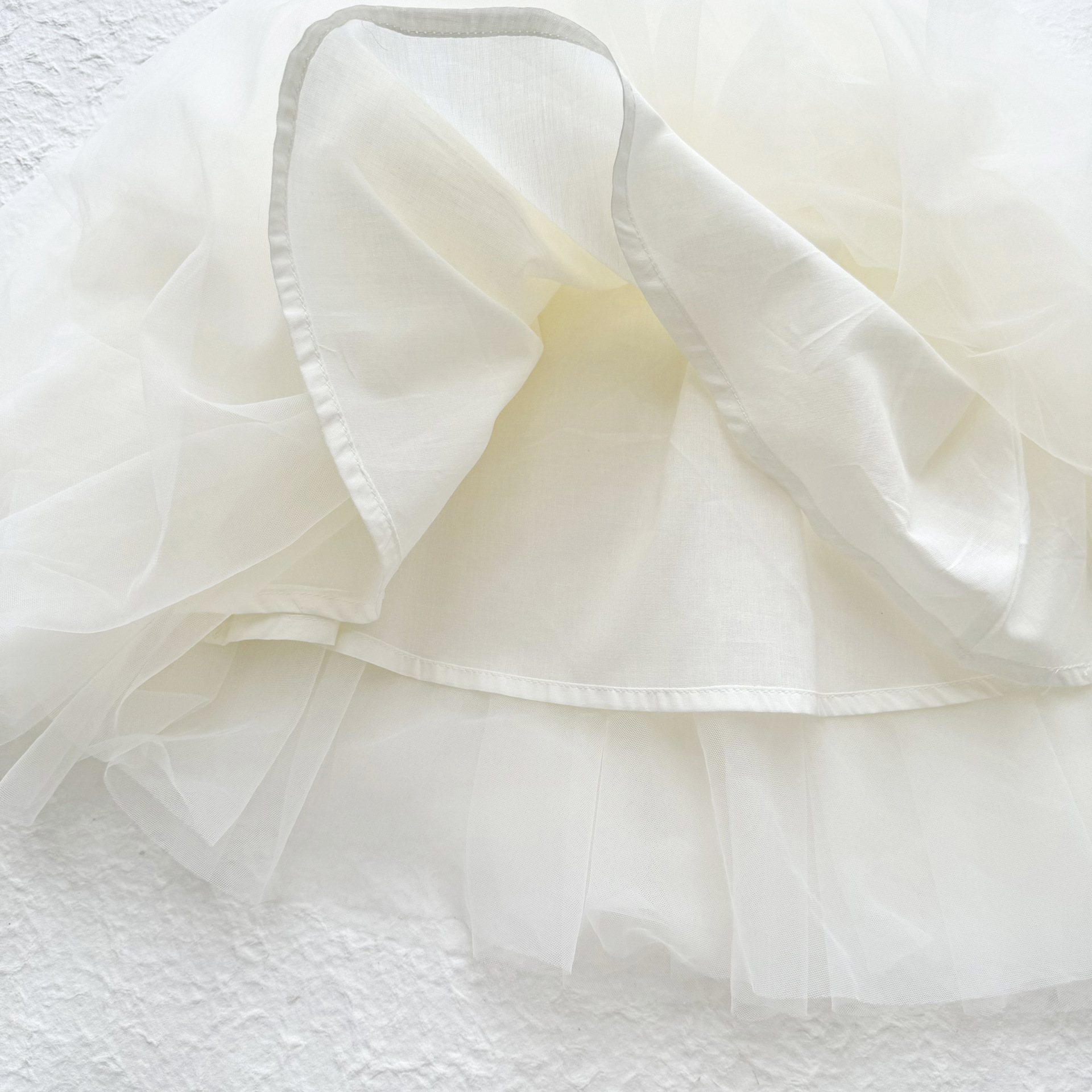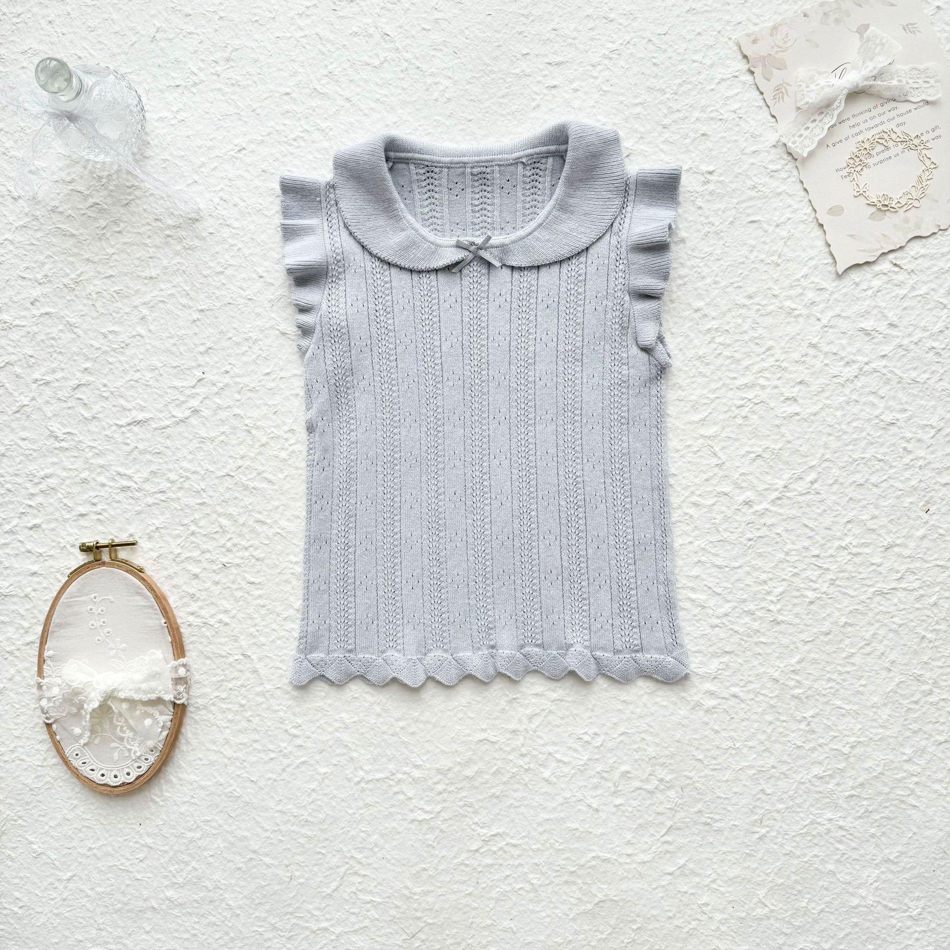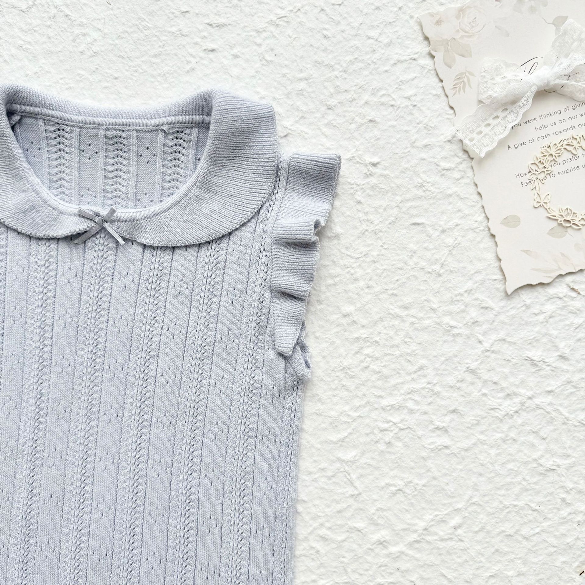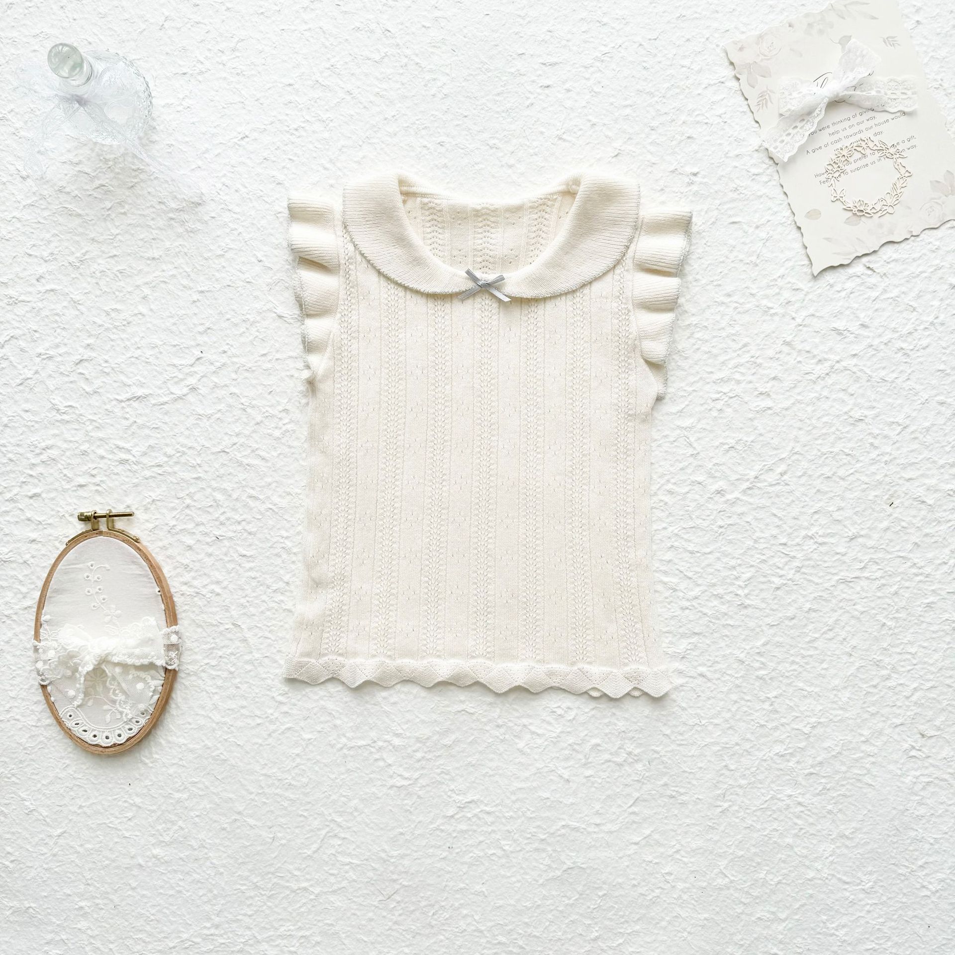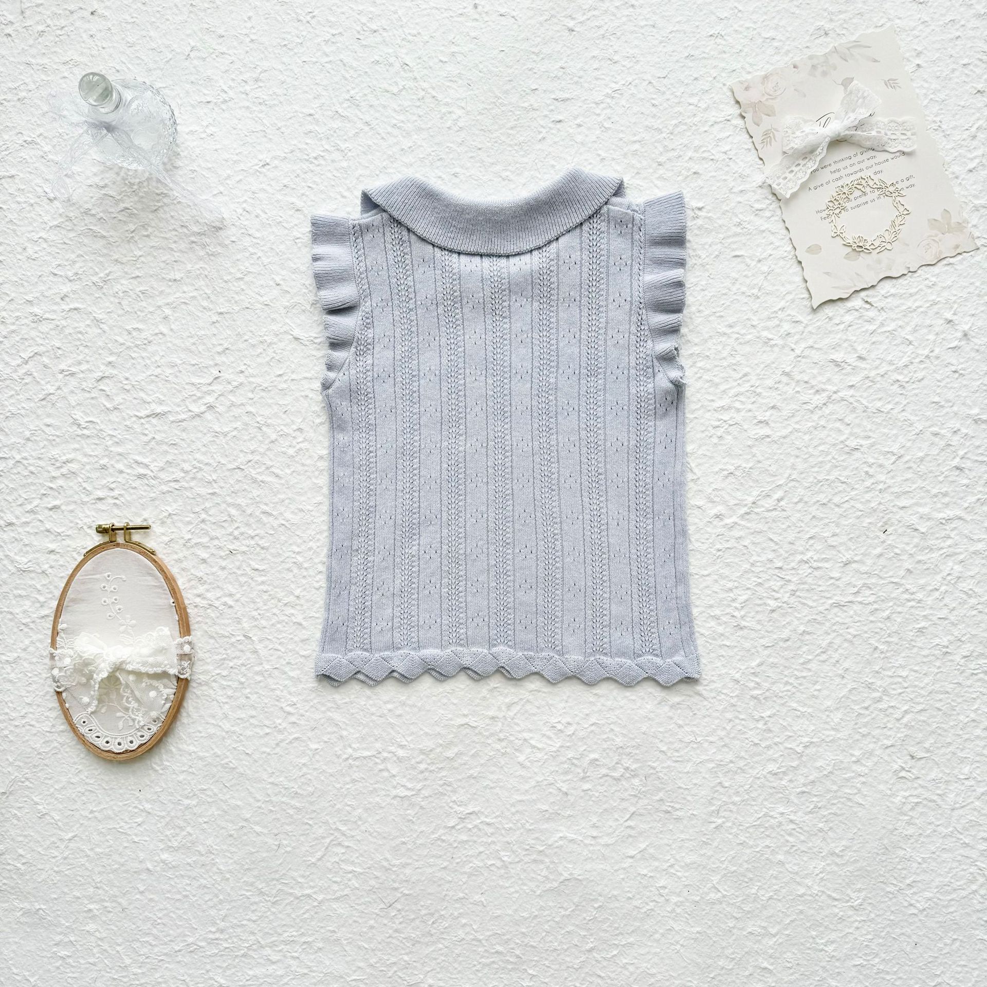 귀여운 러플 니트 스웨터 소녀의 서양식 하이 엔드 센스 거즈 스커트 세트 곁들인 한국식 여성용 보물 반쪽 길이 거즈 스커트