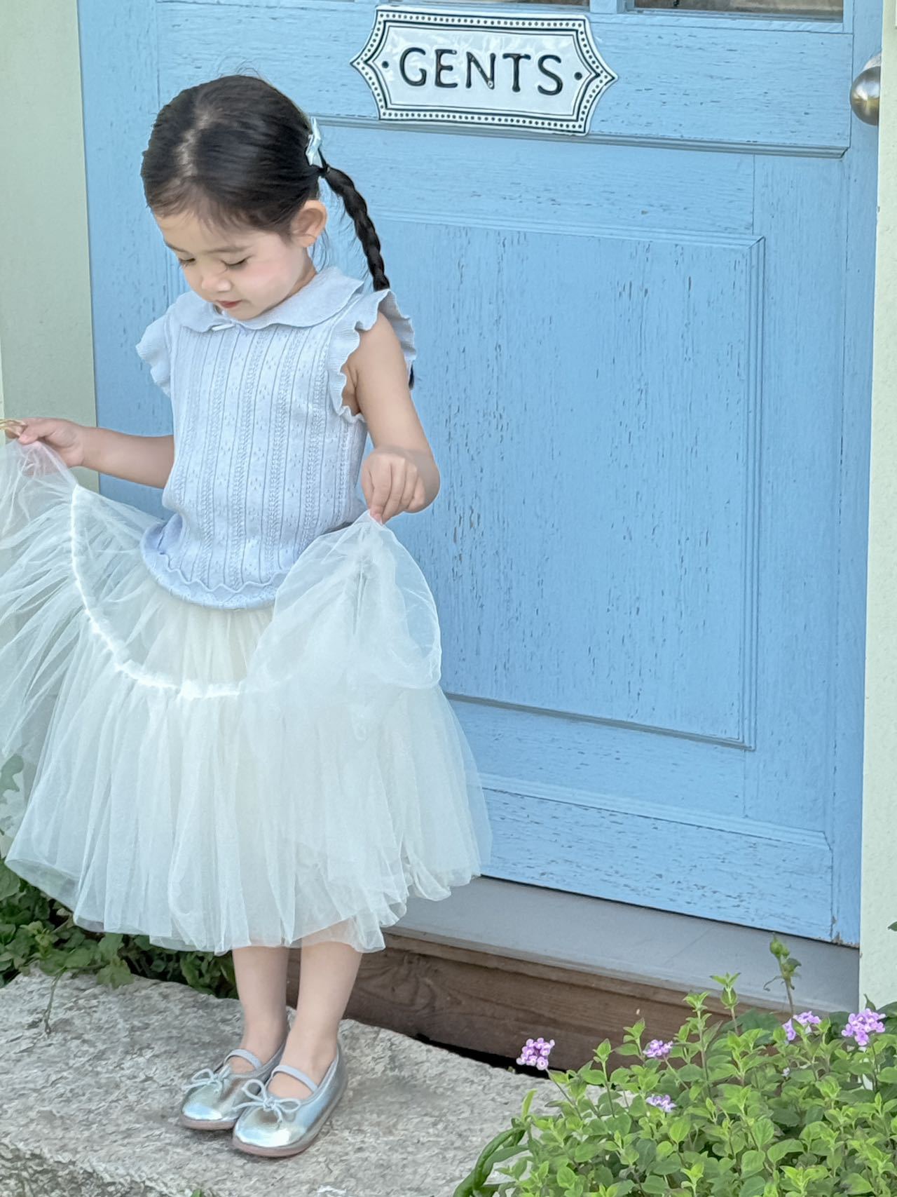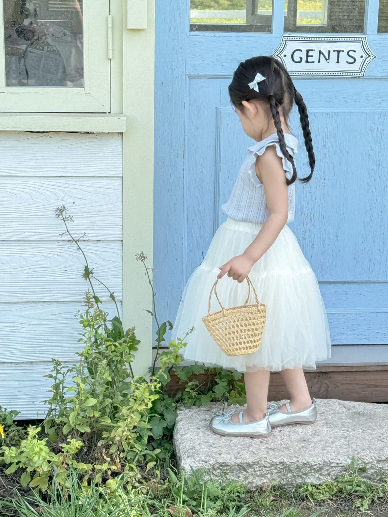 귀여운 러플 니트 스웨터 소녀의 서양식 하이 엔드 센스 거즈 스커트 세트 곁들인 한국식 여성용 보물 반쪽 길이 거즈 스커트스토어 가기