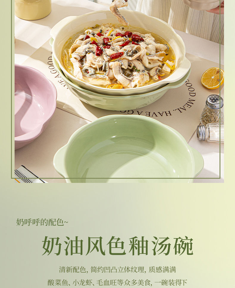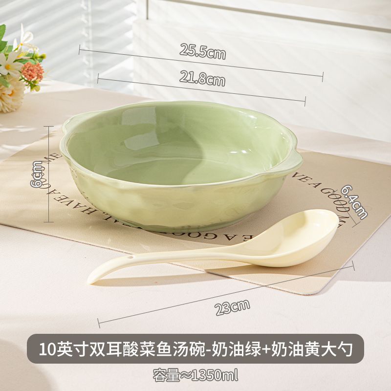 • 크림 그린 - 양귀 소금에 절인 양배추 생선 수프 그릇 10inch개