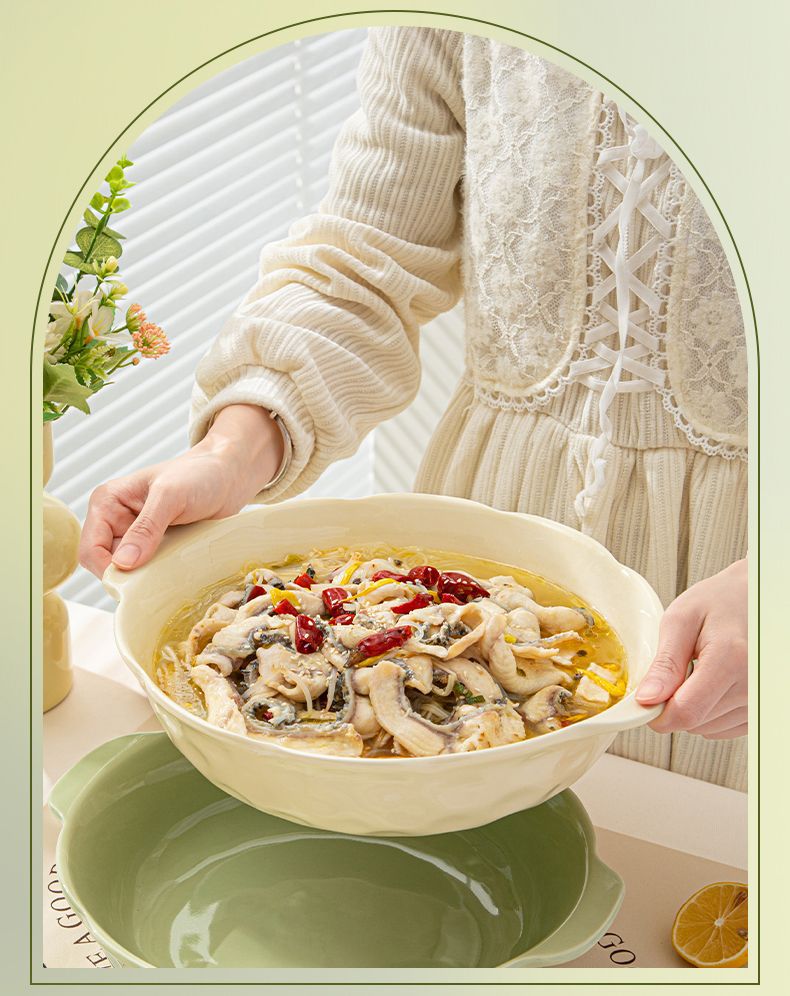 • 크림 그린 - 양귀 소금에 절인 양배추 생선 수프 그릇 12inch개