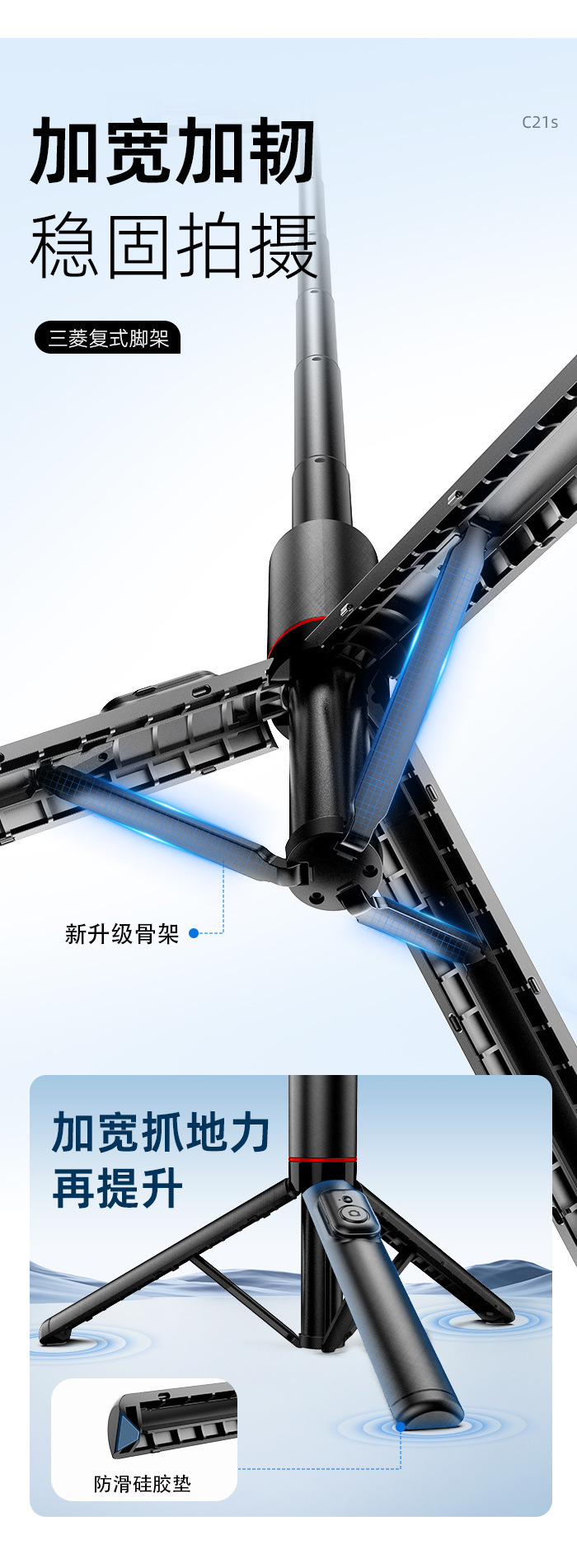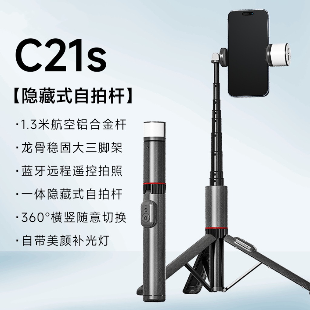 제조 업체 도매 C21 셀카 스틱 숨겨진 통합 휴대 전화 블루투스 사진 라이브 방송 삼각대 vlog 비디오 스탠드