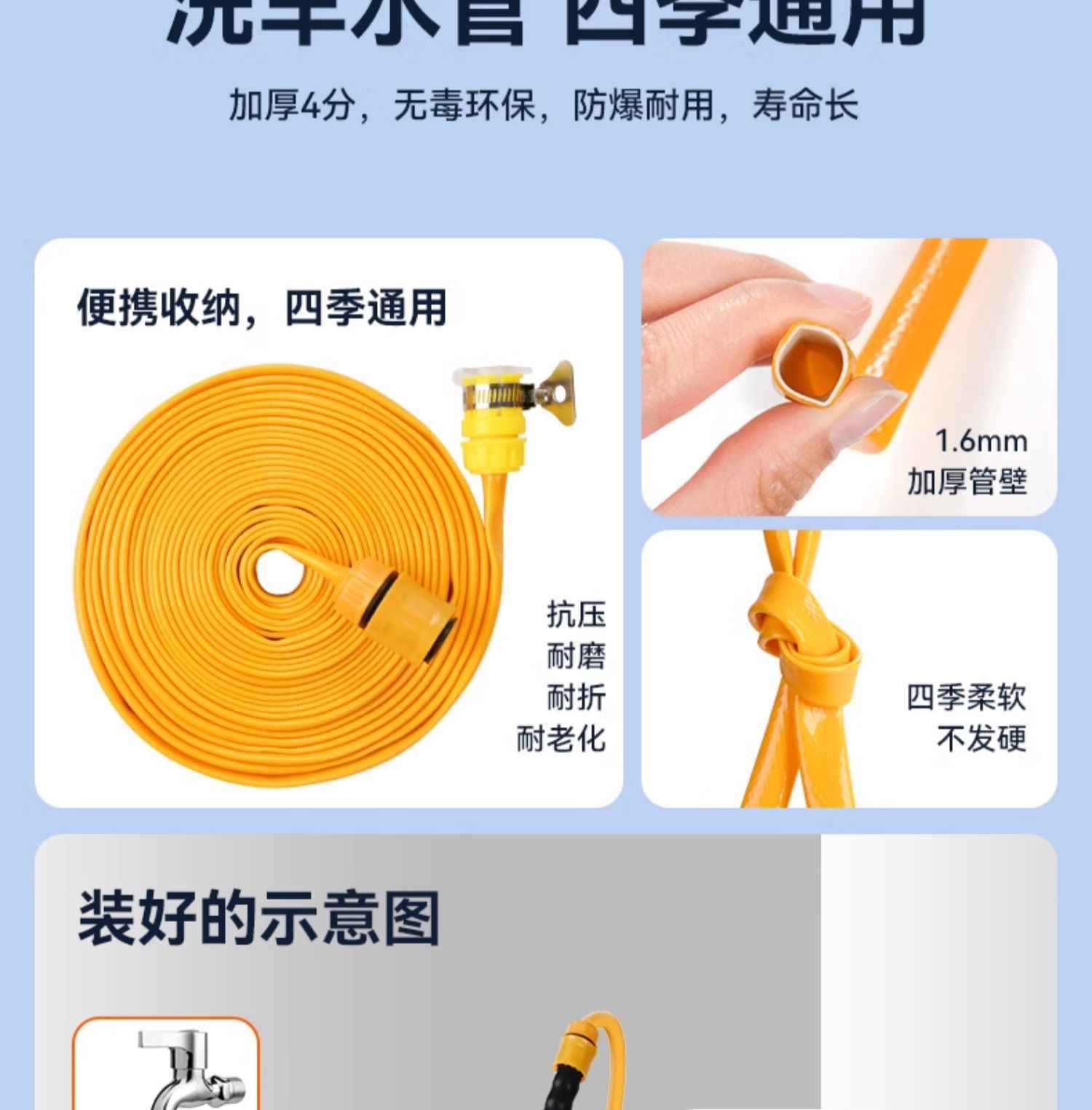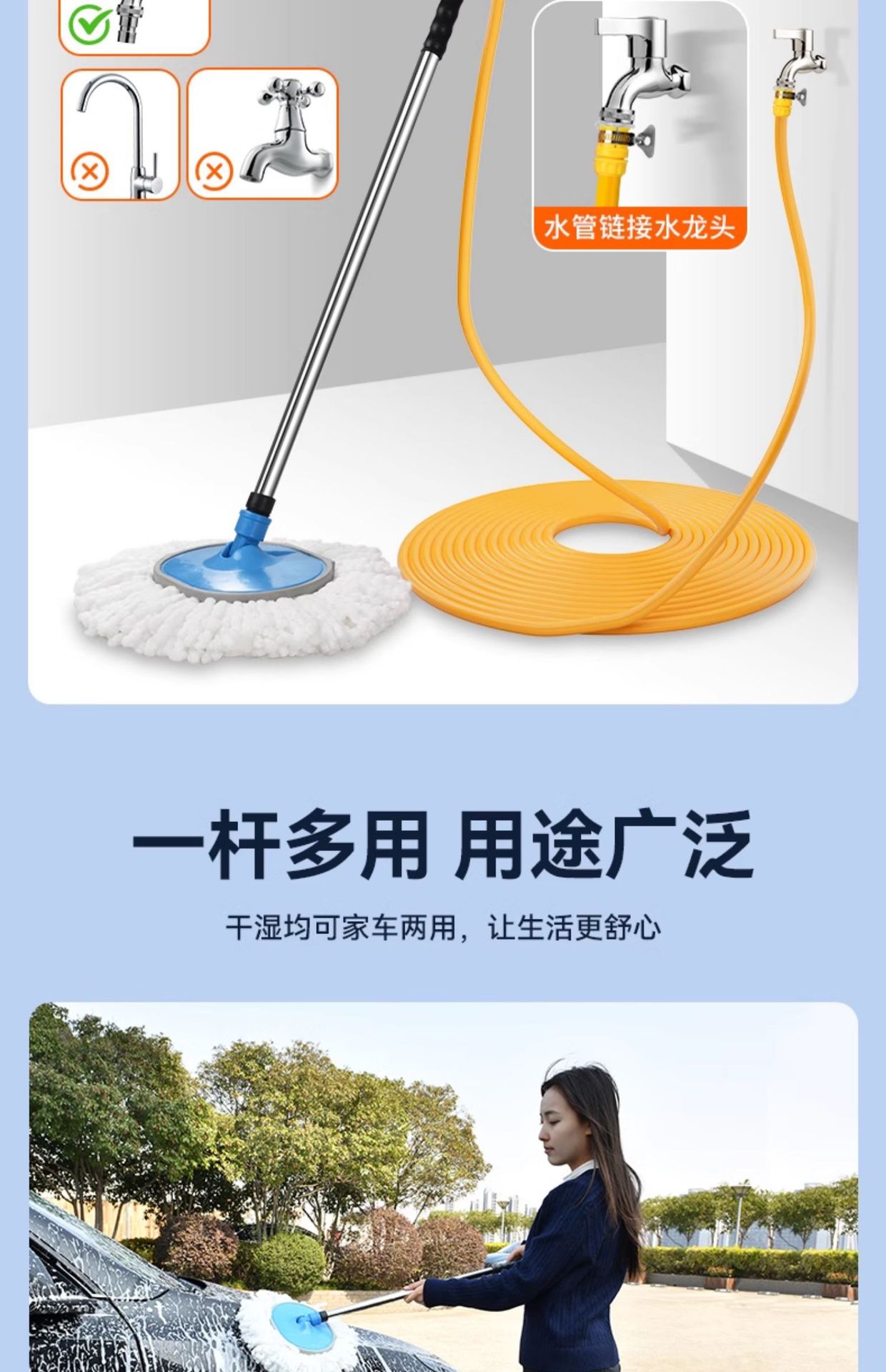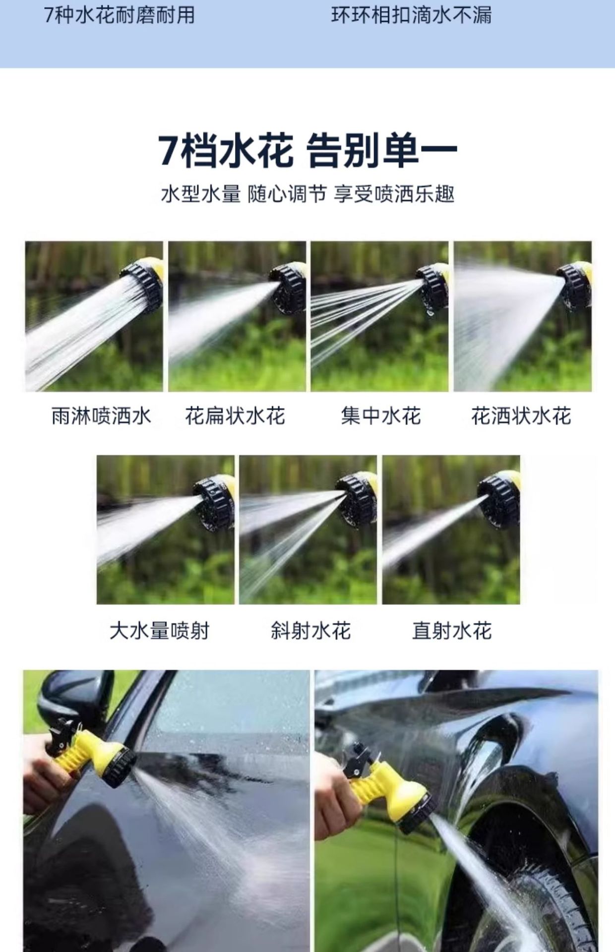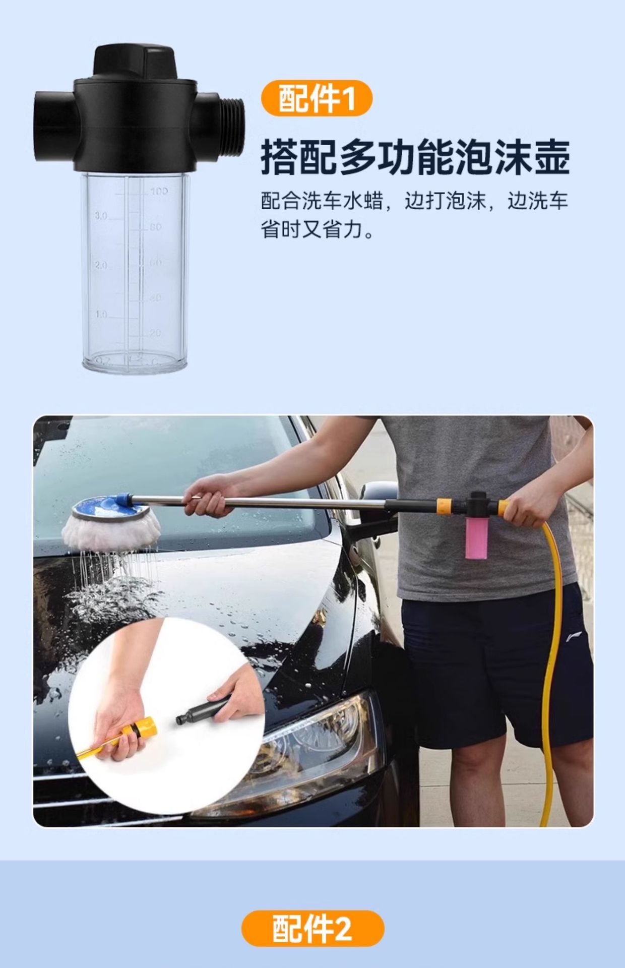 • [두꺼운 셔닐 물걸레] + 20m 물 파이프 + 퀵 커넥터 * 2 + 7단 물총 + 폼 포트
