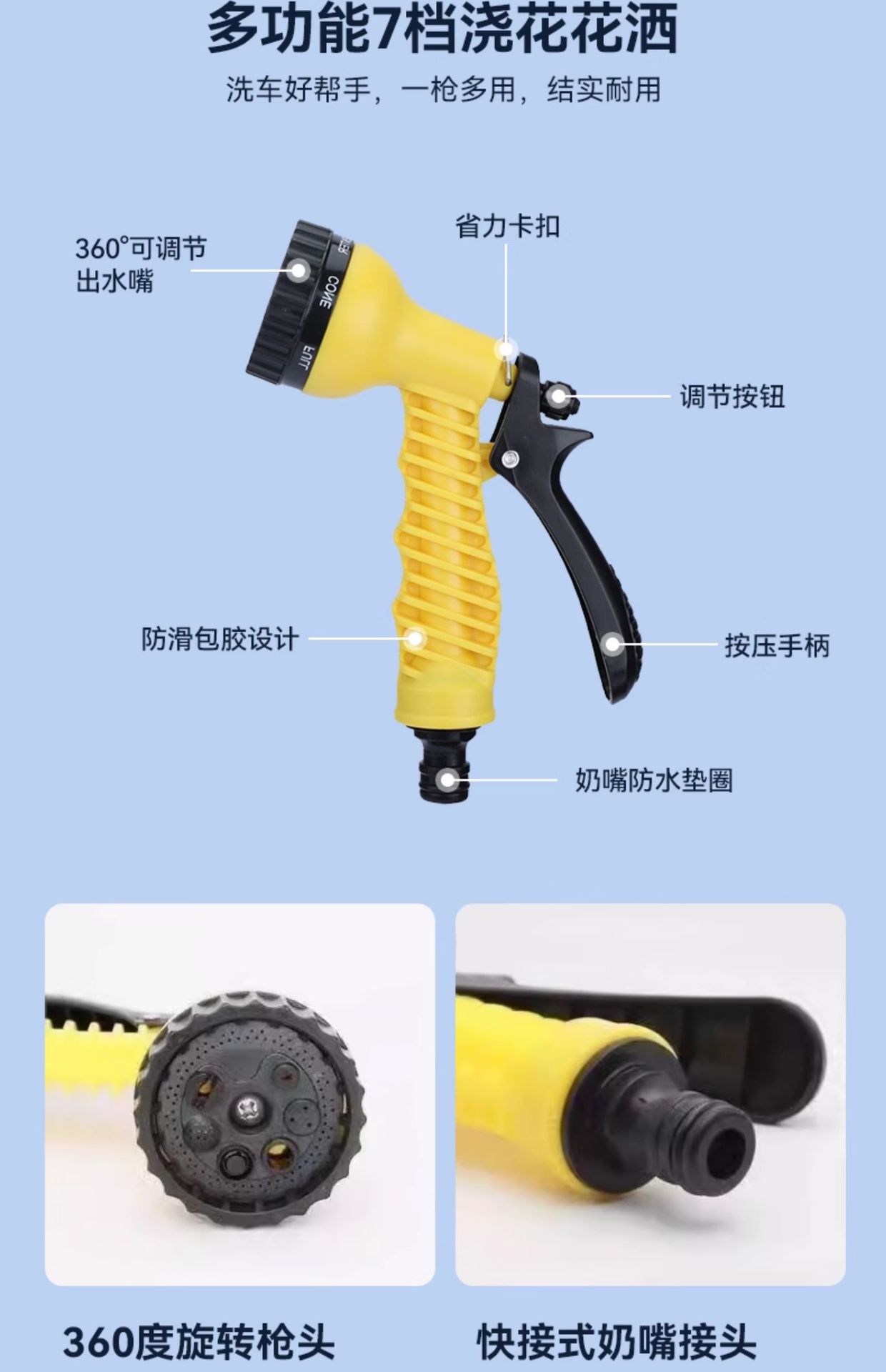 • [두꺼운 셔닐 물걸레] + 10m 물 파이프 + 퀵 커넥터 * 2 + 7단 물총 + 폼 포트