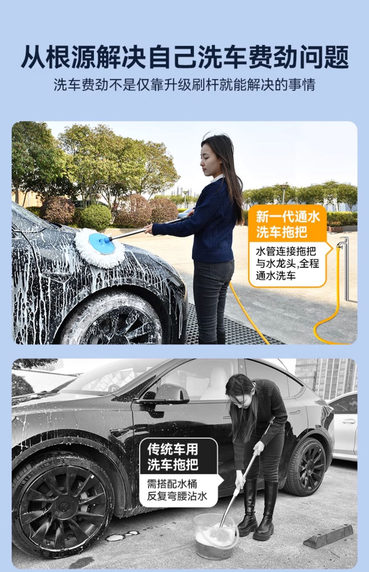 자동차를 손상시키지 않는 새로운 세차용 특수걸레, 물관이 달린 부드러운 모의 세차용 브러쉬, 세차용 물티슈, 세차용 청소도구스토어 가기