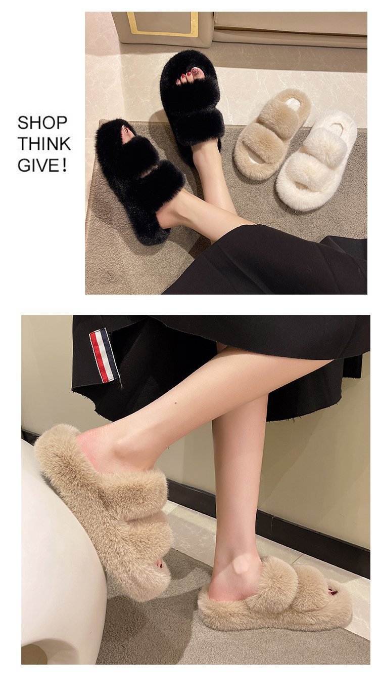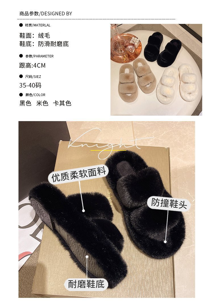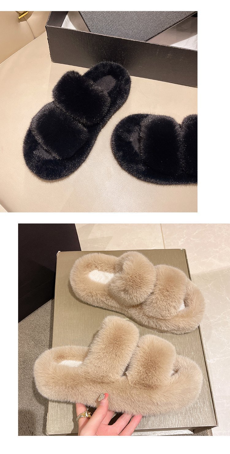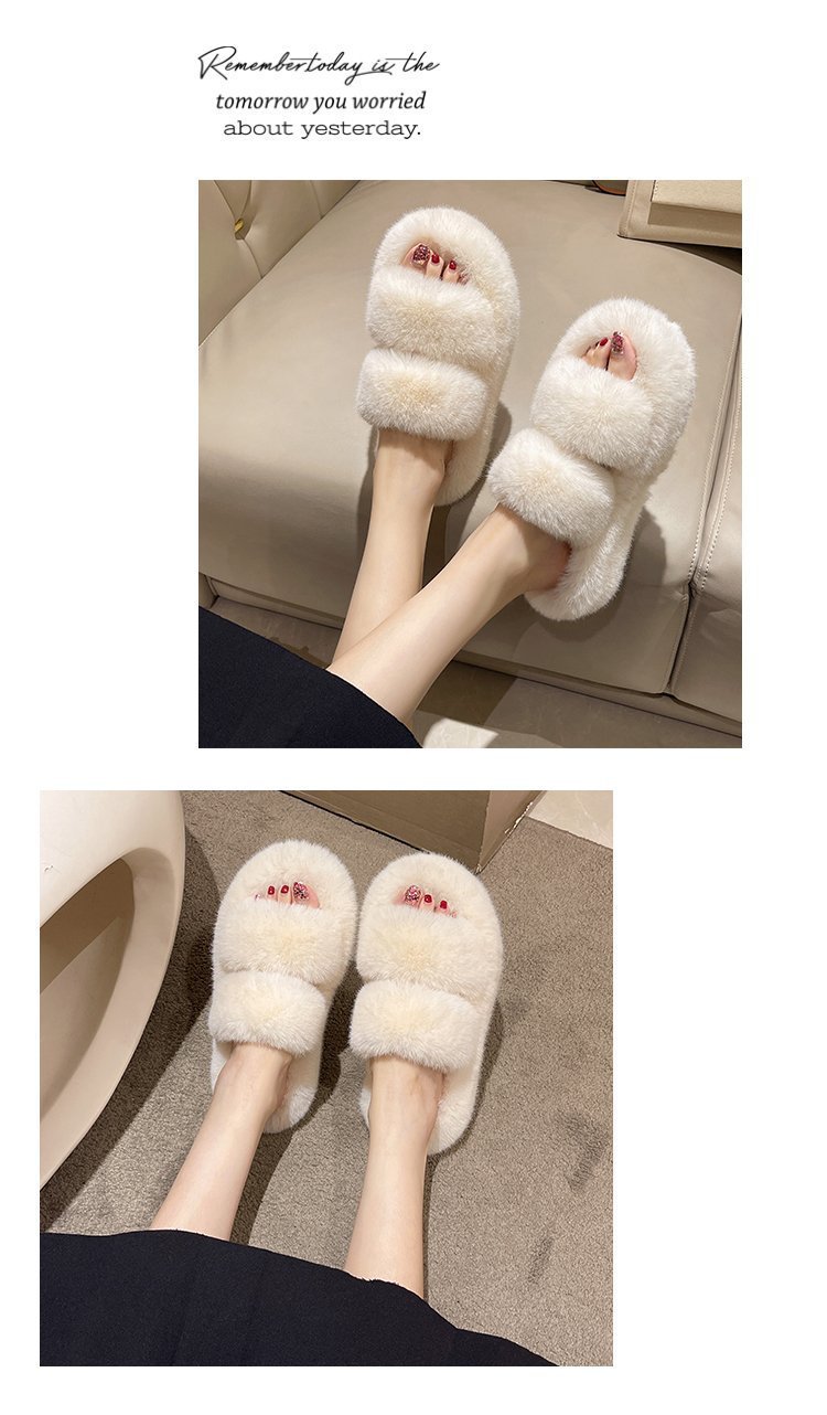 2023년 가을 겨울 신상 여성용 털 슬리퍼, 대형 사이즈 41, 캐주얼 두꺼운 밑창, 이중 스트랩, 집에서 신는 편안한 슬리퍼스토어 가기