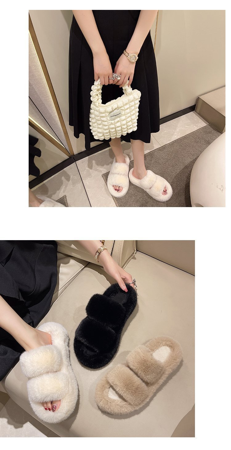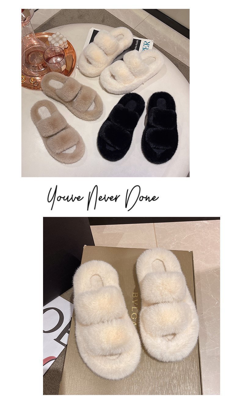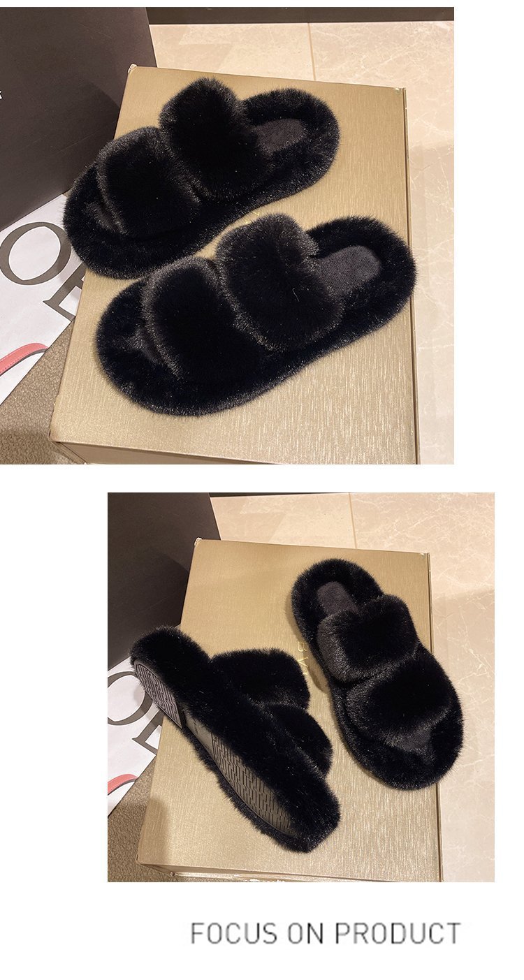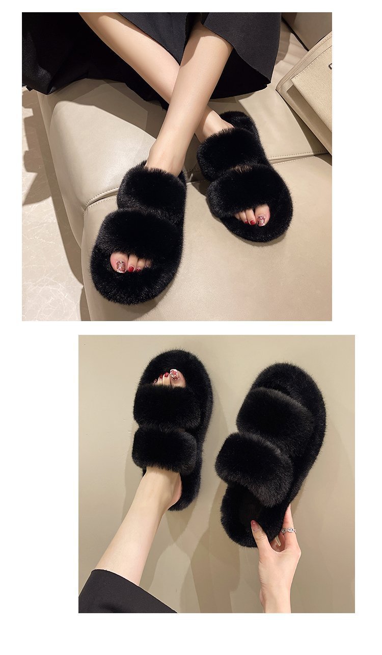 2023년 가을 겨울 신상 여성용 털 슬리퍼, 대형 사이즈 41, 캐주얼 두꺼운 밑창, 이중 스트랩, 집에서 신는 편안한 슬리퍼스토어 가기