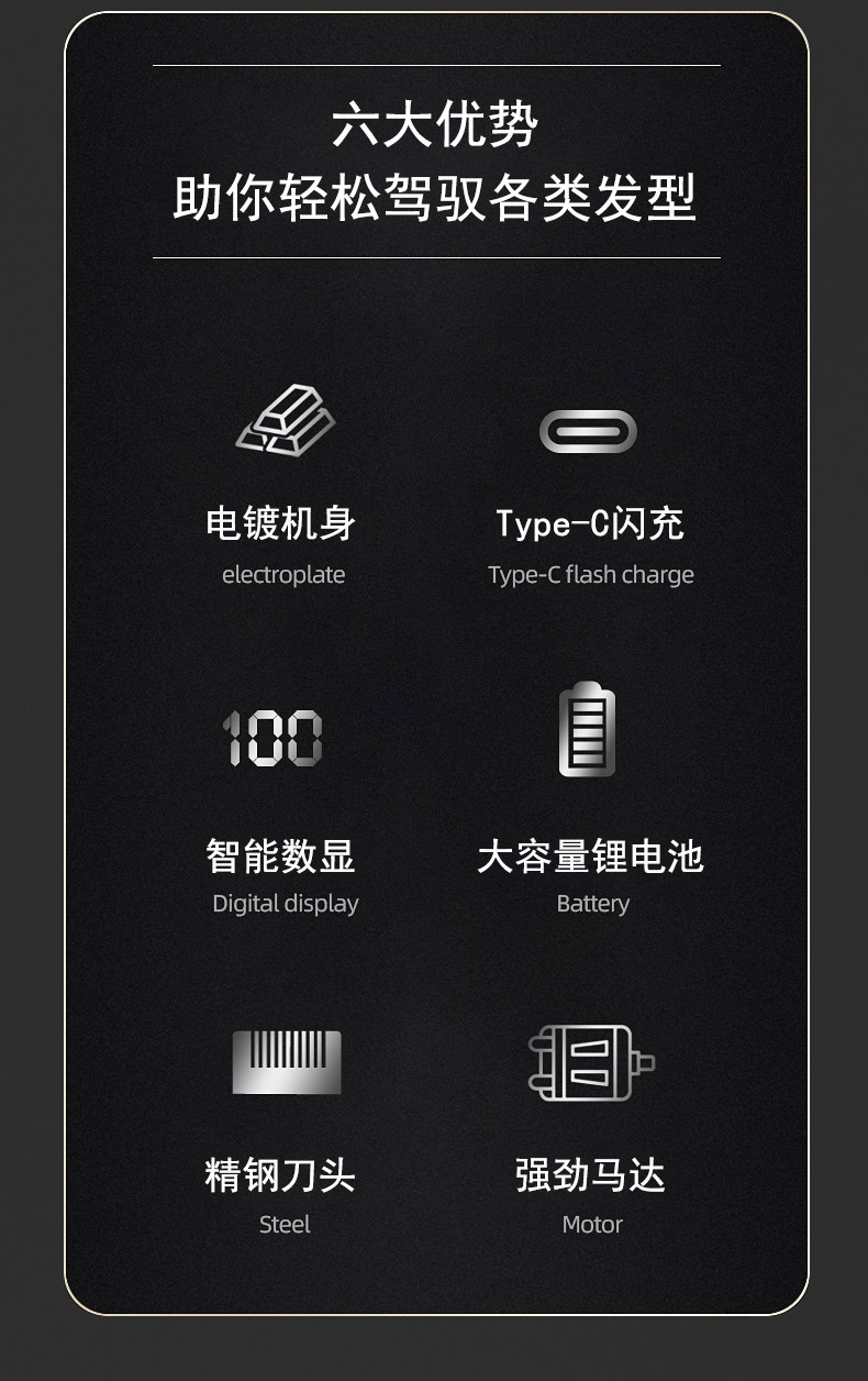 크로스보더 오일헤드 조각 미용실 전기 이발기 남성용 미용 면도기 디지털 디스플레이 면도기 전기 이발기