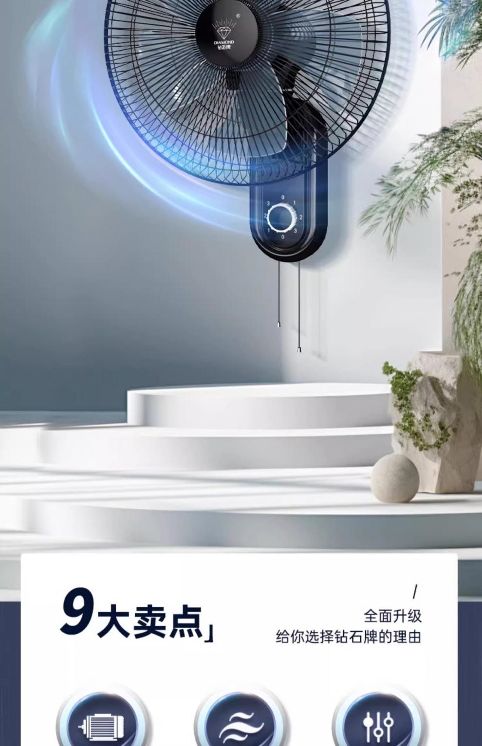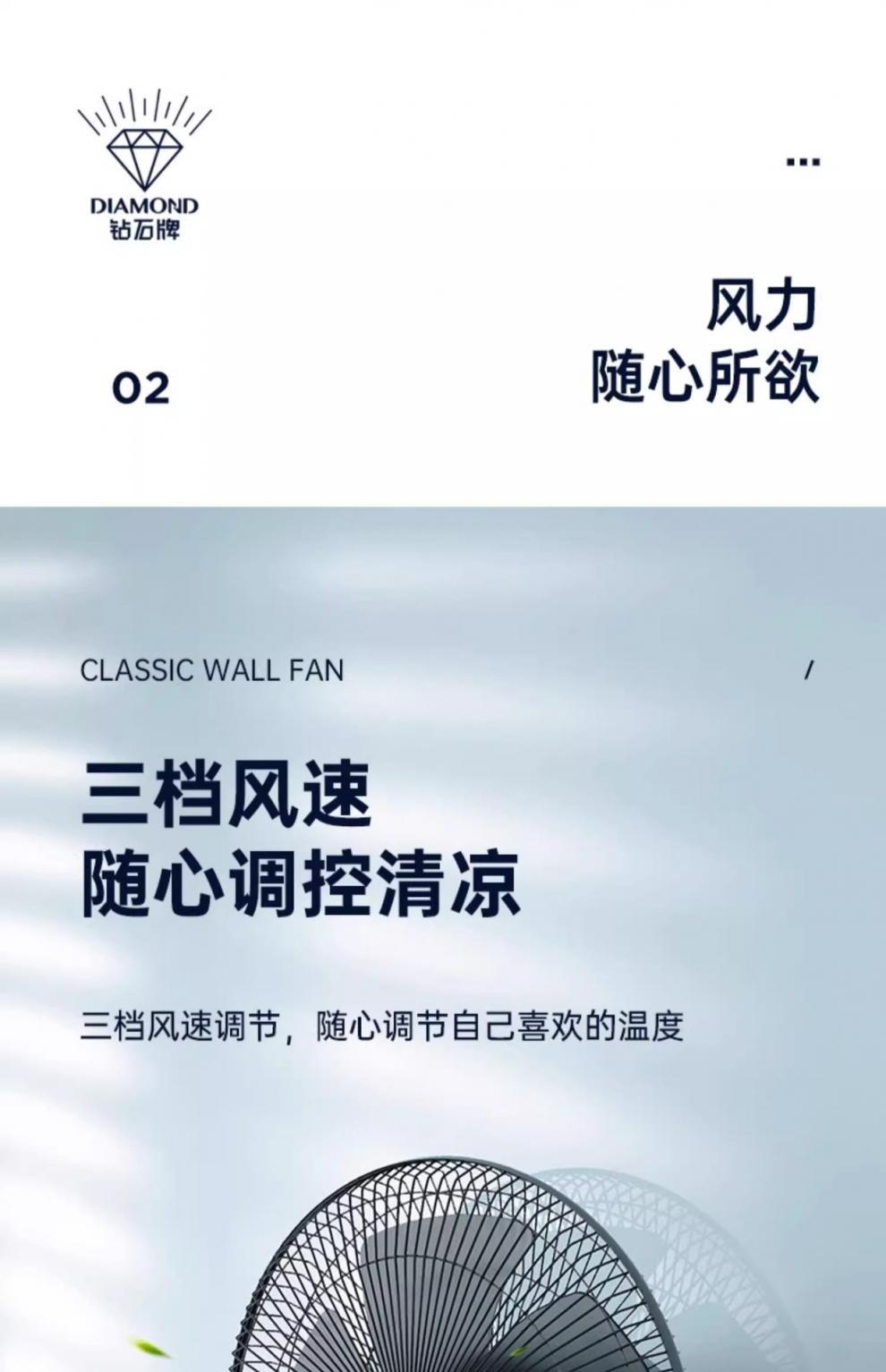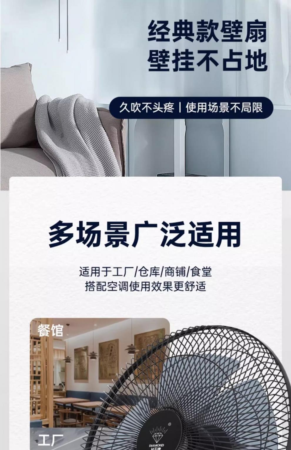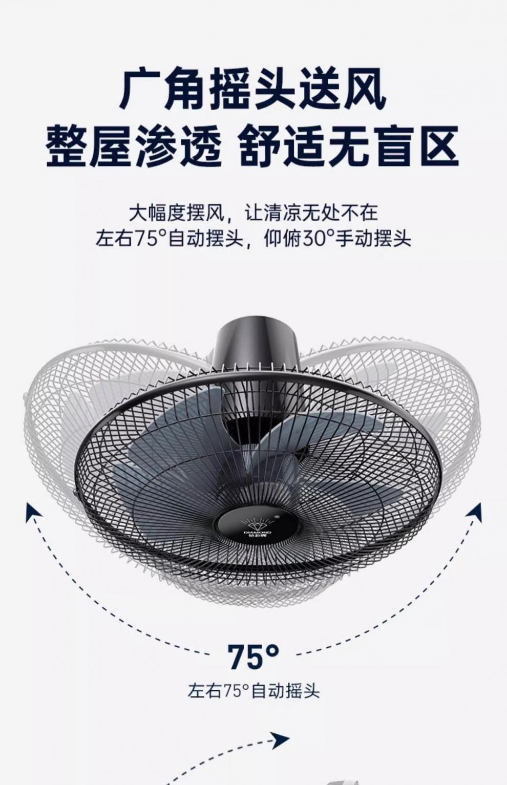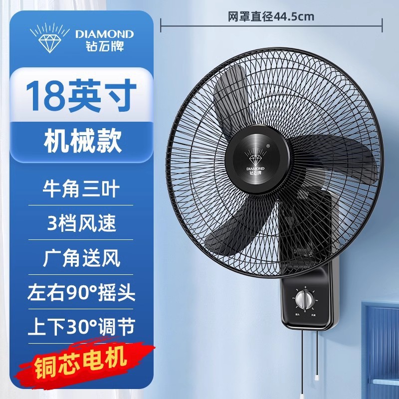 다이아몬드 벽 팬 벽에 장착 된 선풍기 머리 큰 바람 벽 팬을 흔드는 가벼운 소리 벽을 매달아 머리 가정용 벽의 세대스토어 가기