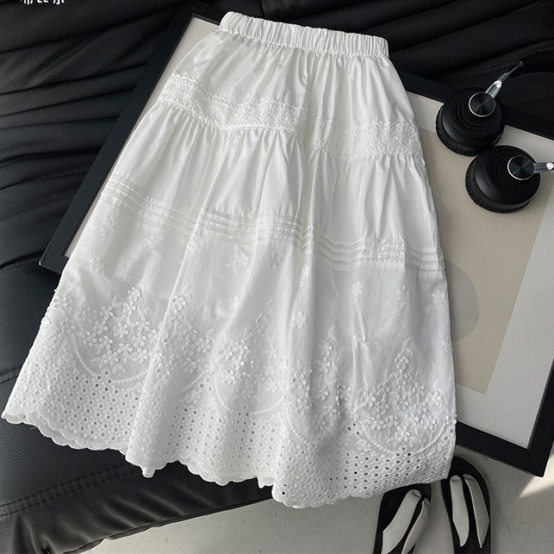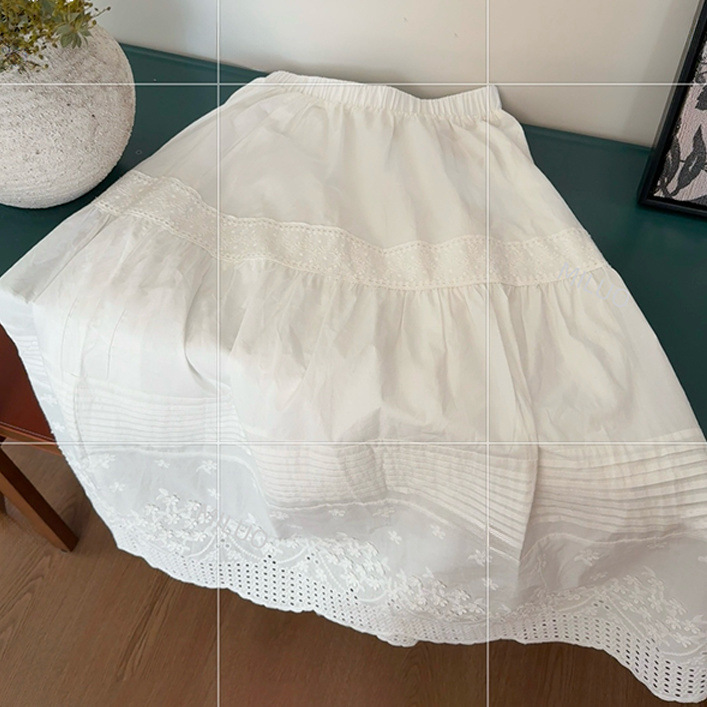 여자 여름 스커트 2025 새로운 스타일 어린이 스타일 흰색 수 놓은 레이스 스커트 큰 어린이 공주 스커트 다목적스토어 가기