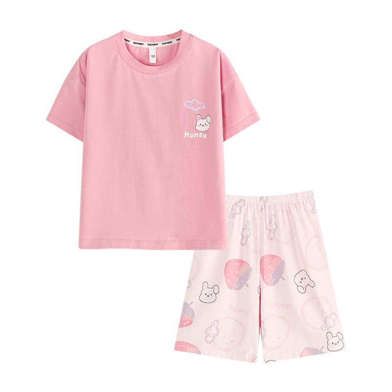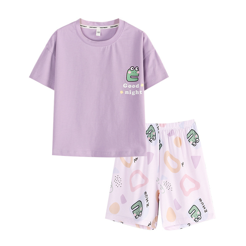 어린이 여름 반팔 양복 새로운 스타일 소년과 소녀 얇은 가정 옷 여름 아기 캐주얼 반바지 투피스 세트