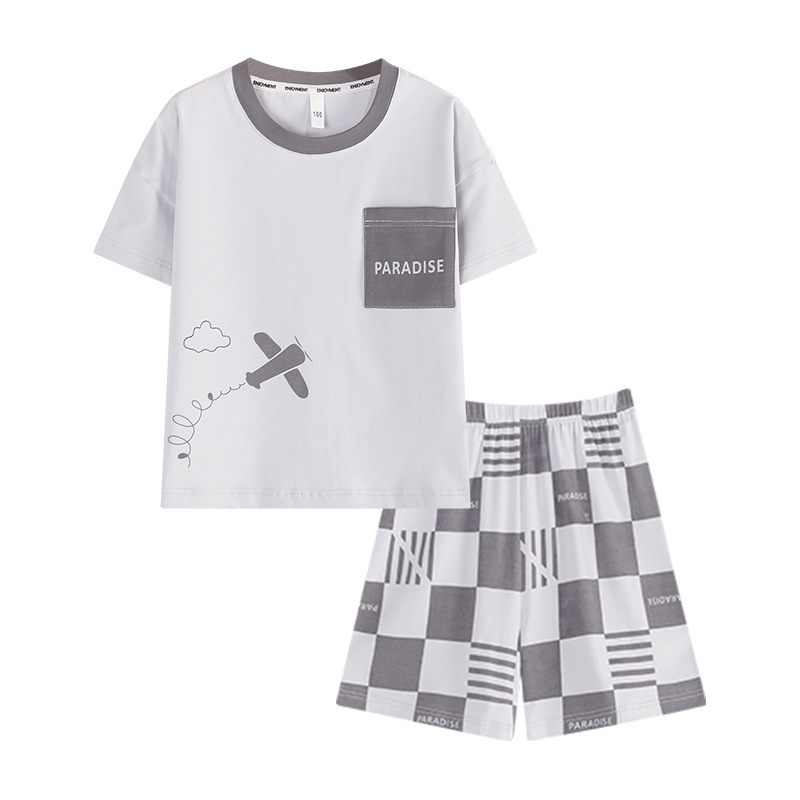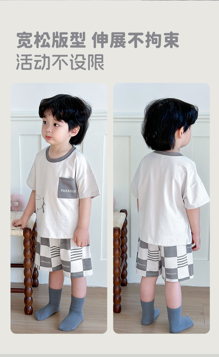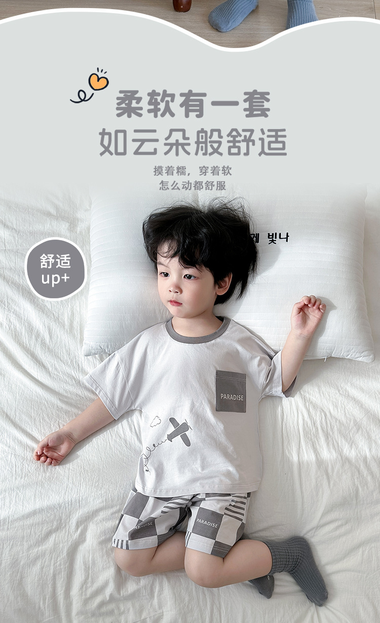 어린이 여름 반팔 양복 새로운 스타일 소년과 소녀 얇은 가정 옷 여름 아기 캐주얼 반바지 투피스 세트스토어 가기