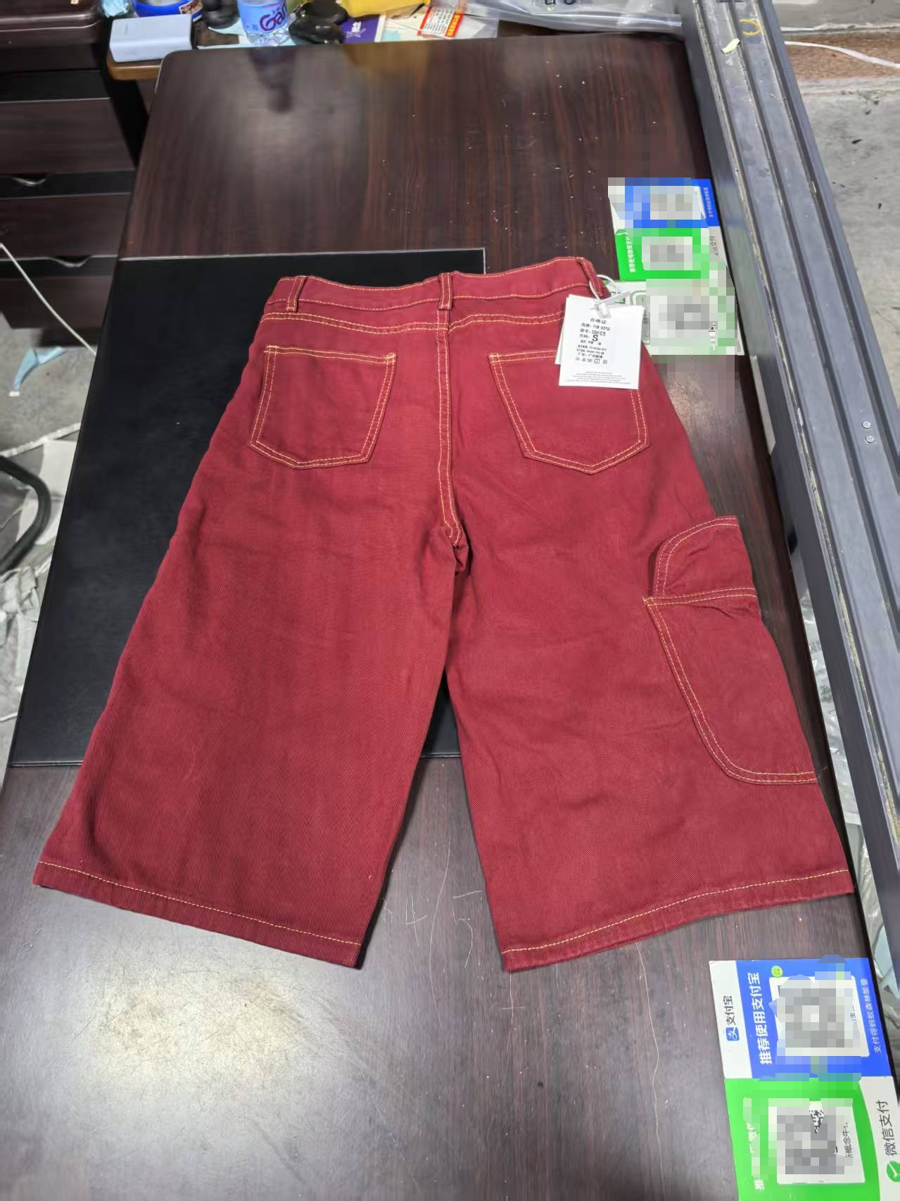 아메리칸 스타일 레트로 레드 카프리 팬츠 청바지 남성 여름 넓은 다리 느슨한 디자인 하이 스트리트 오픈 라인 툴링 청바지스토어 가기