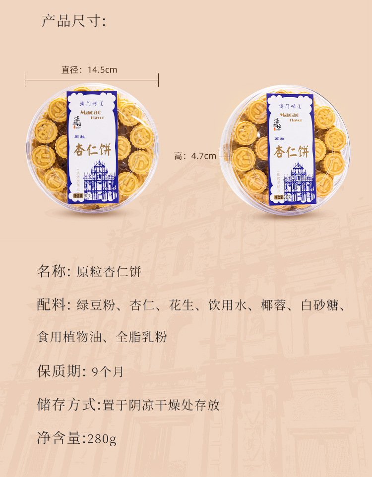 마카오 하오룬팡 아몬드 케이크 280g/24박스 구식 과자 캐주얼 스낵 애프터눈 티 스낵 도매