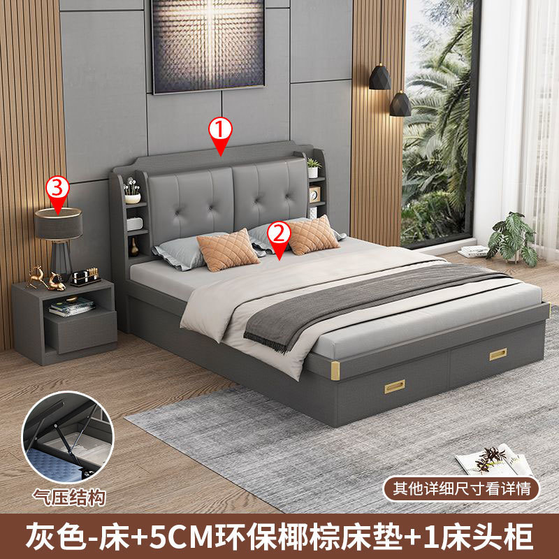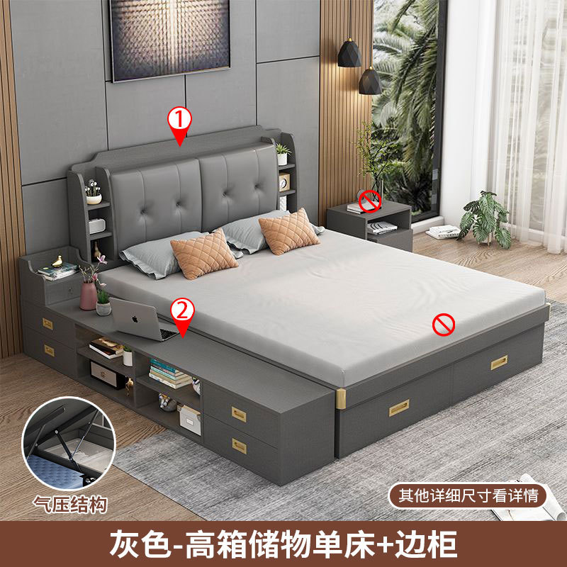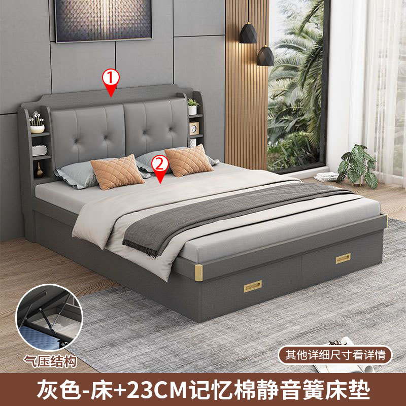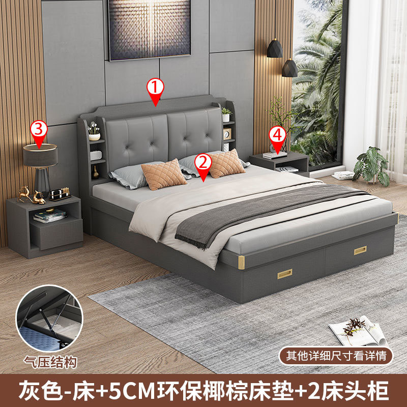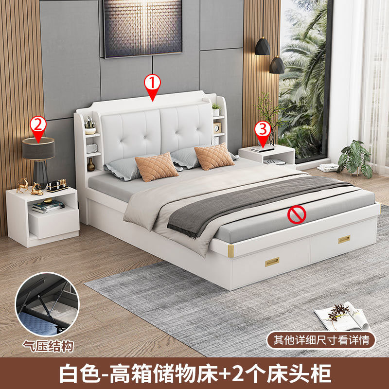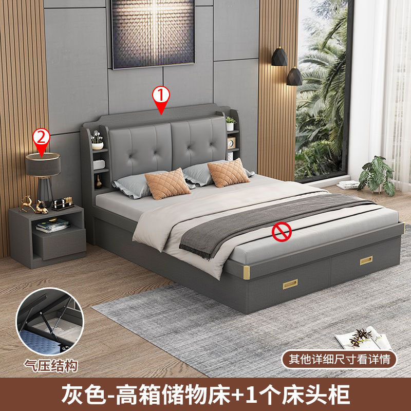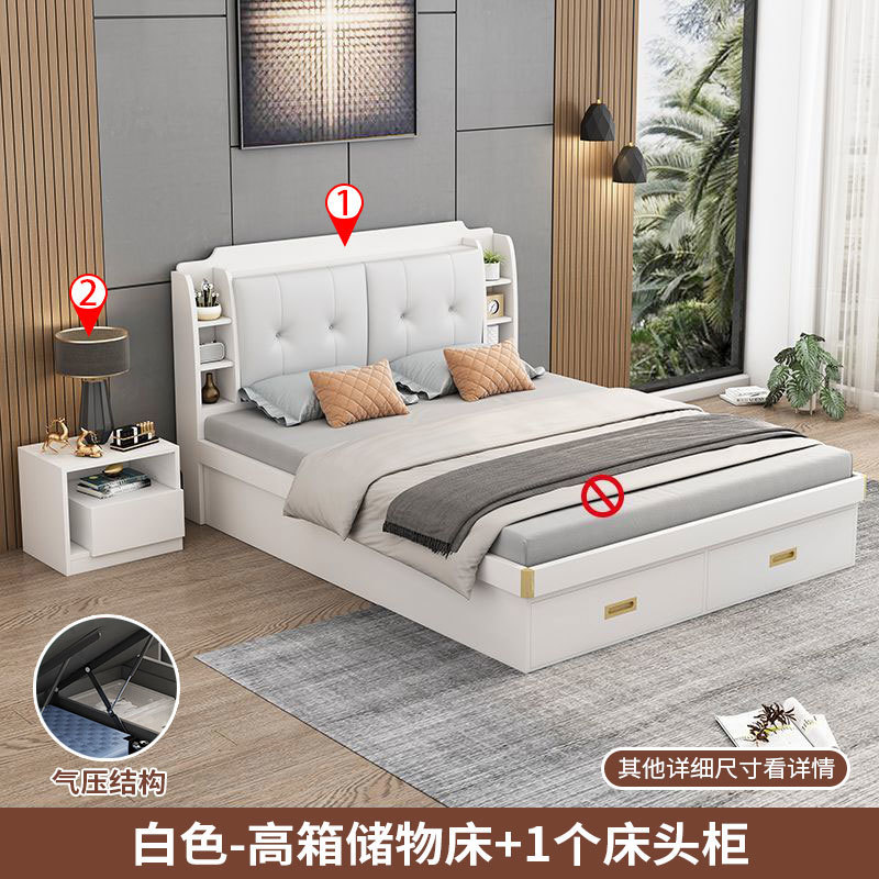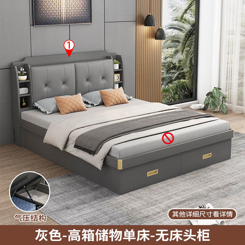 라이트 럭셔리 모던 공압 하이박스 수납 침대 1.8m 모던 심플 마스터 침실 침대 1.5 소형 아파트 1.2m 더블