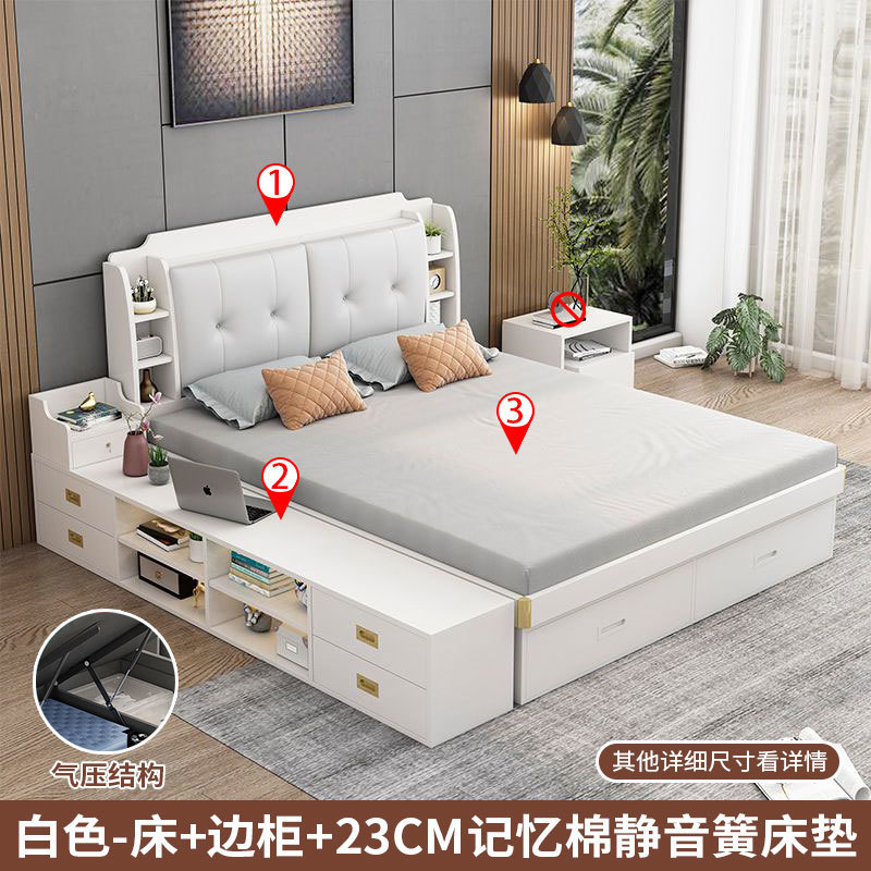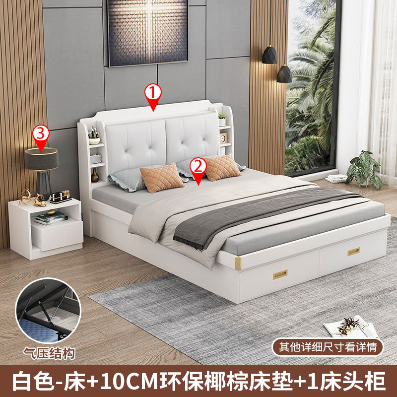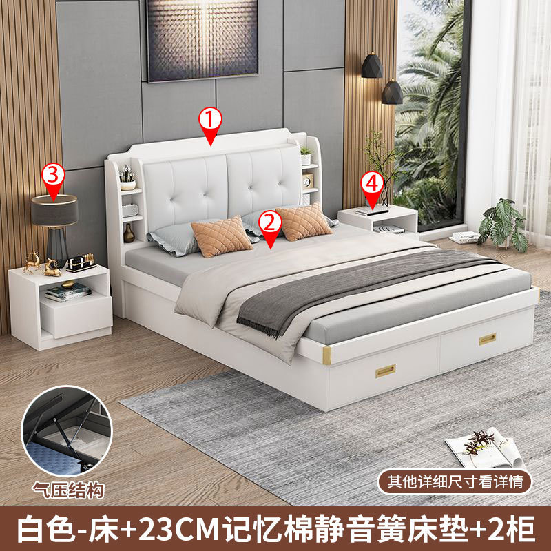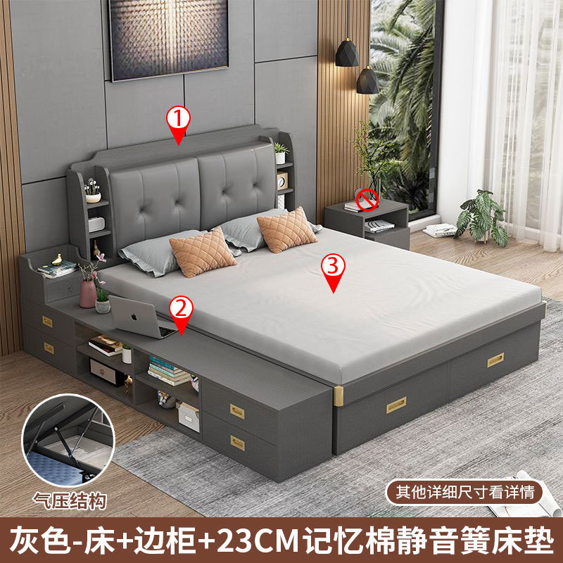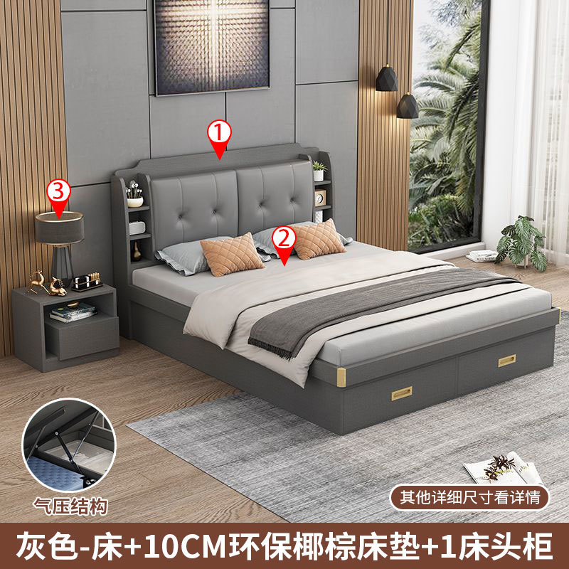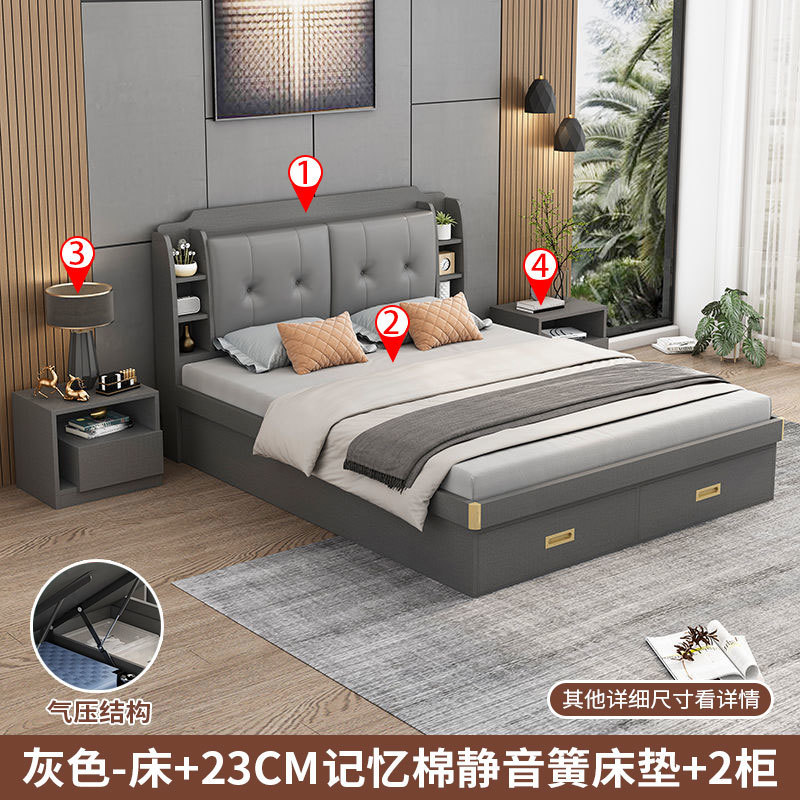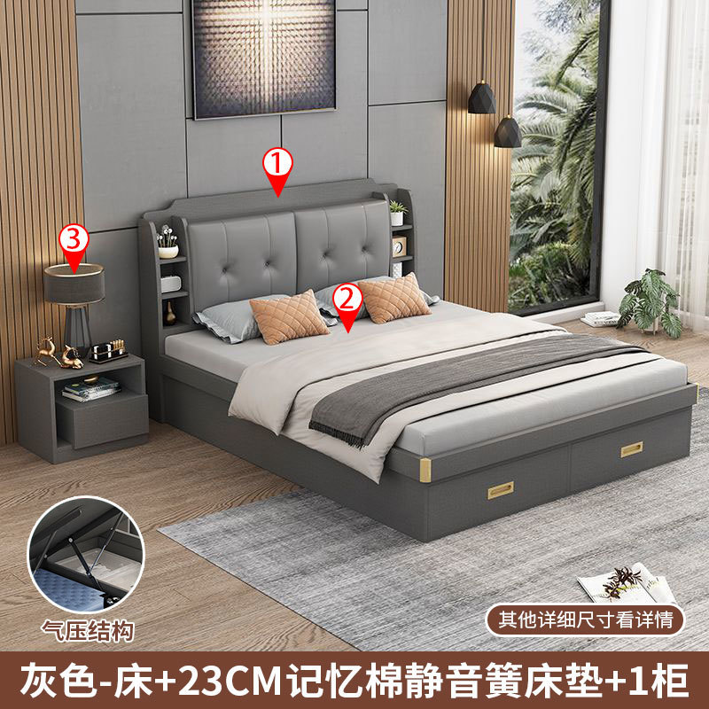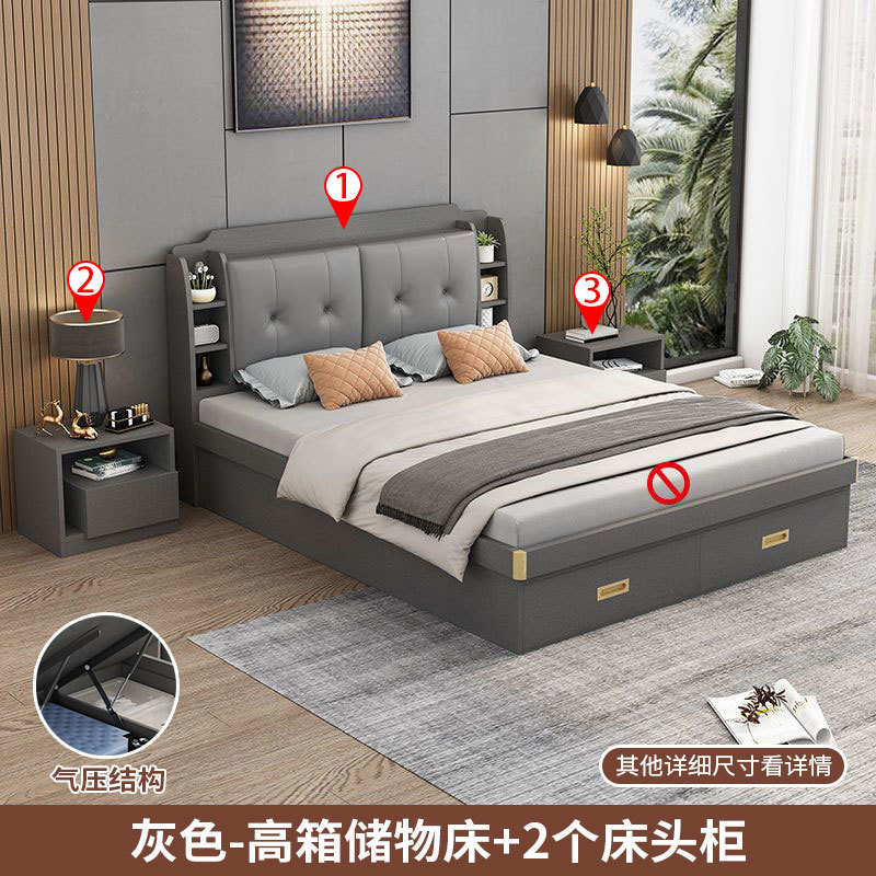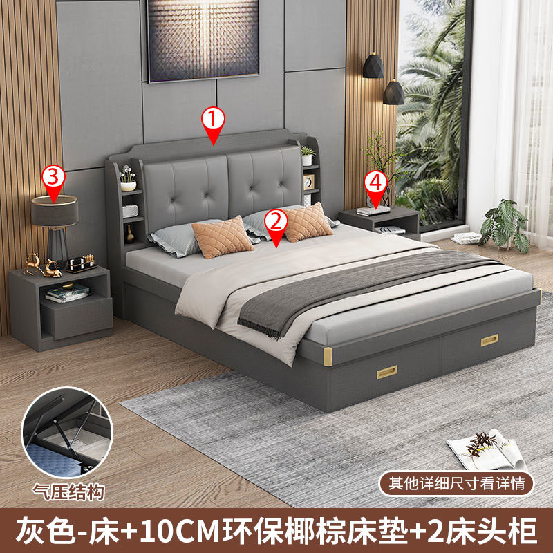 라이트 럭셔리 모던 공압 하이박스 수납 침대 1.8m 모던 심플 마스터 침실 침대 1.5 소형 아파트 1.2m 더블