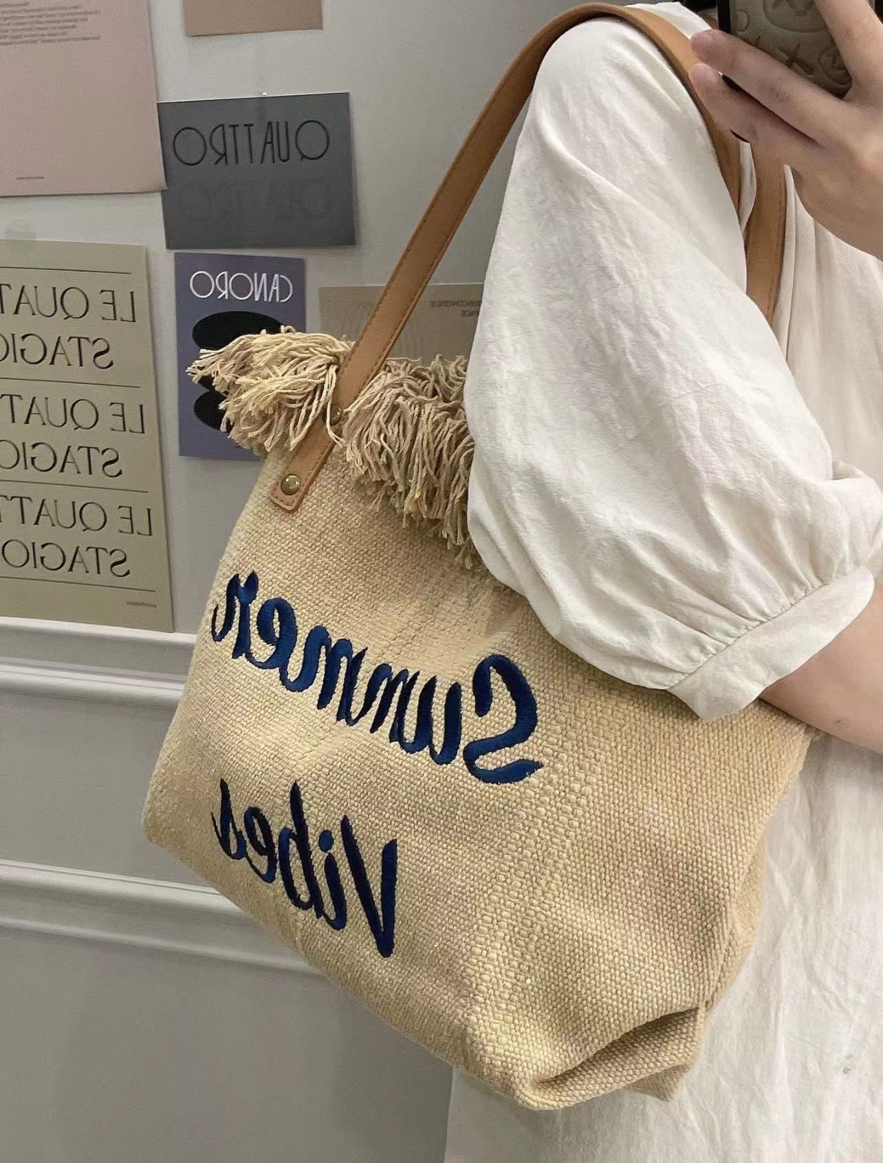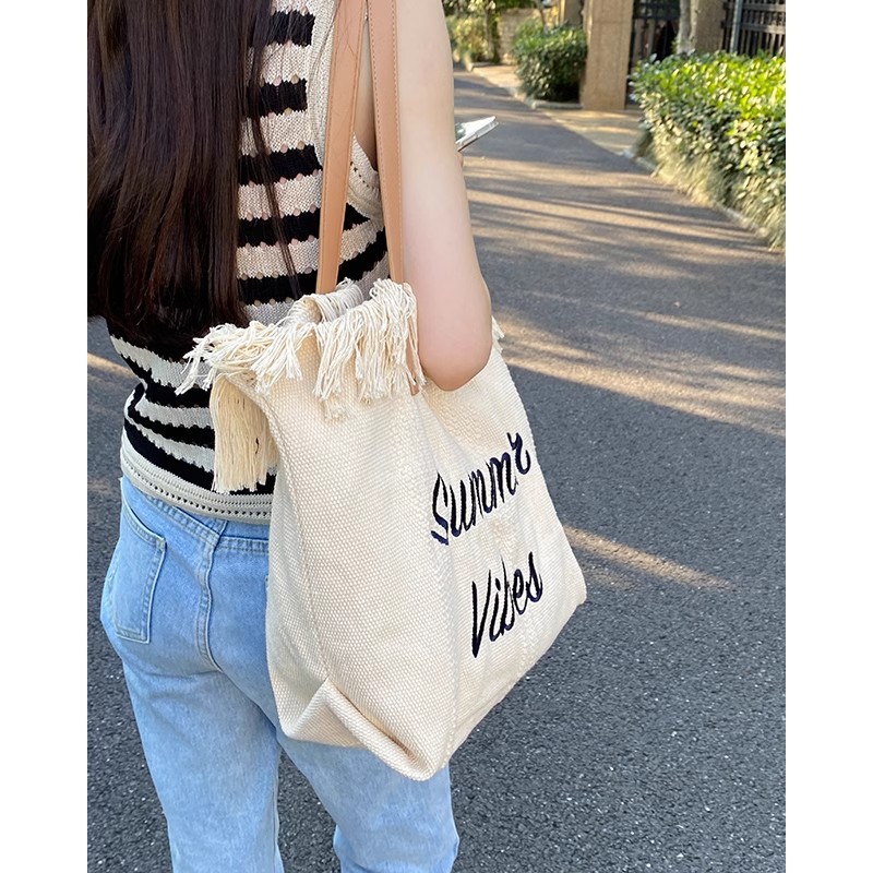 2025 요정 가방 여성의 새로운 한국 술 휴대용 쇼핑백 빈티지 자수 토트 백 숄더 백스토어 가기