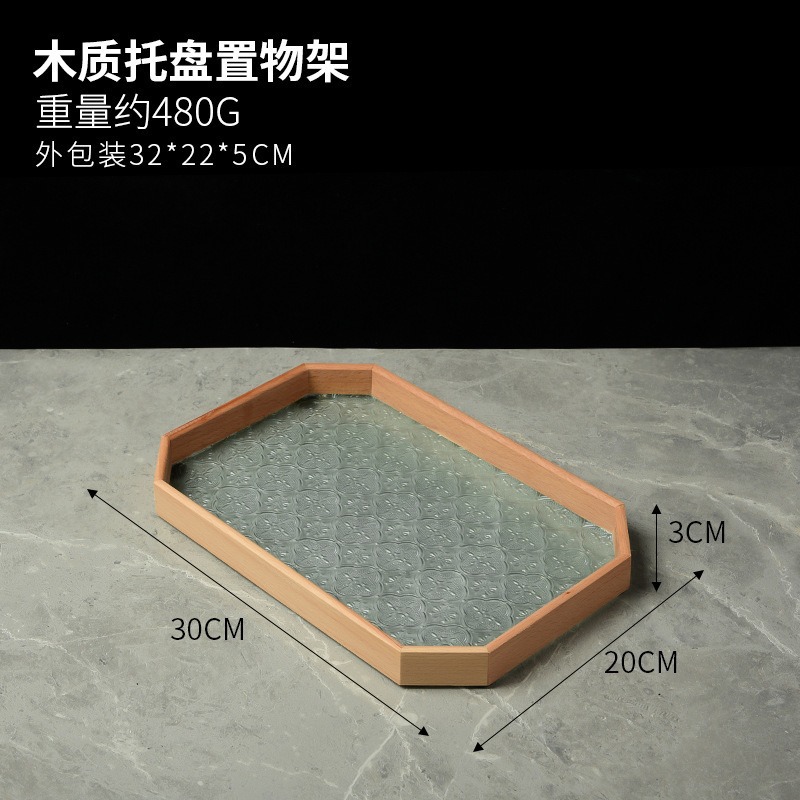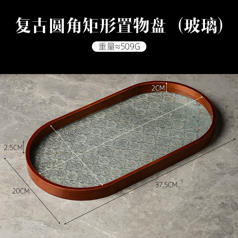 가정용 라이트 럭셔리 베고니아 양각 유리 트레이 호두 색상 직사각형 나무 차 트레이 두꺼운 차 컵 케이스스토어 가기