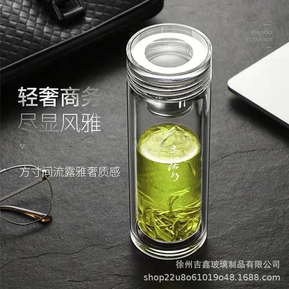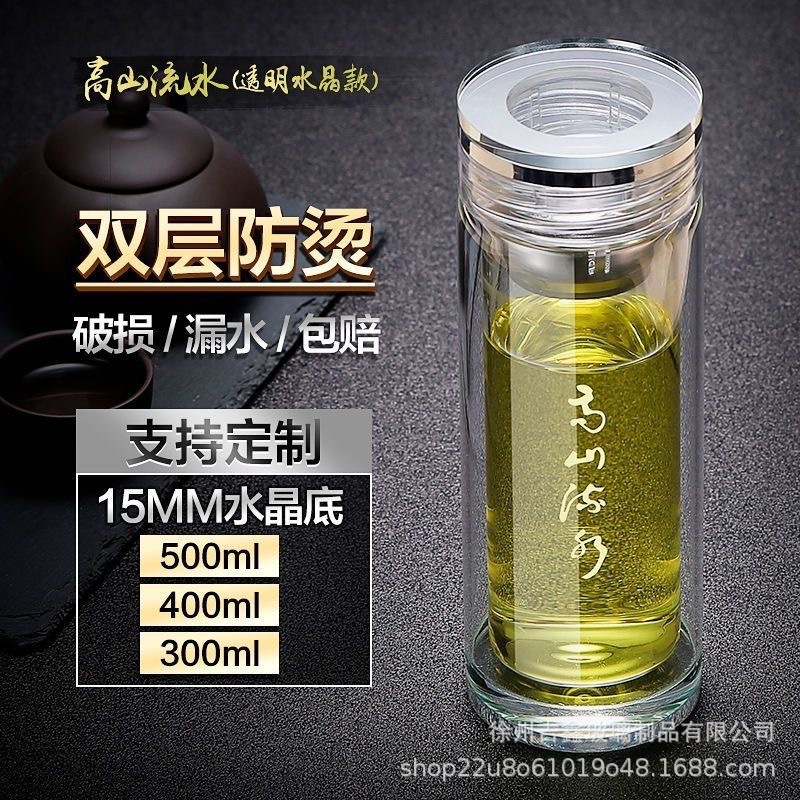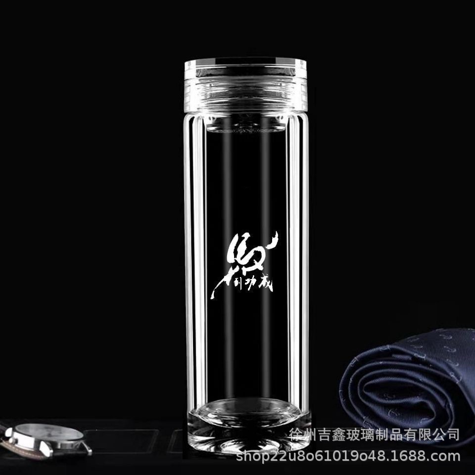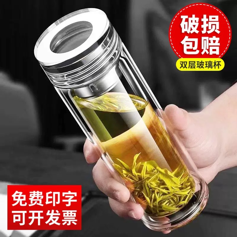 고급 이중층 유리, 내열성, 화상 방지 및 단열, 남성용 및 여성용 물컵, 대용량, 로고가 인쇄된 휴대용 찻잔스토어 가기