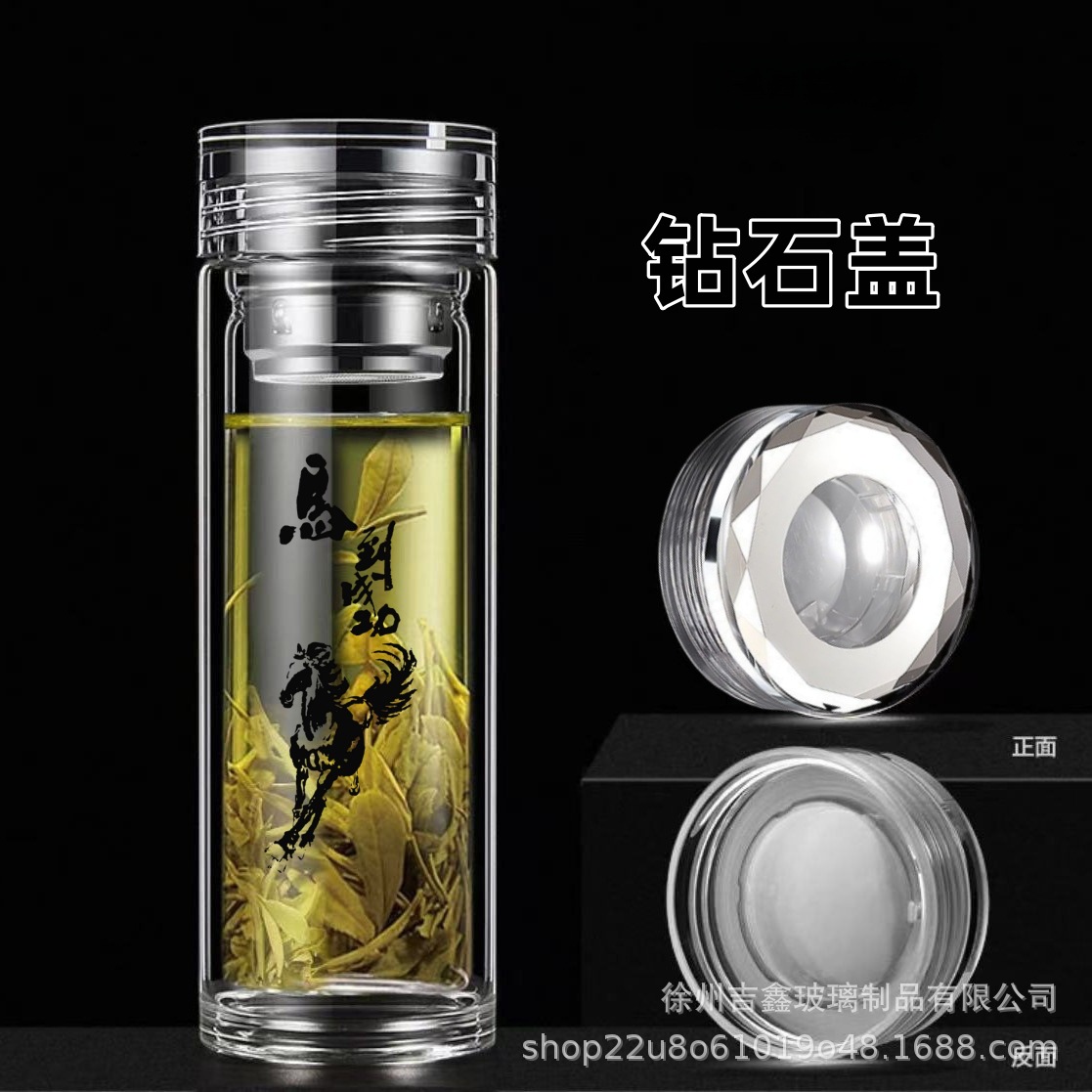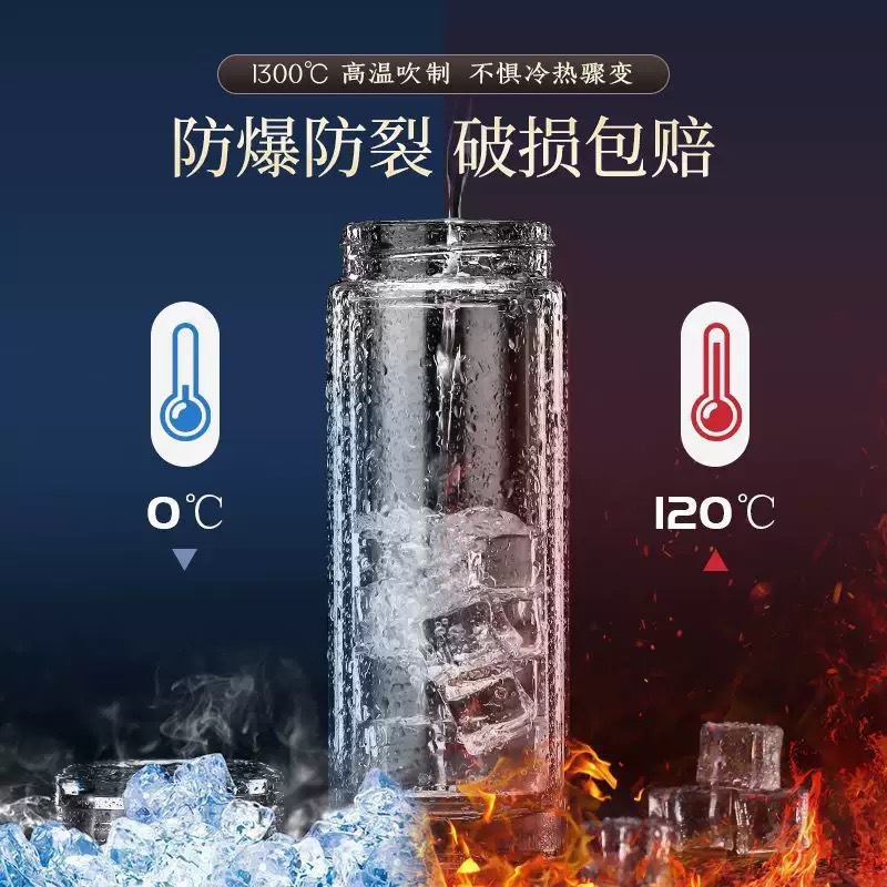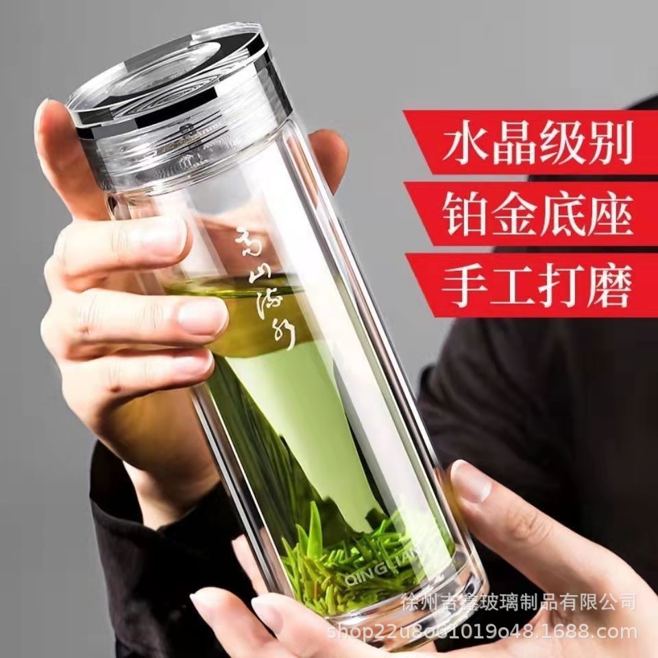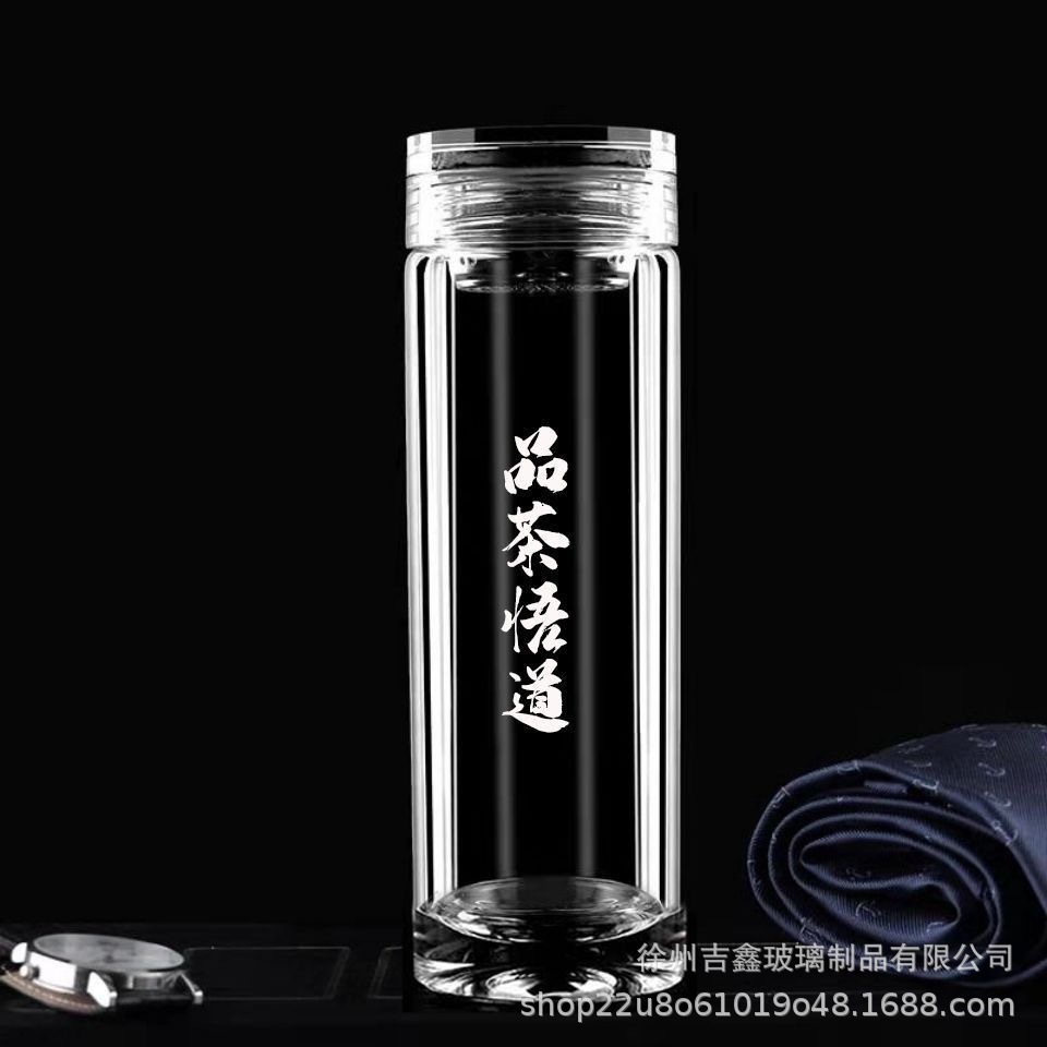 고급 이중층 유리, 내열성, 화상 방지 및 단열, 남성용 및 여성용 물컵, 대용량, 로고가 인쇄된 휴대용 찻잔스토어 가기