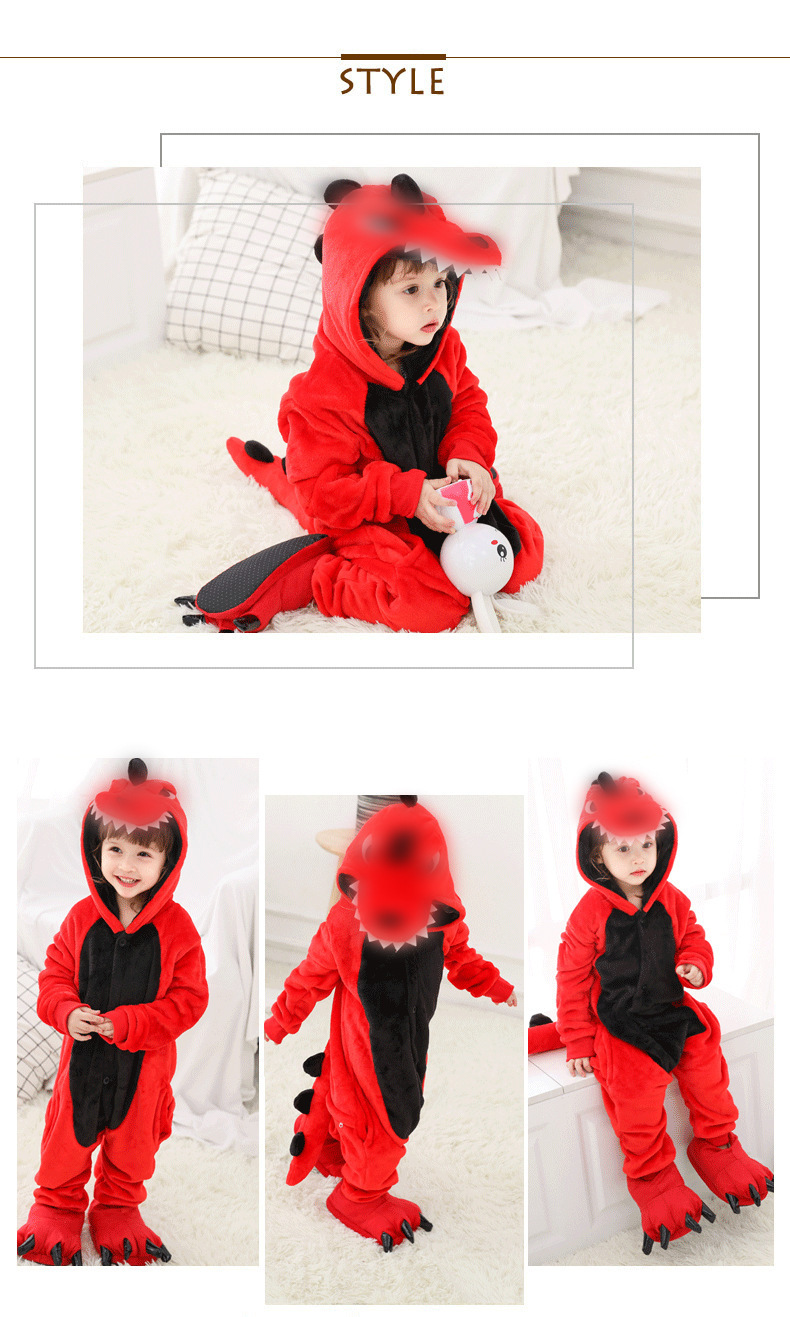 성인과 어린이를 위한 크로스보더 플란넬 공룡 원피스 잠옷, 동물 공룡 원피스 잠옷, 부모-자식 홈 퍼포먼스 의류스토어 가기