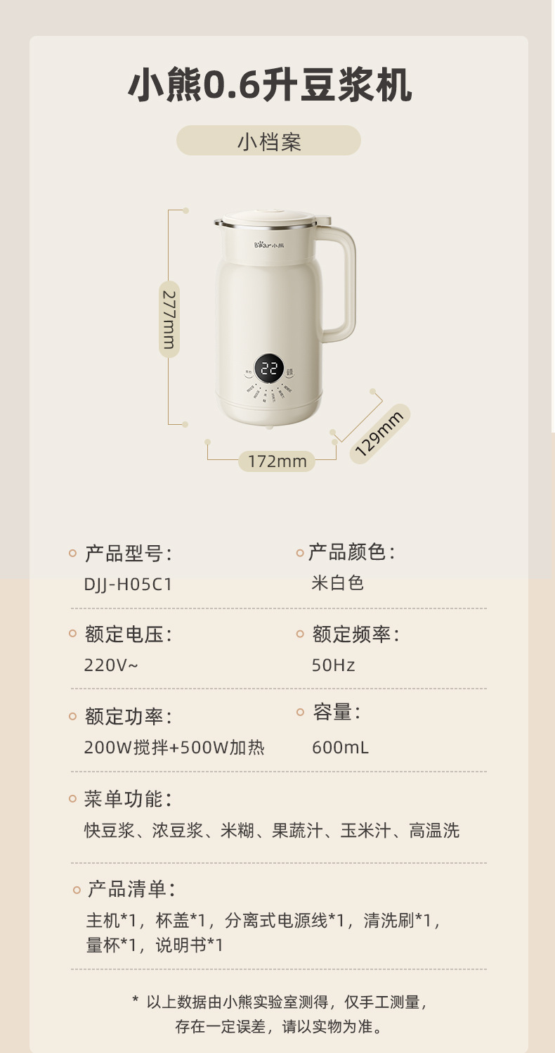 작은 곰 두유 제조기 DJJ-H05C1 가정용 소형 쌀가루 제조기 304 내부 다기능 필터 불필요스토어 가기