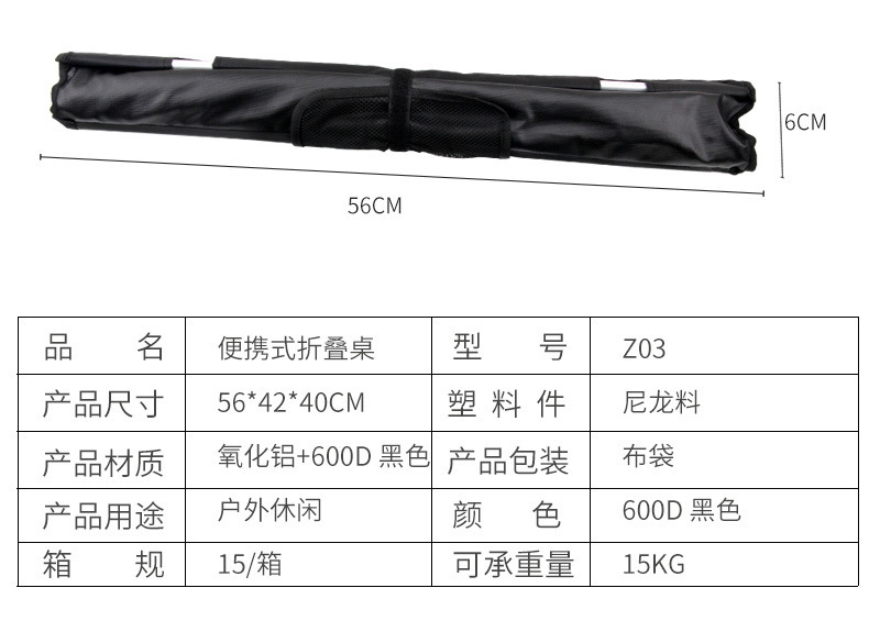 새로운 야외 접이식 테이블 블랙 캠핑 패브릭 테이블 휴대용 피크닉 테이블 600D 초경량 접이식 테이블 캠핑 테이블