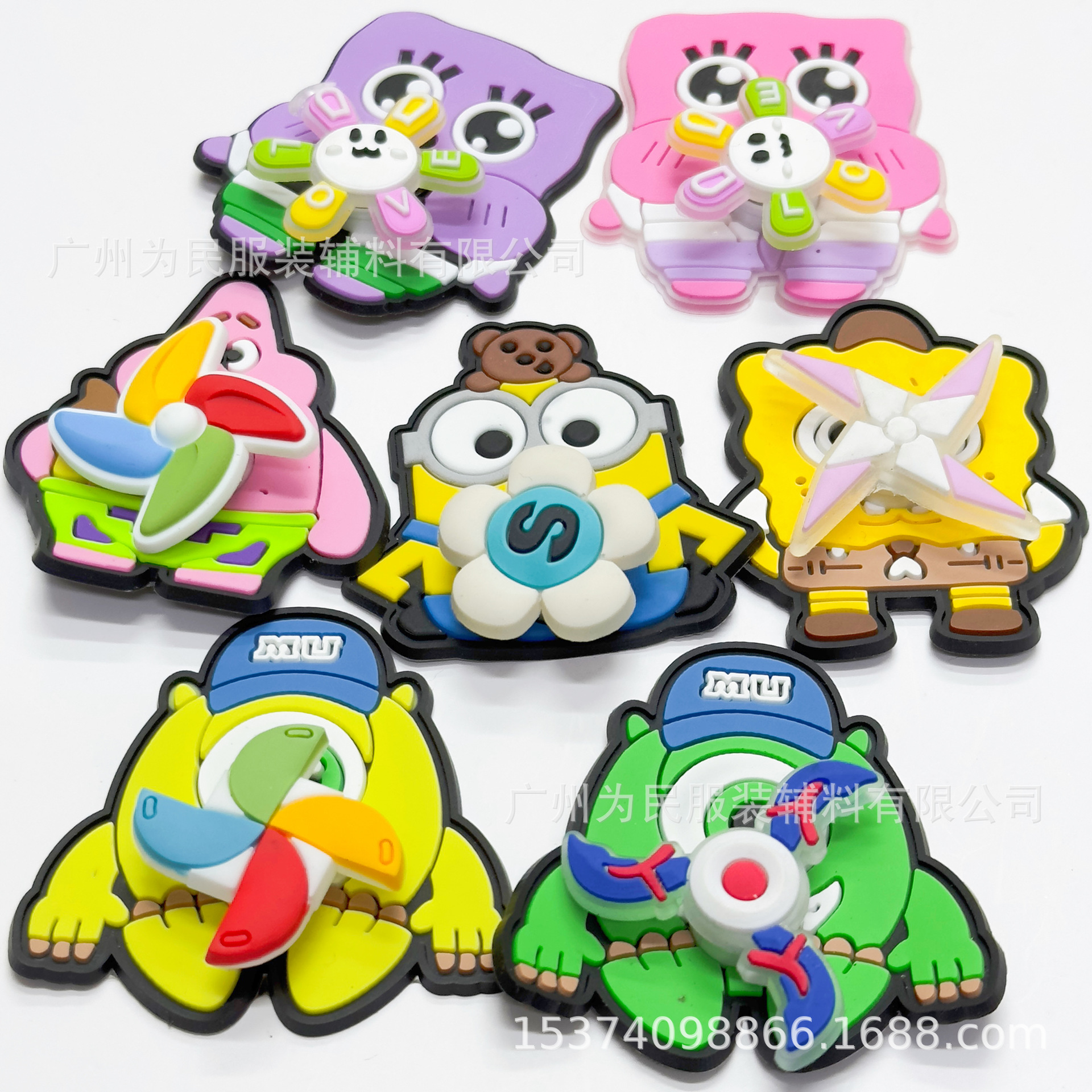 샘플을 받아보세요: 신제품 미니언즈 어린이 만화 플라스틱 라벨, 부드러운 고무 스탬프, 해바라기 회전 풍차 장난감스토어 가기