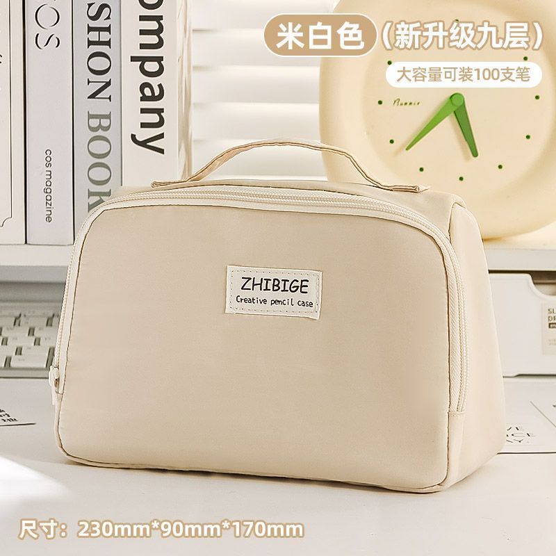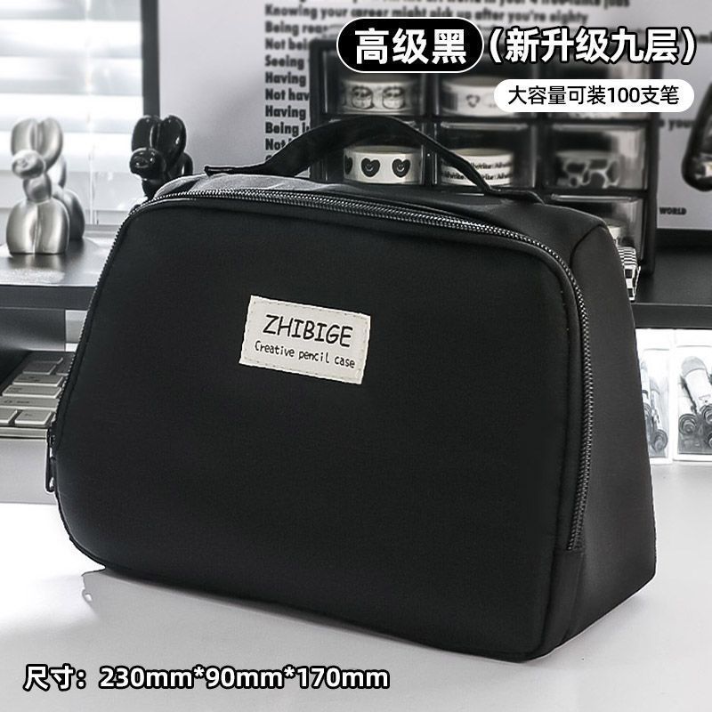 고급스러운 대용량 필통, 검정색 심플 일본 문구 상자, 학생 문구 가방 수납 가방, 화장품 가방