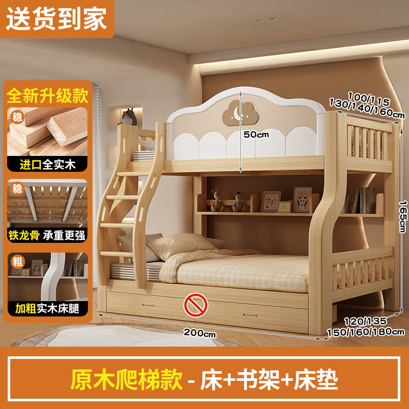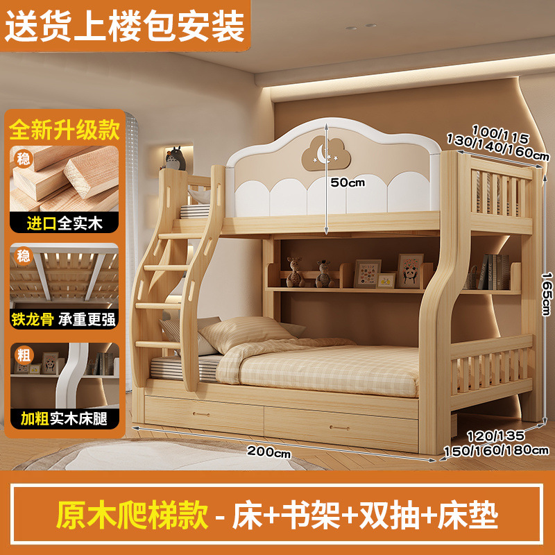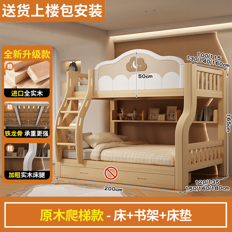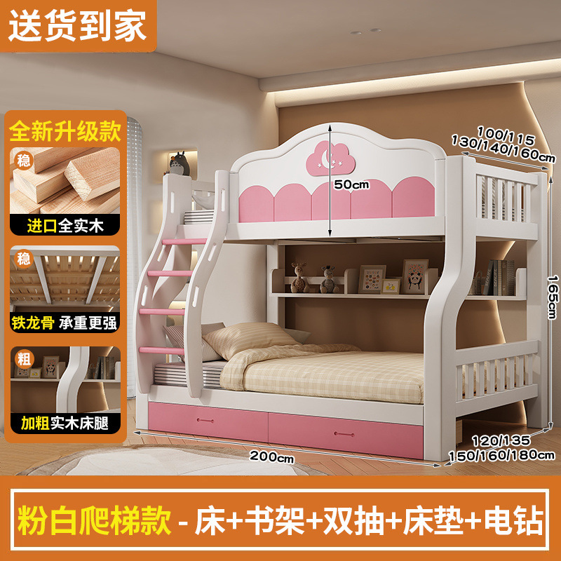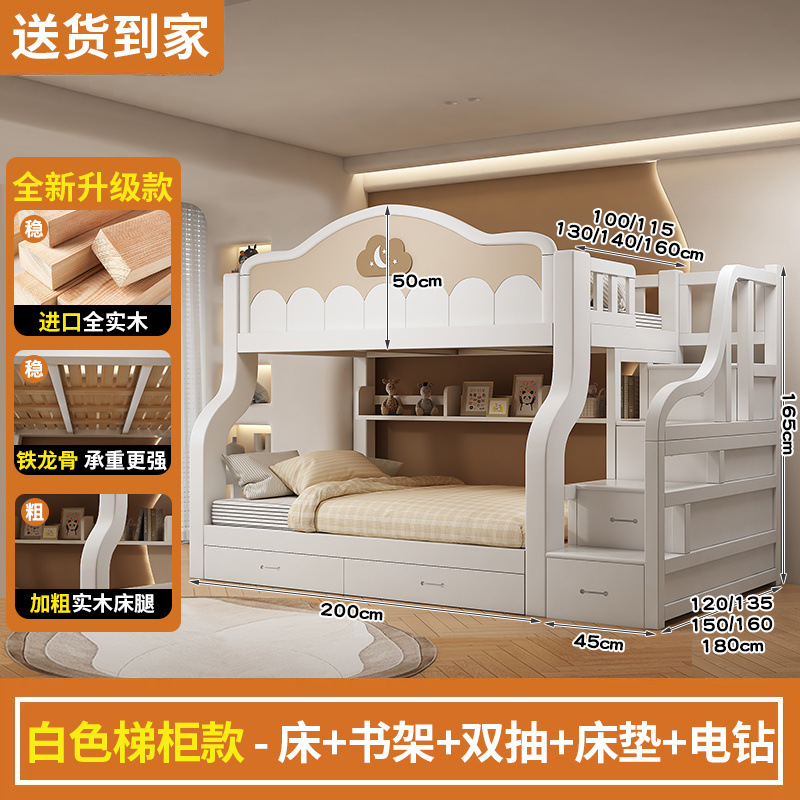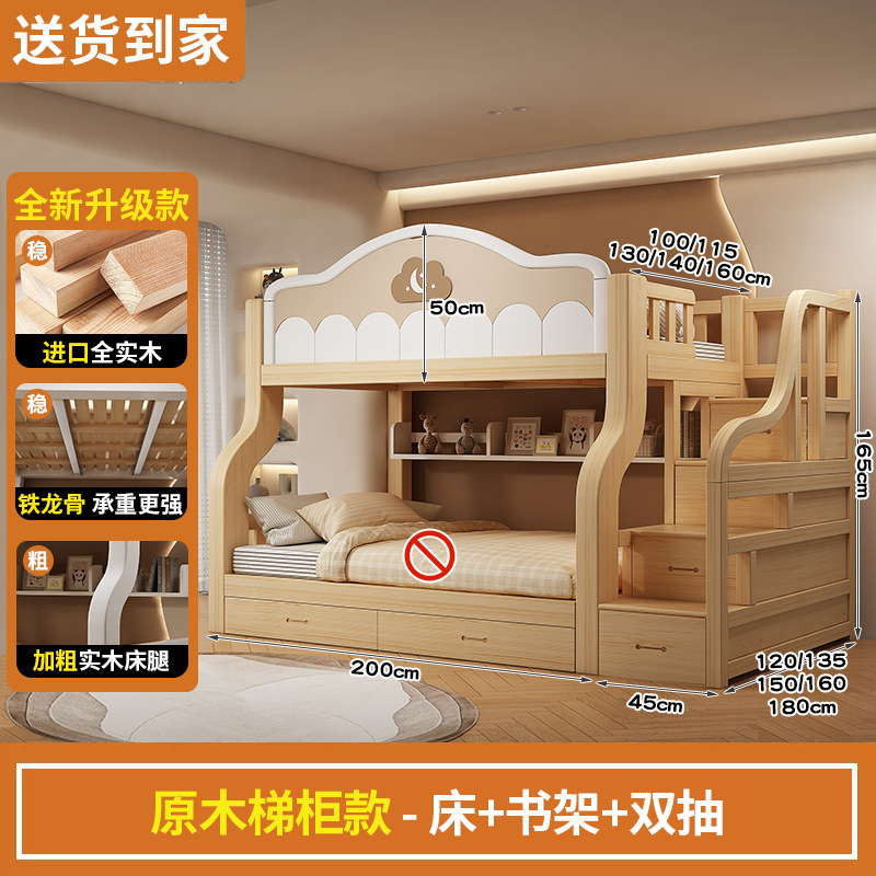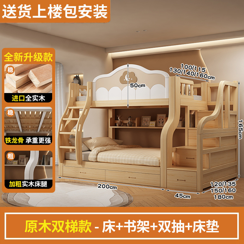 2층 침대, 원목, 미국식 어린이용 높낮이 침대, 소형 2층 침대, 가정용 2층 침대