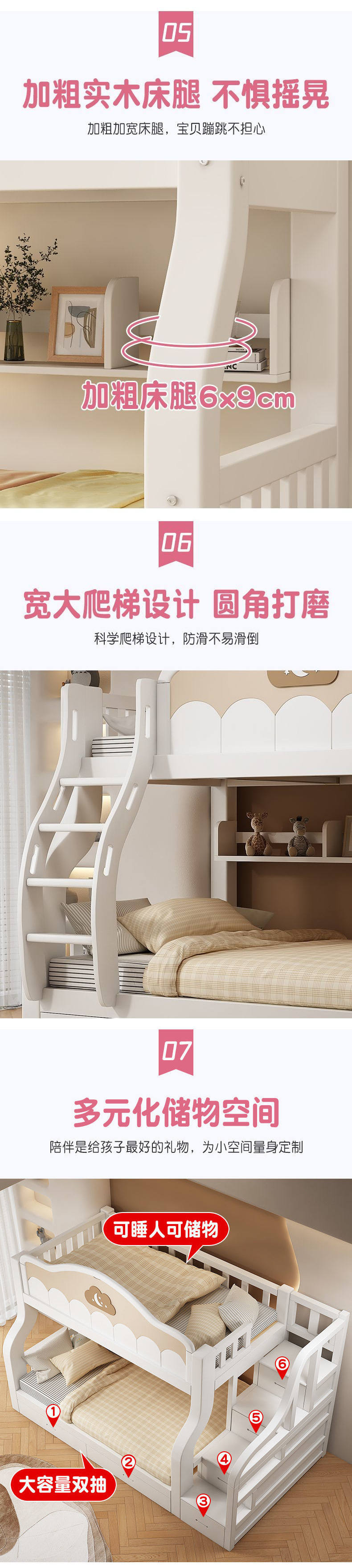 • [핑크색과 흰색 페인트 모델] 직선 사다리 + 책장 + 서랍 + 매트리스 + 전기 드릴