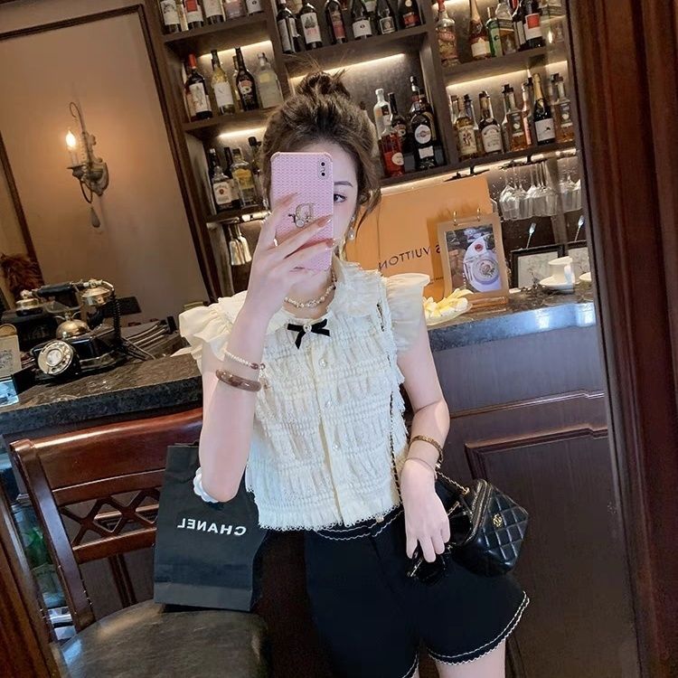 샤넬 스타일 인형 칼라 레이스 셔츠 여자 2025 년 여름 뉴 쉬폰 티셔츠 쇼트탑 스위트 패션 올매치스토어 가기