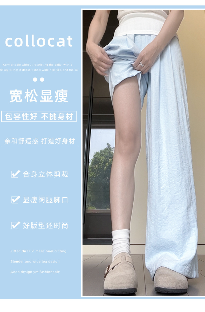 블루 밀크 푸 야마모토 바지 여름 얇은 2025 새로운 높은 허리 느슨한 스트레이트 캐주얼 스포츠 아이스 실크 넓은 다리 바지스토어 가기