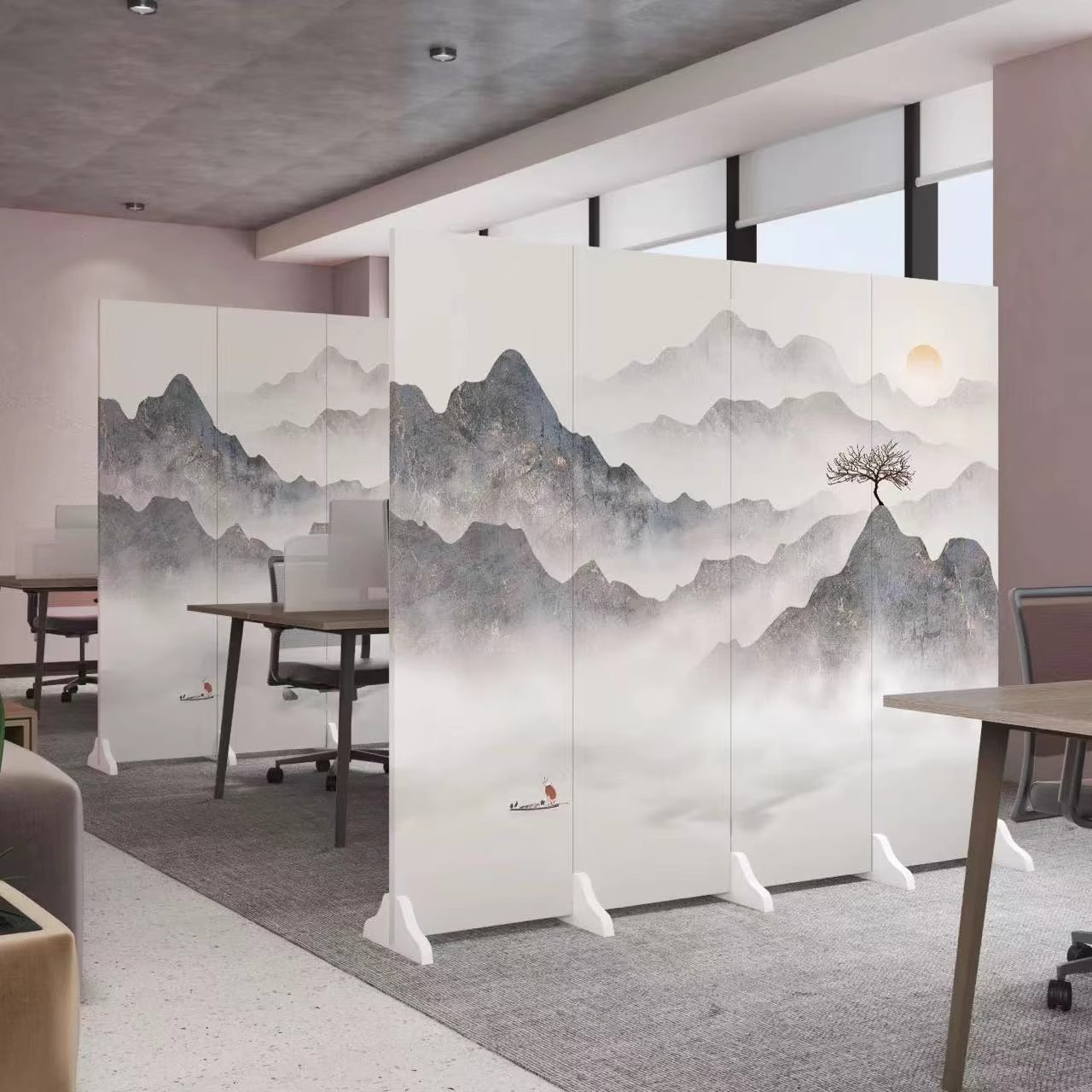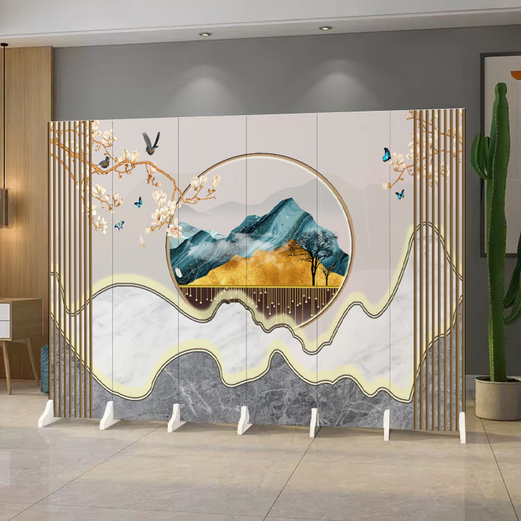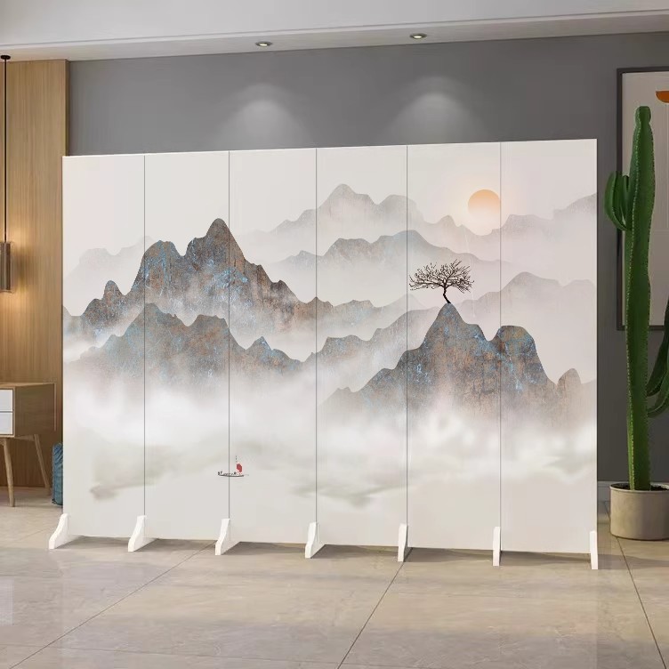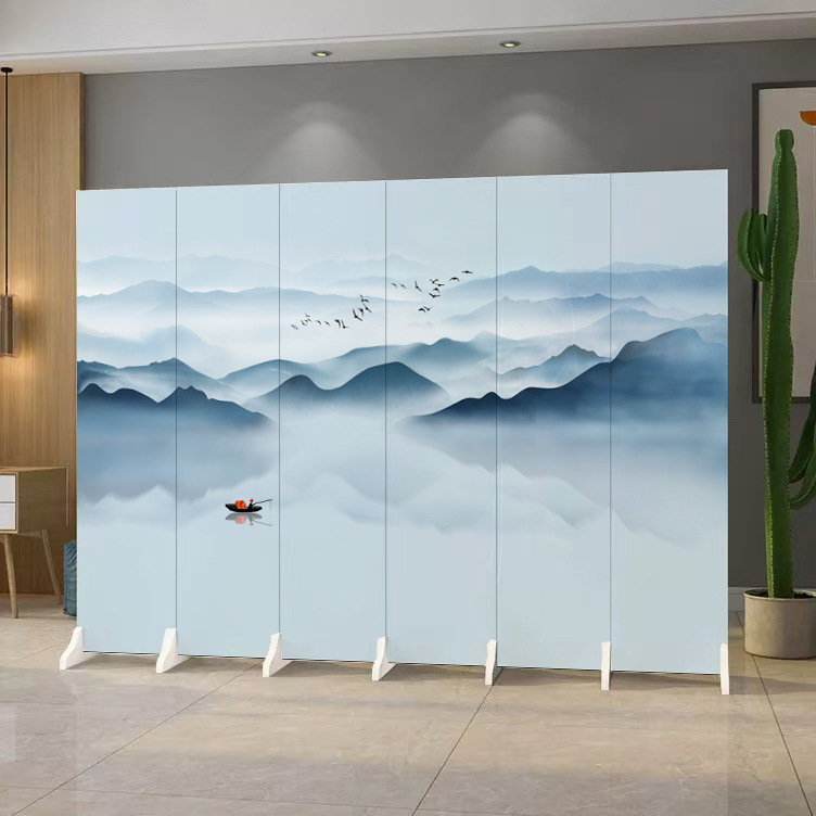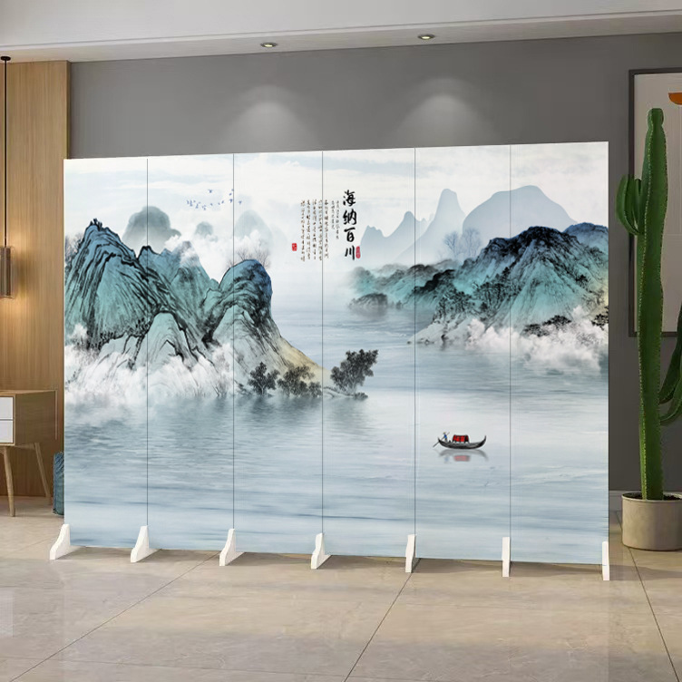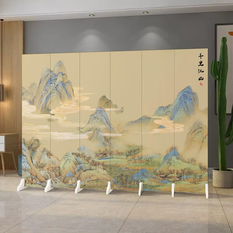 중국 풍경화 칸막이 스크린 사무실 침실 입구 차단 접이식 모바일 골동품 스크린 칸막이 거실